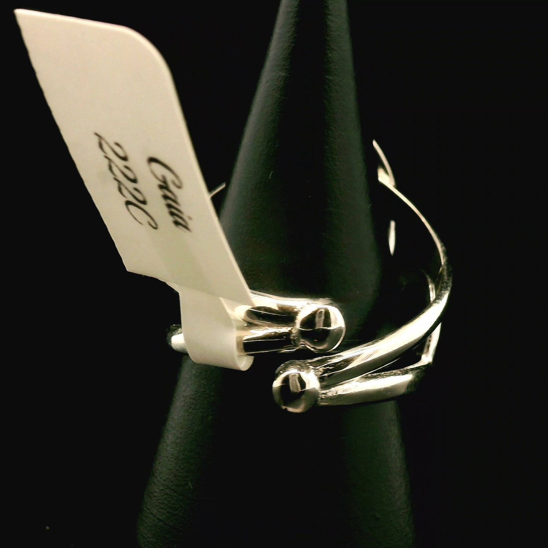 Stunning high quality Gaia Cuff Ring in rhodium plated, .925 Sterling Silver. Adjustable ring fits sizes 4-11.