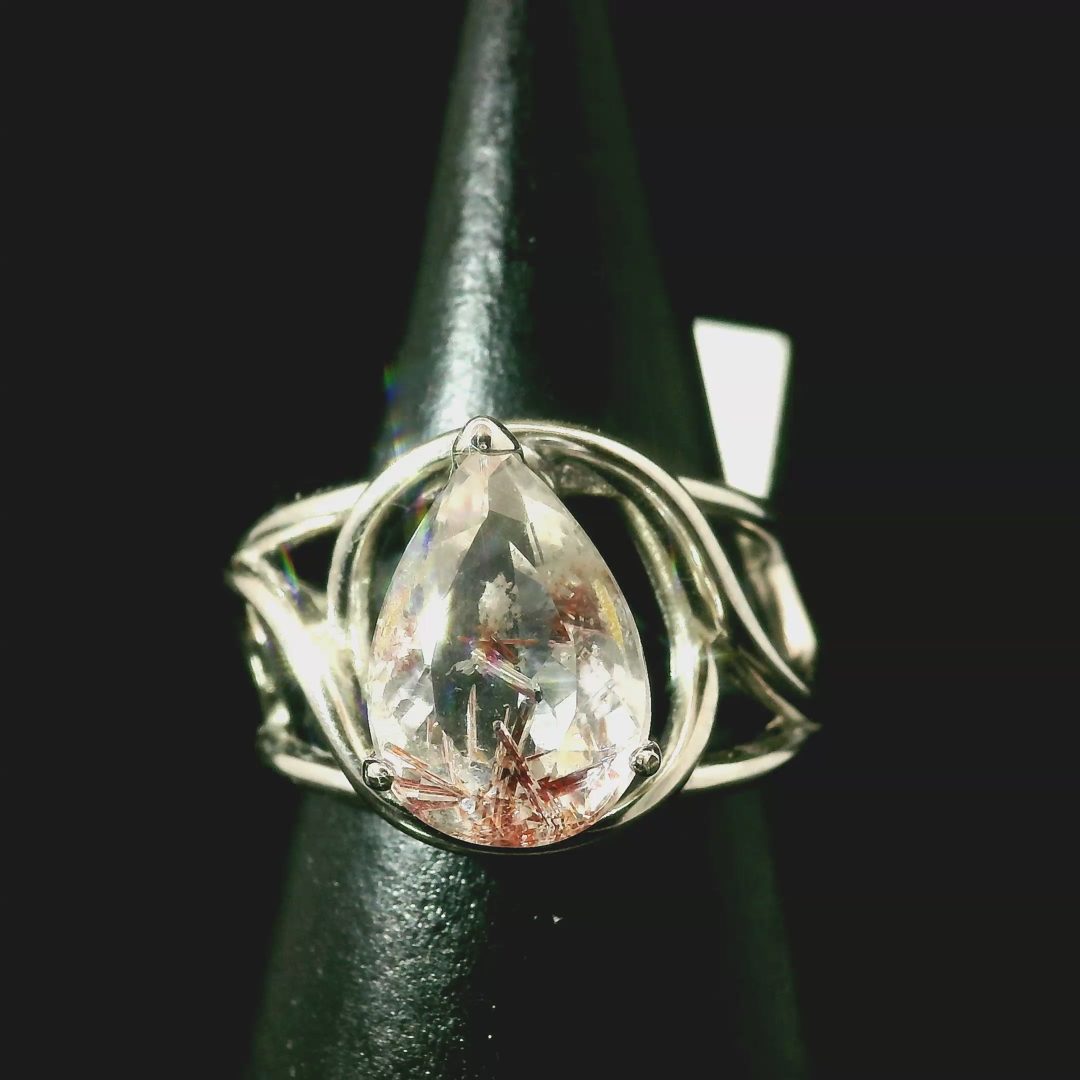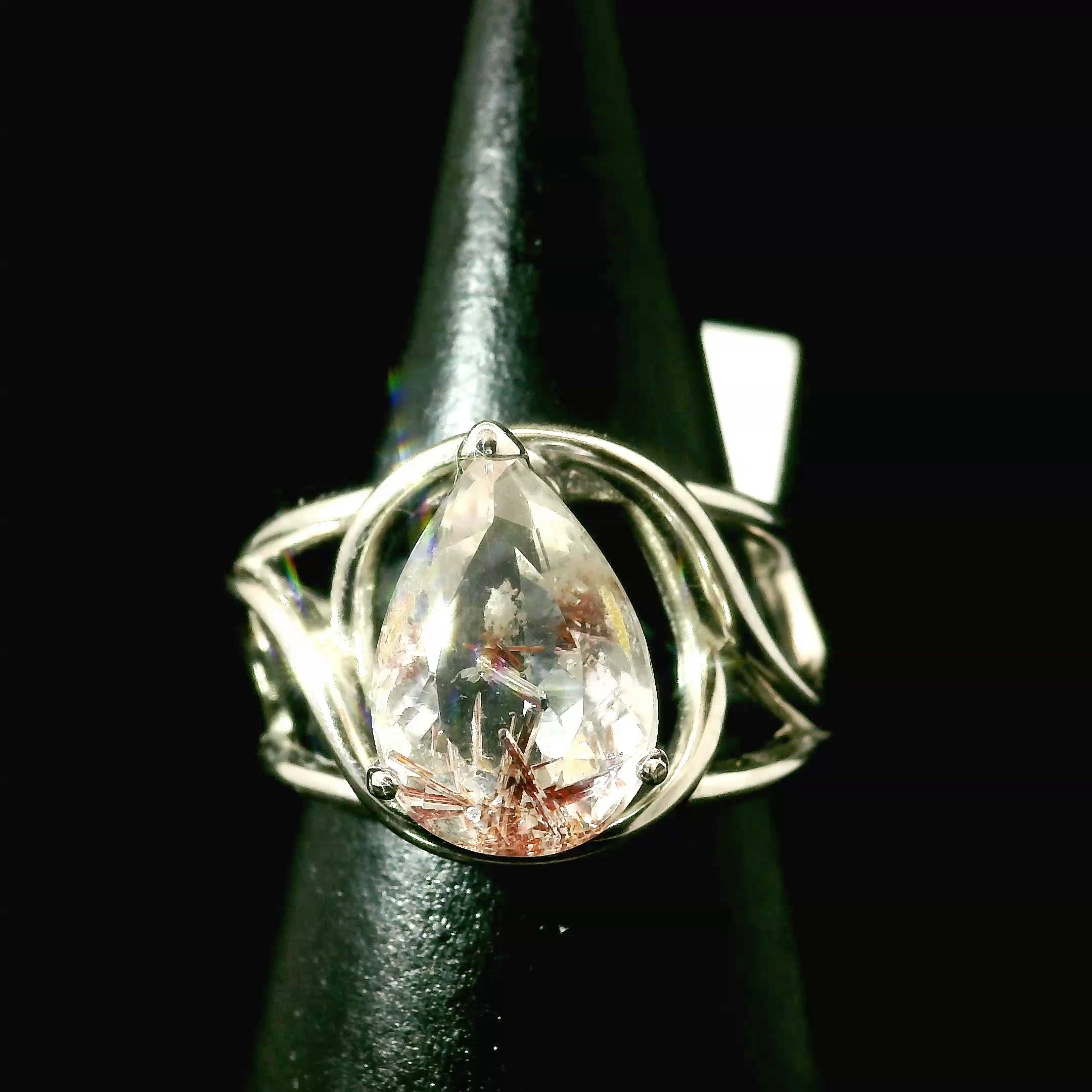 Red Rutile Cuff Ring 925 Silver for Manifestation, Life Force Energy and Renewal