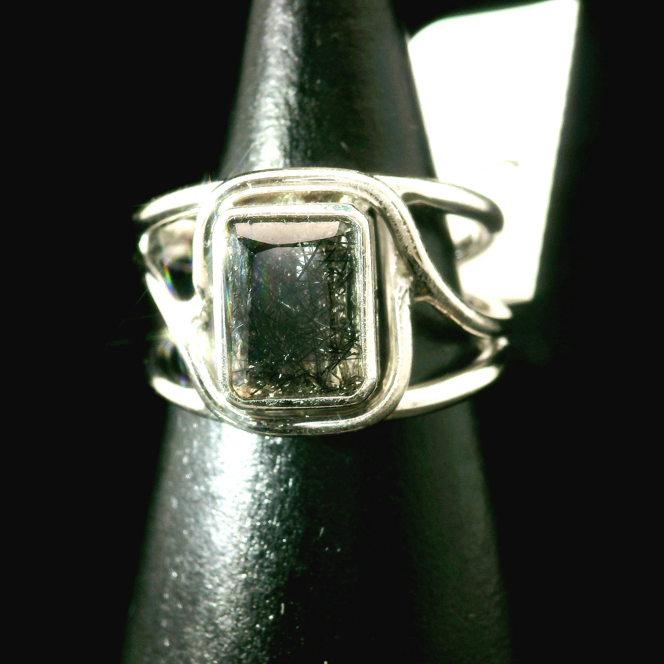 Black Rutilated Quartz Cuff Ring.925 Silver for Amplification and Protection