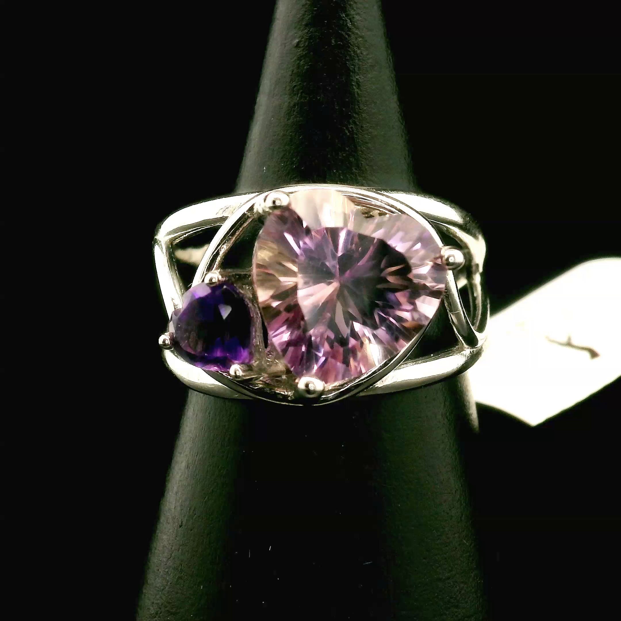 Ametrine is a natural and stunning variety of quartz that combines two distinct gemstones—Amethyst and Citrine—within a single crystal. This bi-colored gemstone is highly prized for its beautiful balance of purple and yellow hues, which occur naturally due to specific conditions during its formation. The dual coloration occurs due to different oxidation states of iron within the crystal lattice. In Amethyst, the iron impurities are exposed to natural radiation, which gives the stone its violet or purple color. In Citrine, heat causes the iron impurities to oxidize, creating the golden-yellow hue.