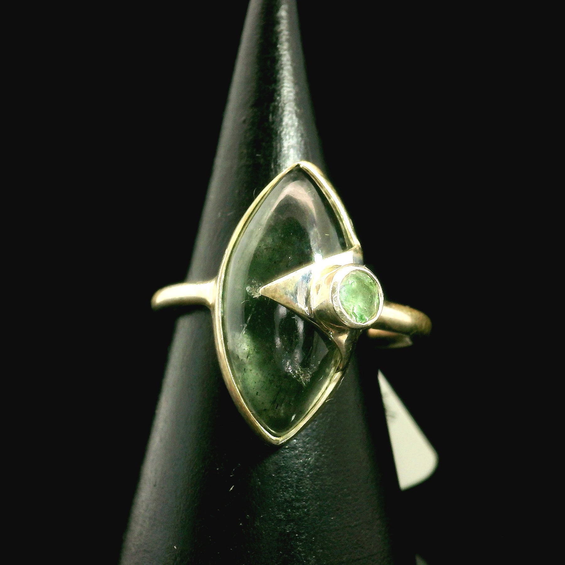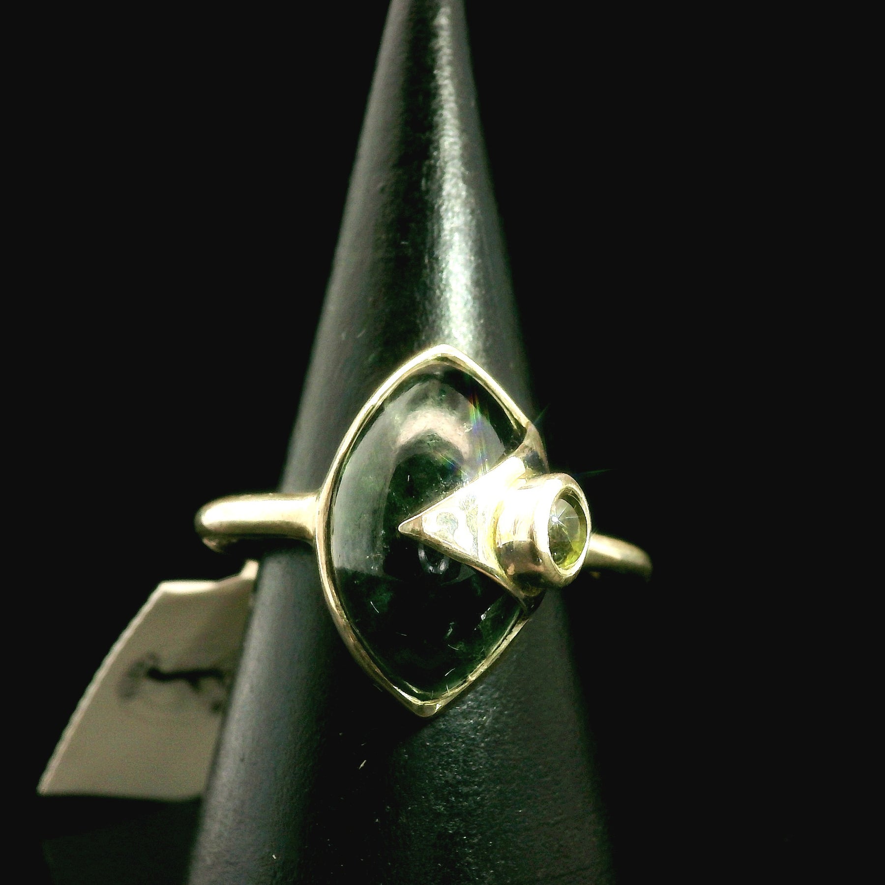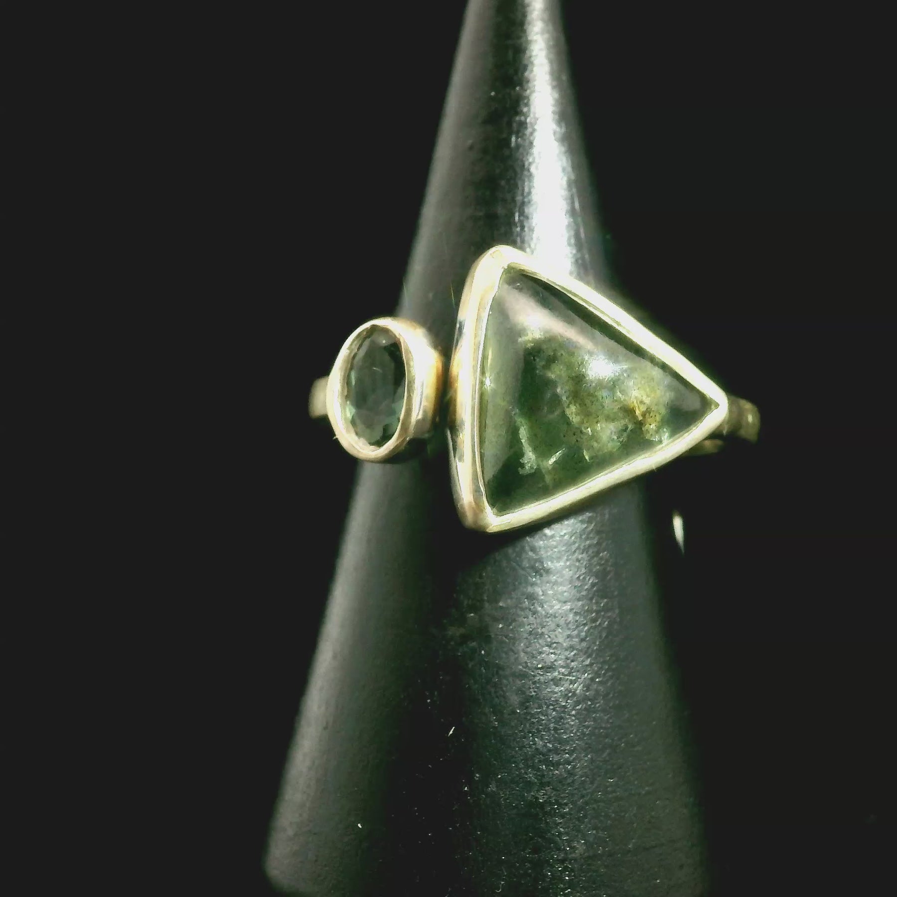 Gorgeous Aquamarine and Tourmaline Ring .925 silver, adjustable to fit ring sizes 5-10.