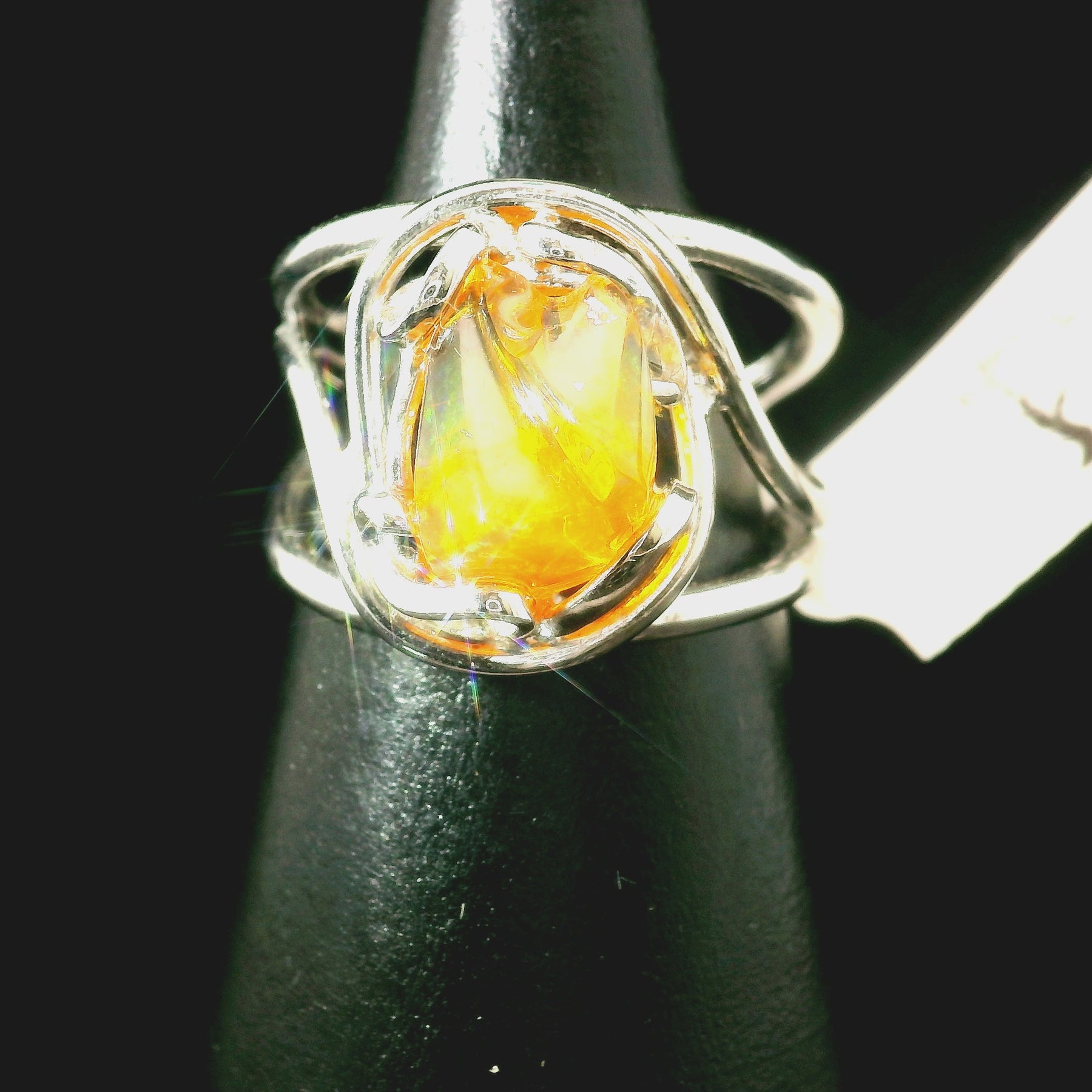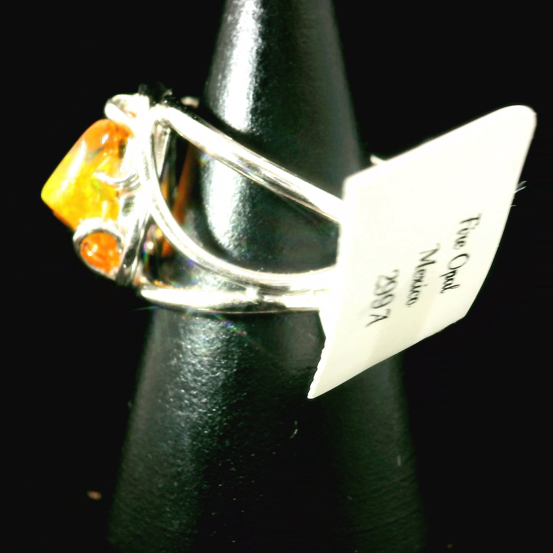 Fire Opal Cuff Ring .925 Silver for Confidence and Increasing Motivation