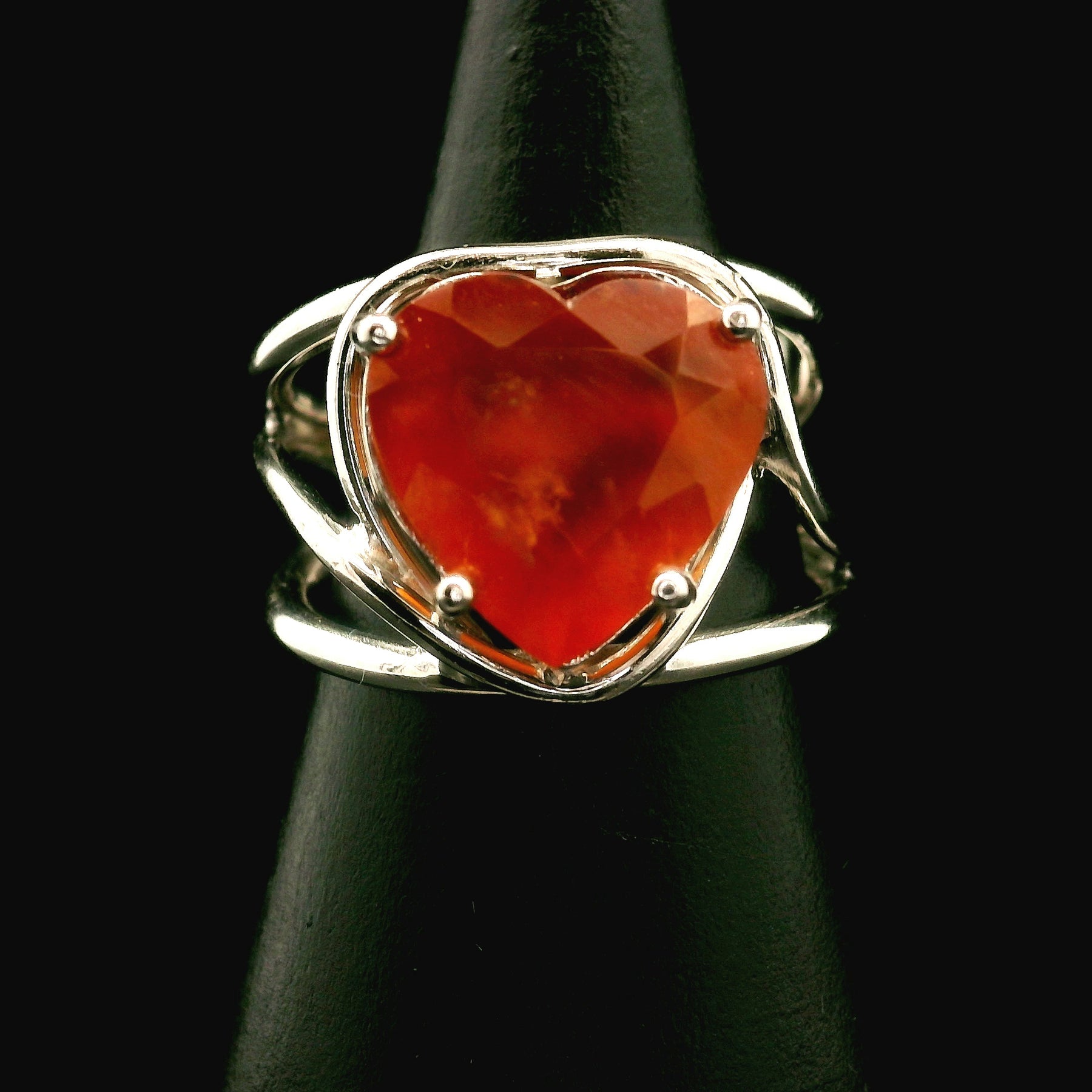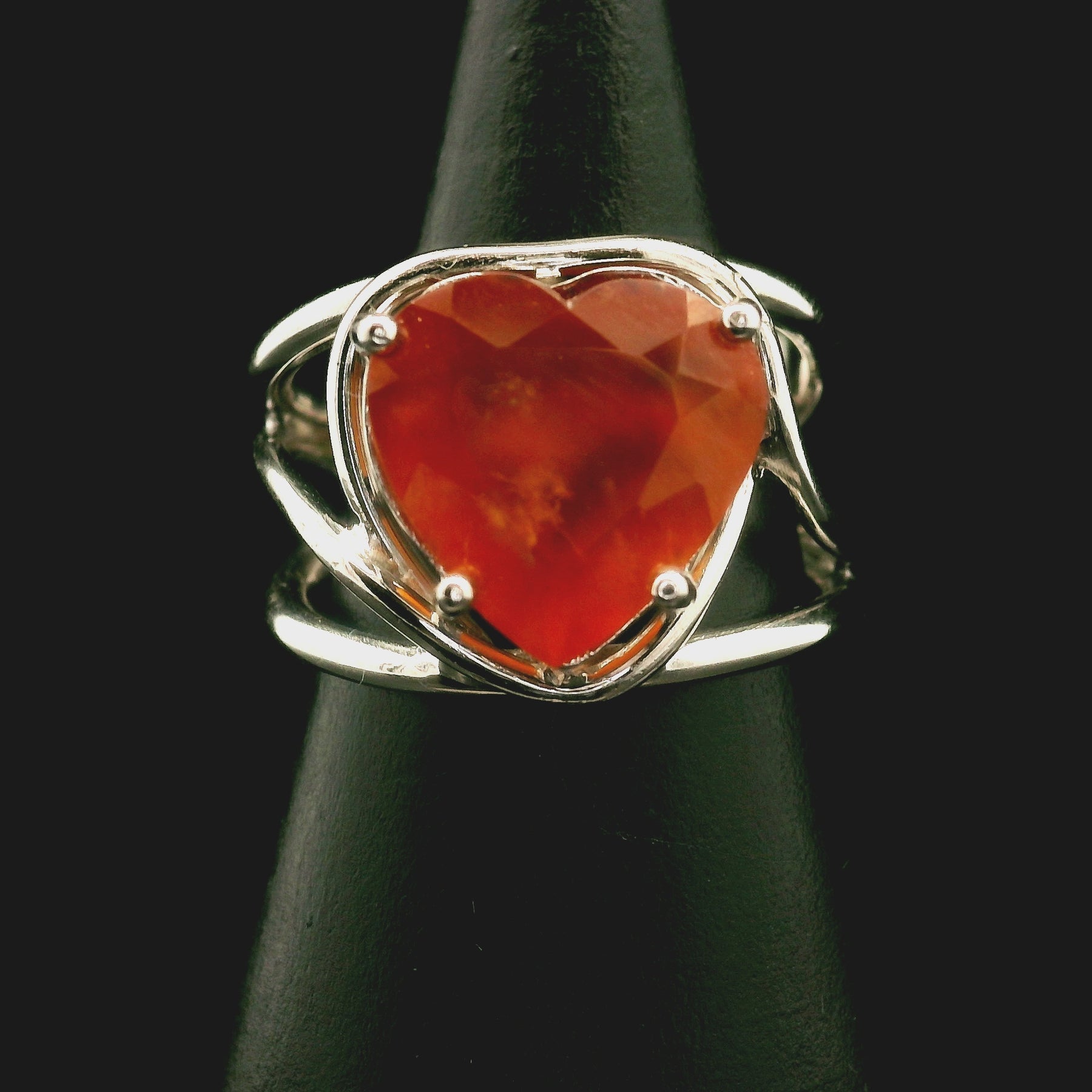 Hessonite Garnet Heart Cuff Ring in .925 Silver for Manifesting Love and Success in your Career, Protection and Wealth