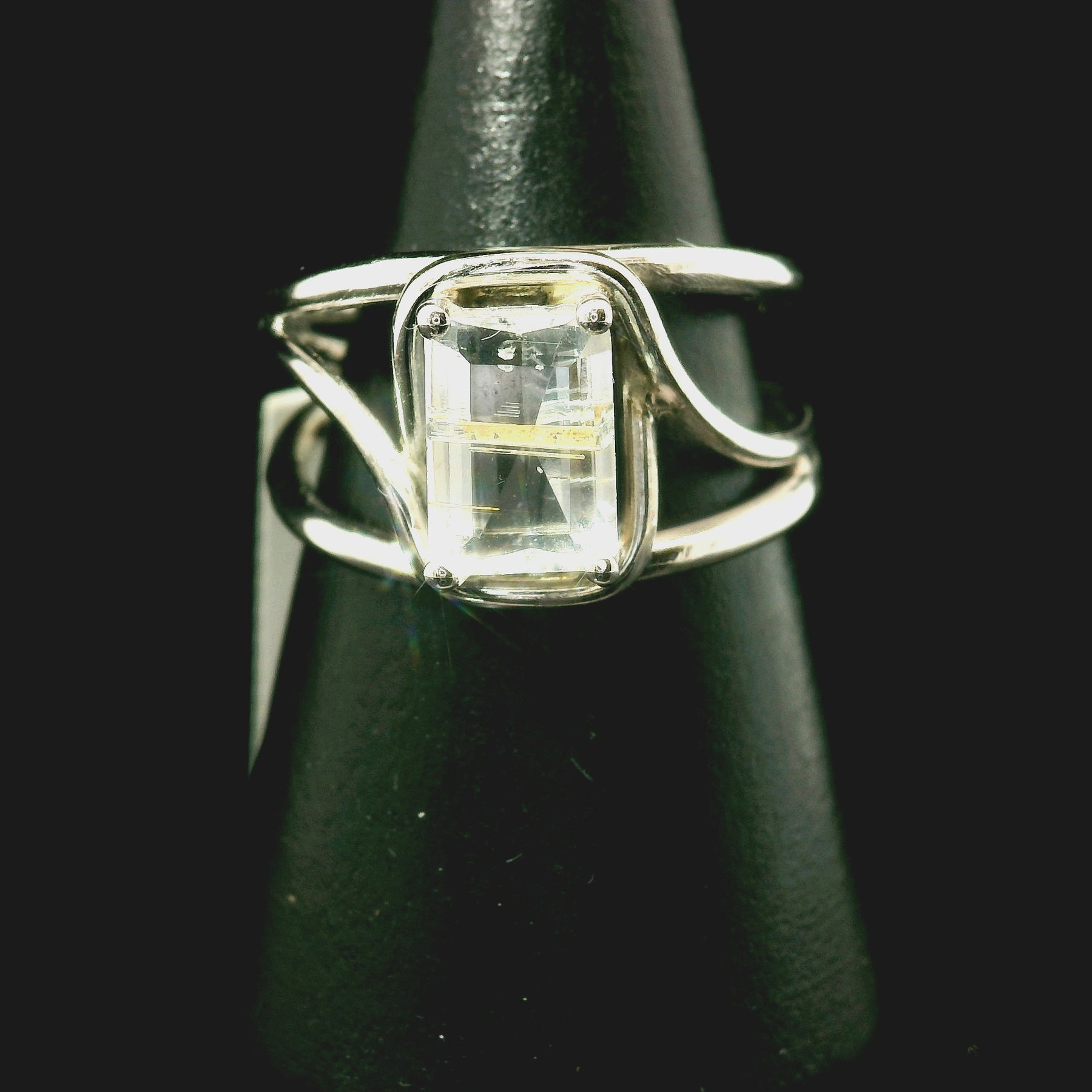 Rutilated Topaz Cuff Ring .925 Sterling Silver for Spiritual Transformation