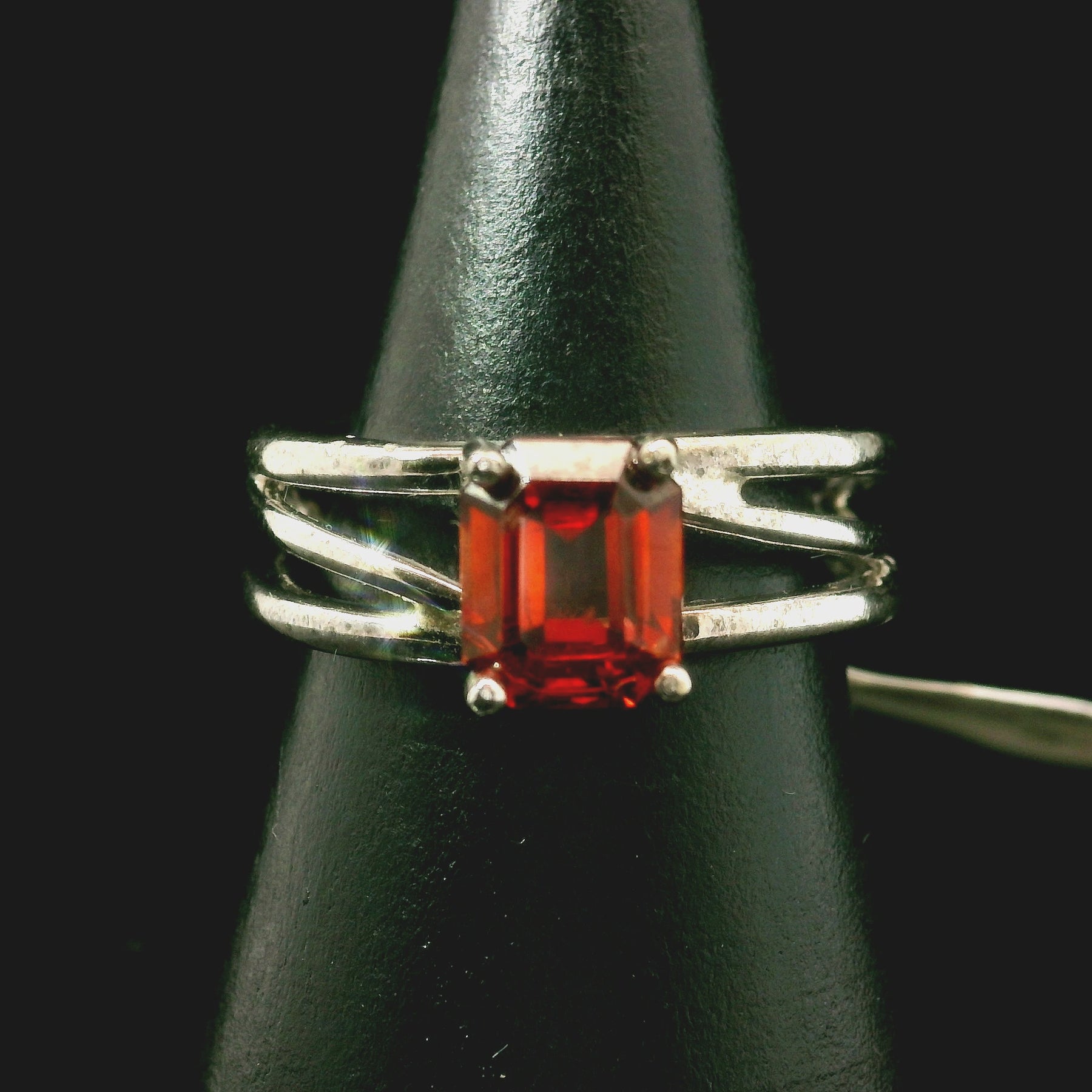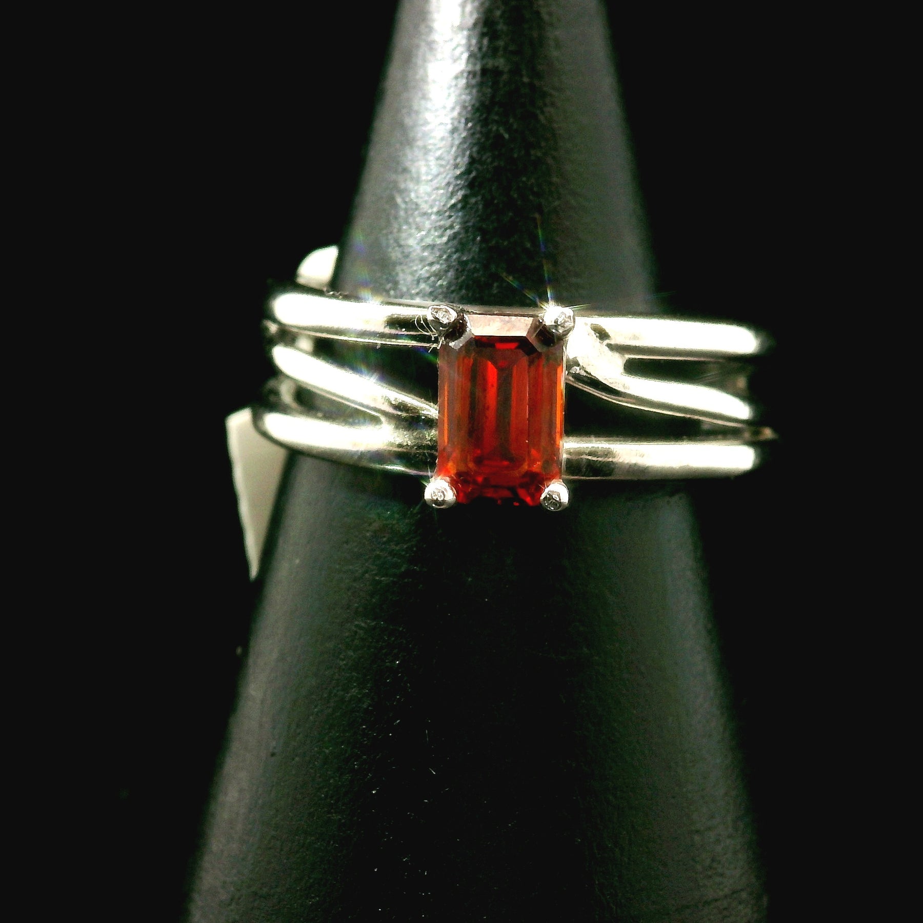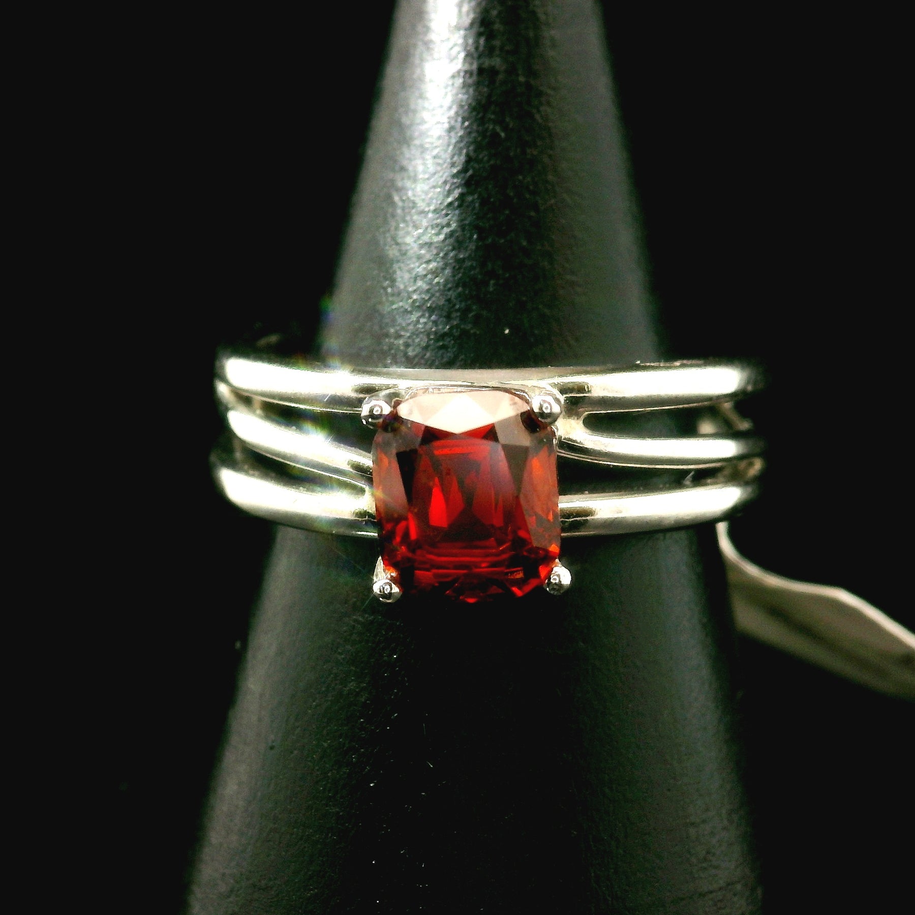 Absolutely enchanting Spessartine Garnet Cuff Ring in rhodium plated, .925 Sterling Silver. Adjustable ring fits sizes 4-11.