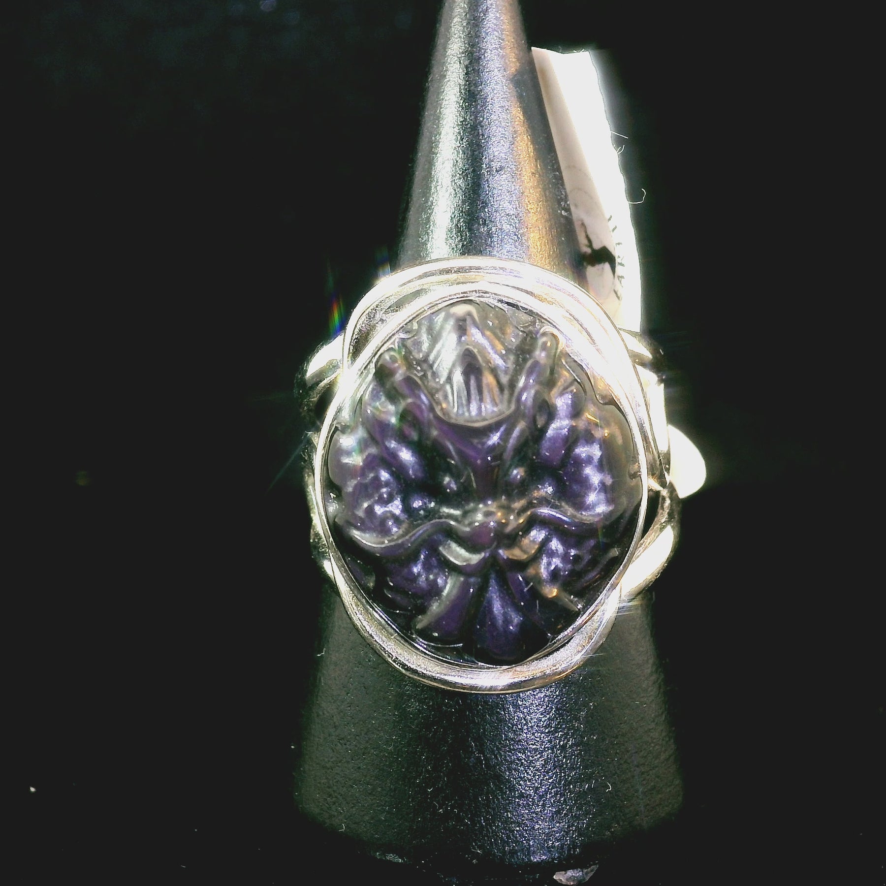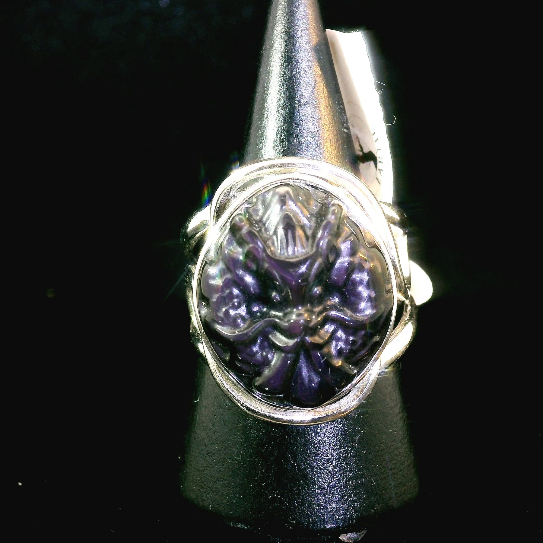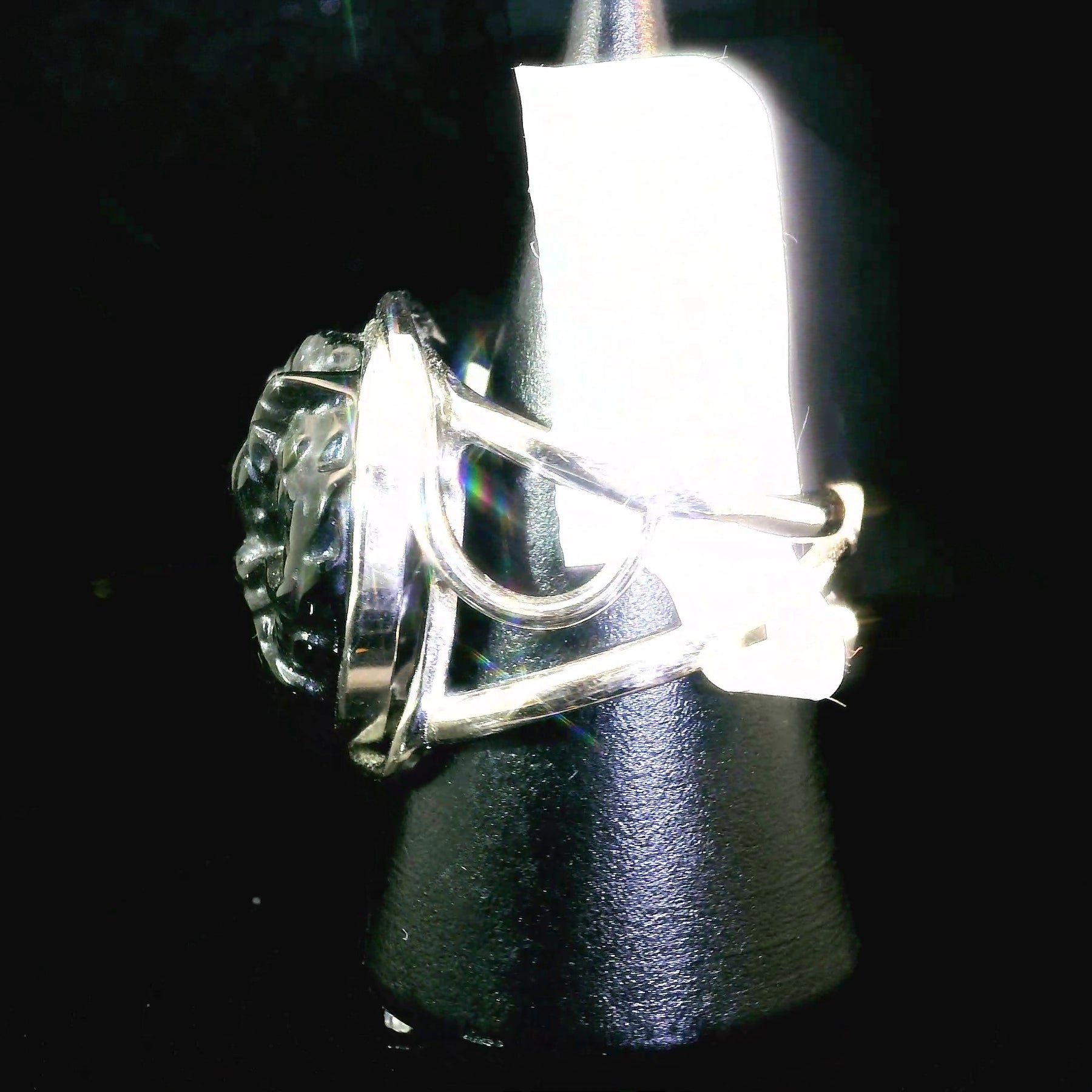 Absolutely gorgeous and high quality, Dragon Rainbow Obsidian Cuff Ring in Rhodium Plated, .925 Sterling Silver. Adjustable ring fits sizes 4-11.