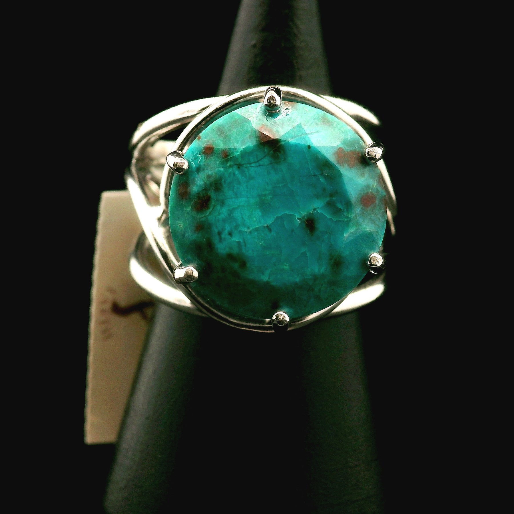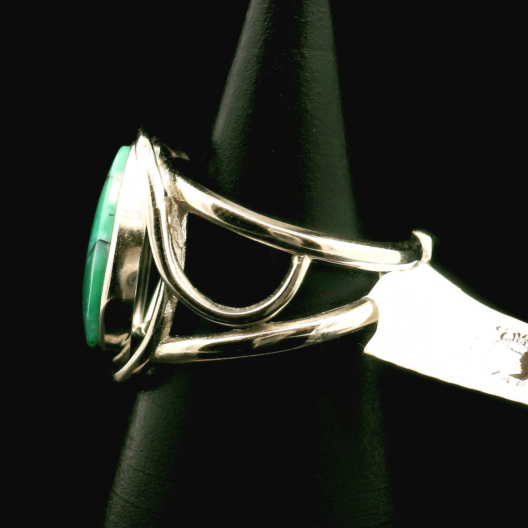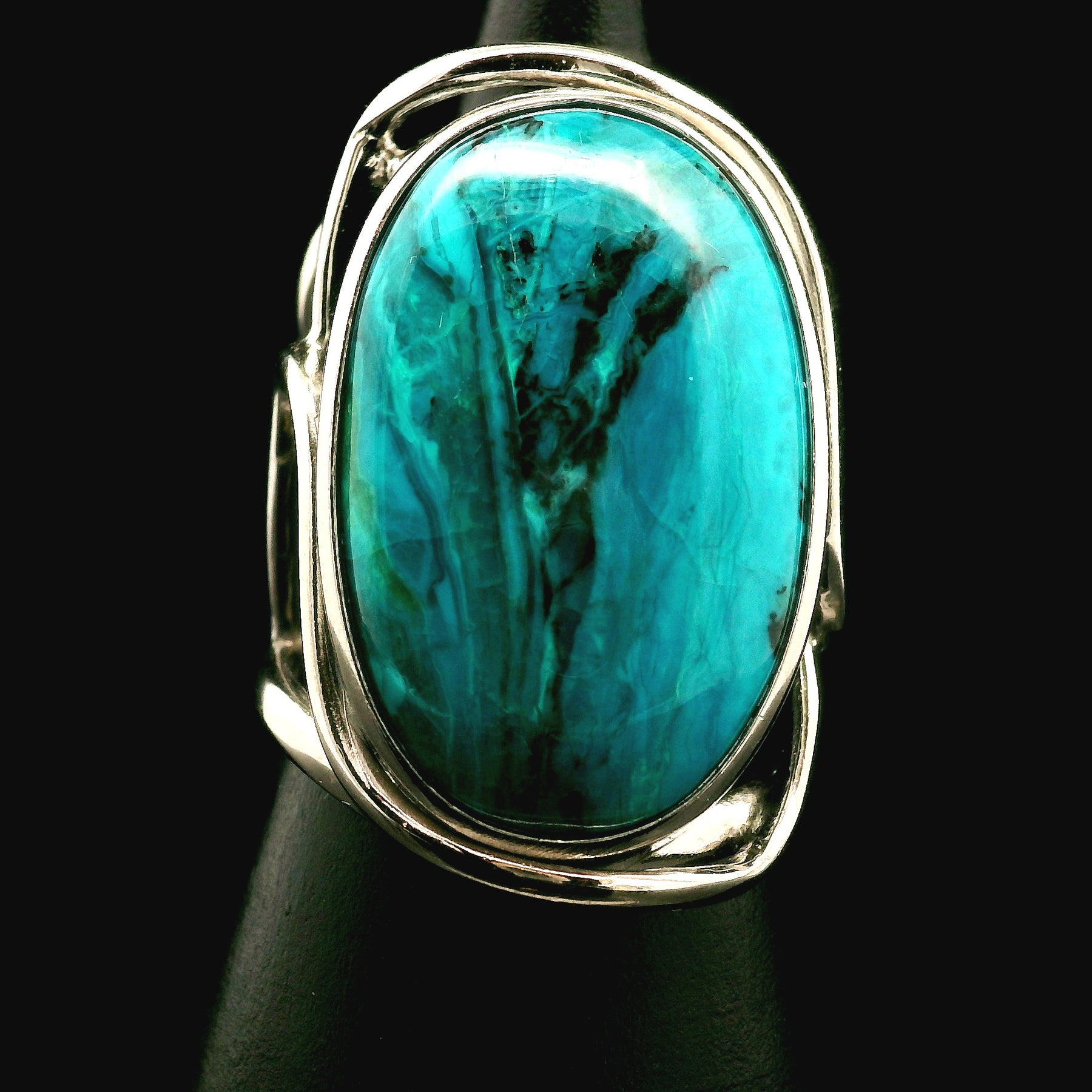 Absolutely gorgeous and high quality, Blue Opal Cuff Ring in rhodium plated, .925 Sterling Silver. Adjustable ring fits sizes 4-11.