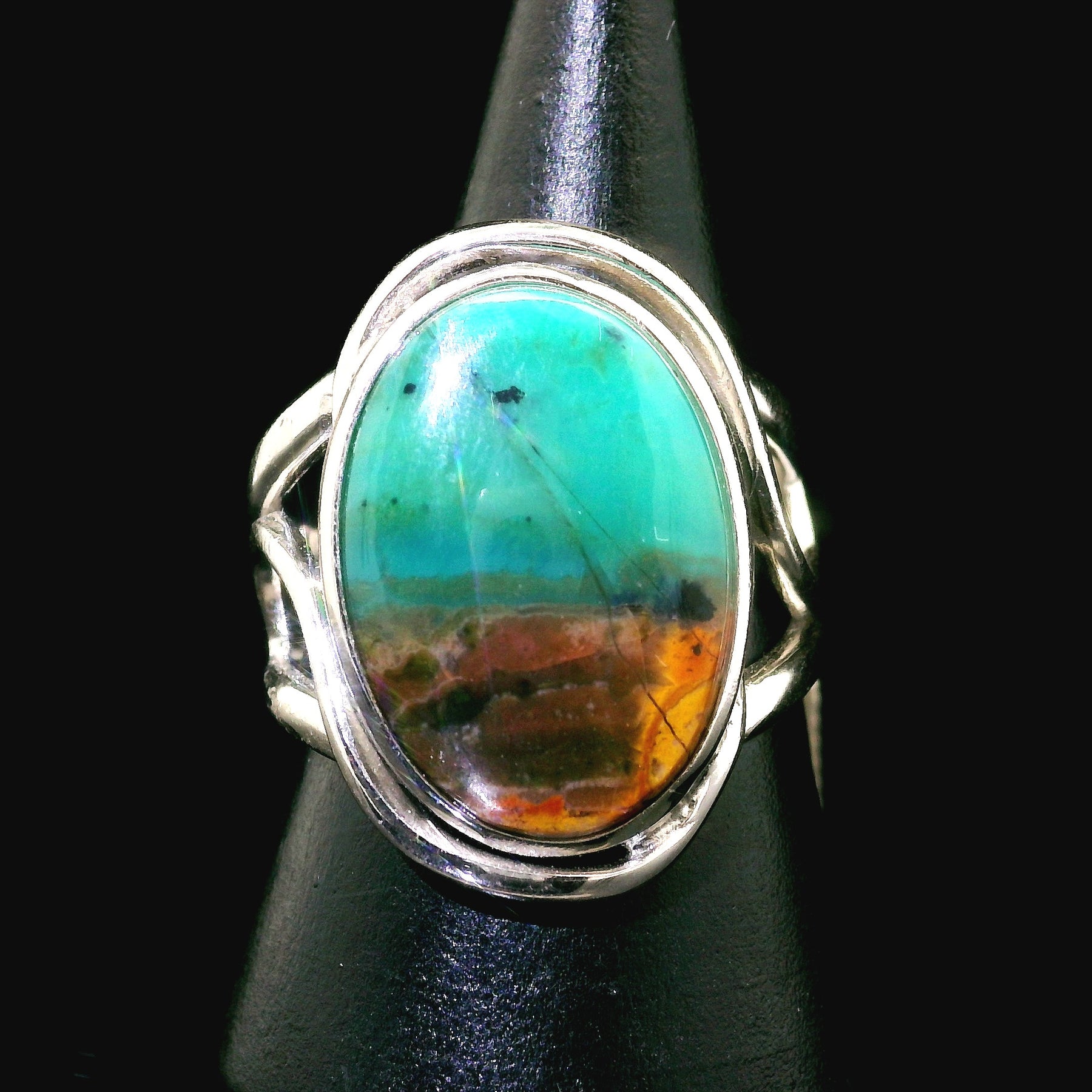 Stunning high quality Blue Opal has been hand selected by Rick and Jamie! Set in a stunning .925 sterling silver setting, this will be a beautiful heirloom in your collection to enjoy for generations!