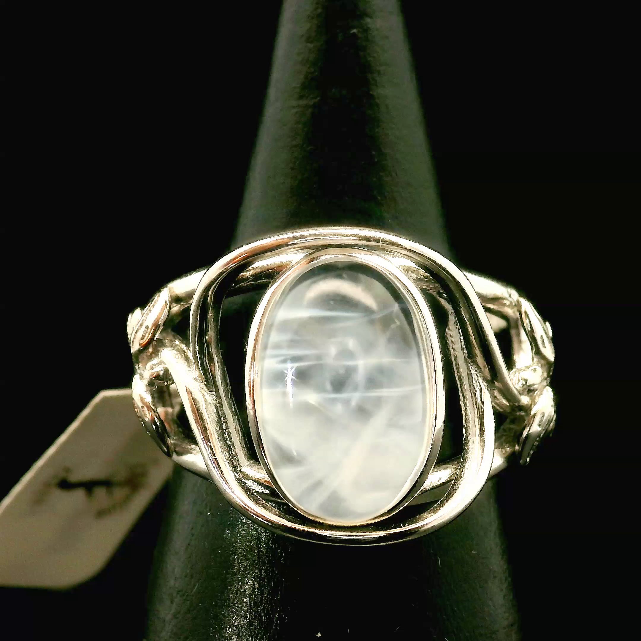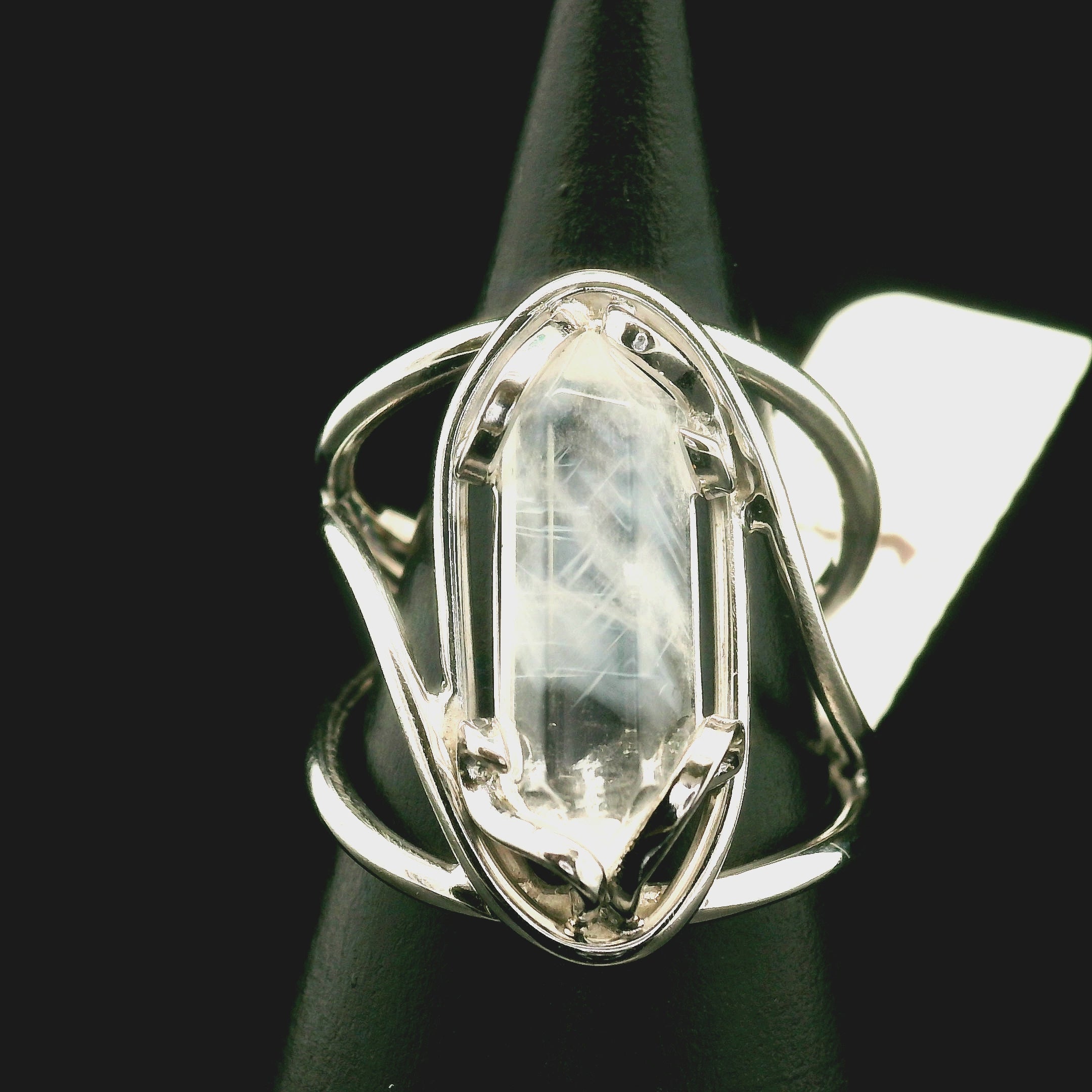 Blue Smoke Lemurian Quartz Ninetails Cuff Ring .925 Silver for Ascension, Connection with Guides and Meditation