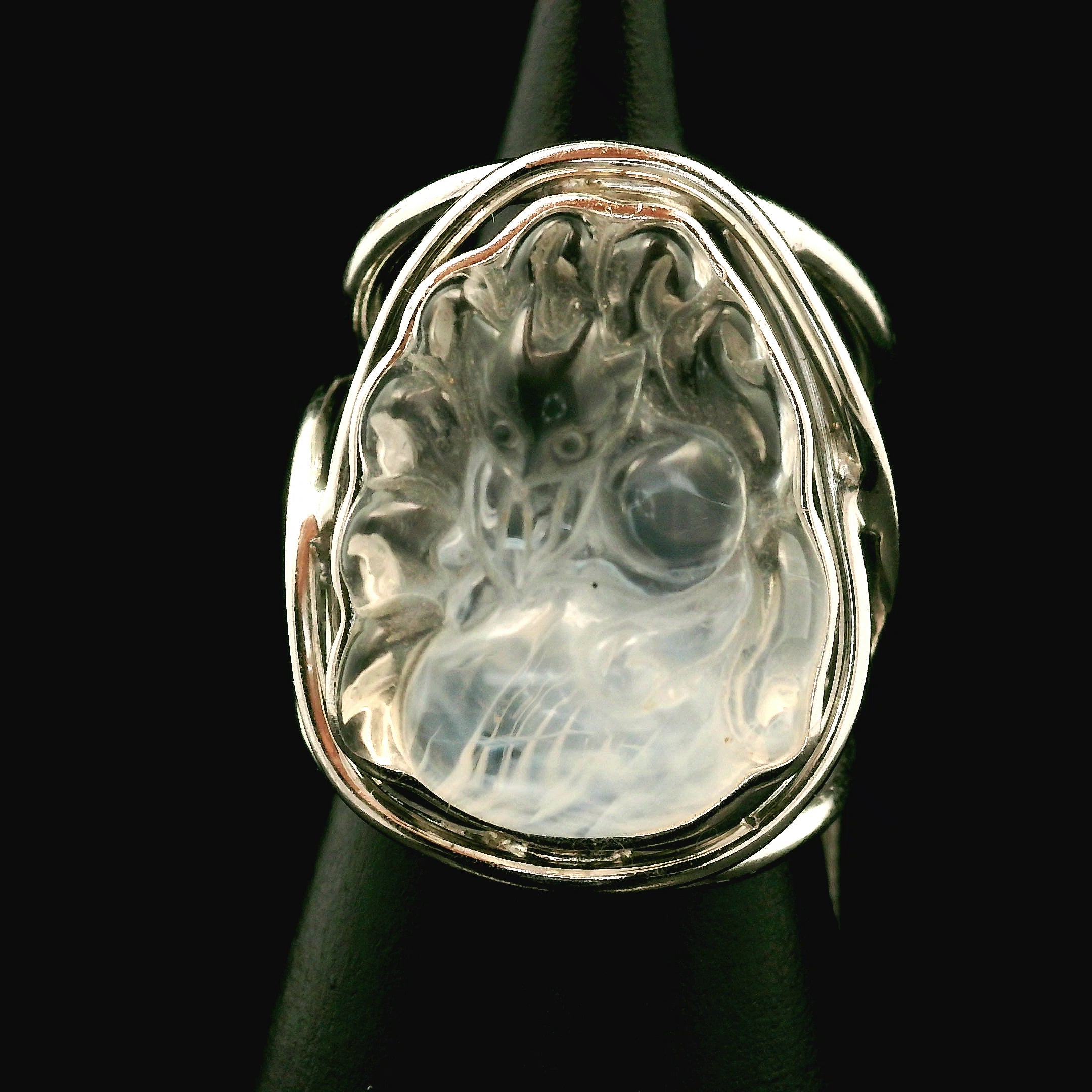 Blue Smoke Lemurian Quartz Finger Cuff Adjustable Ring .925 Silver for Ascension, Connection with Guides and Meditation