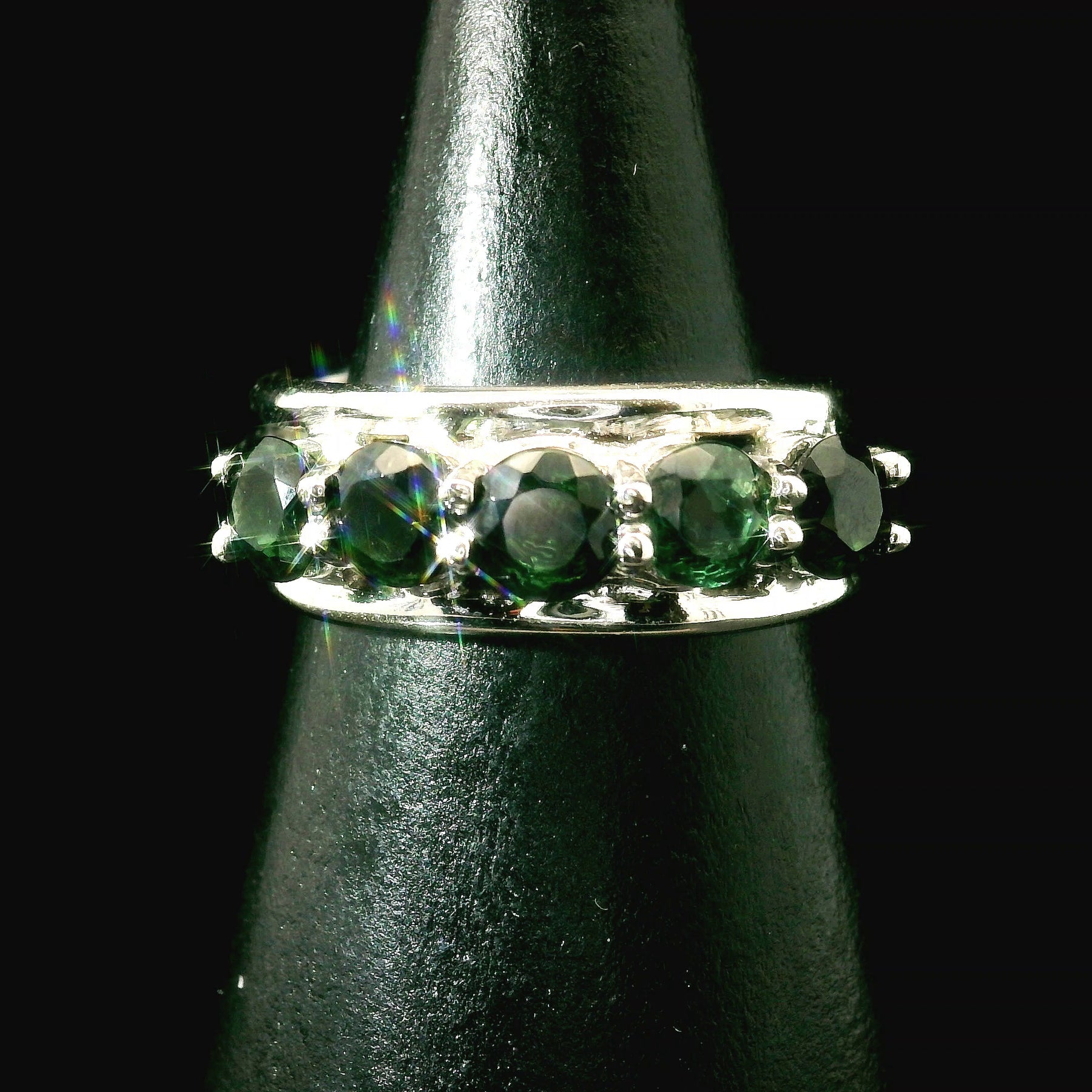 Absolutely gorgeous and high quality, Blue Tourmaline Stacker Cuff Ring in Rhodium Plated, .925 Sterling Silver. Adjustable ring fits sizes 6-11.