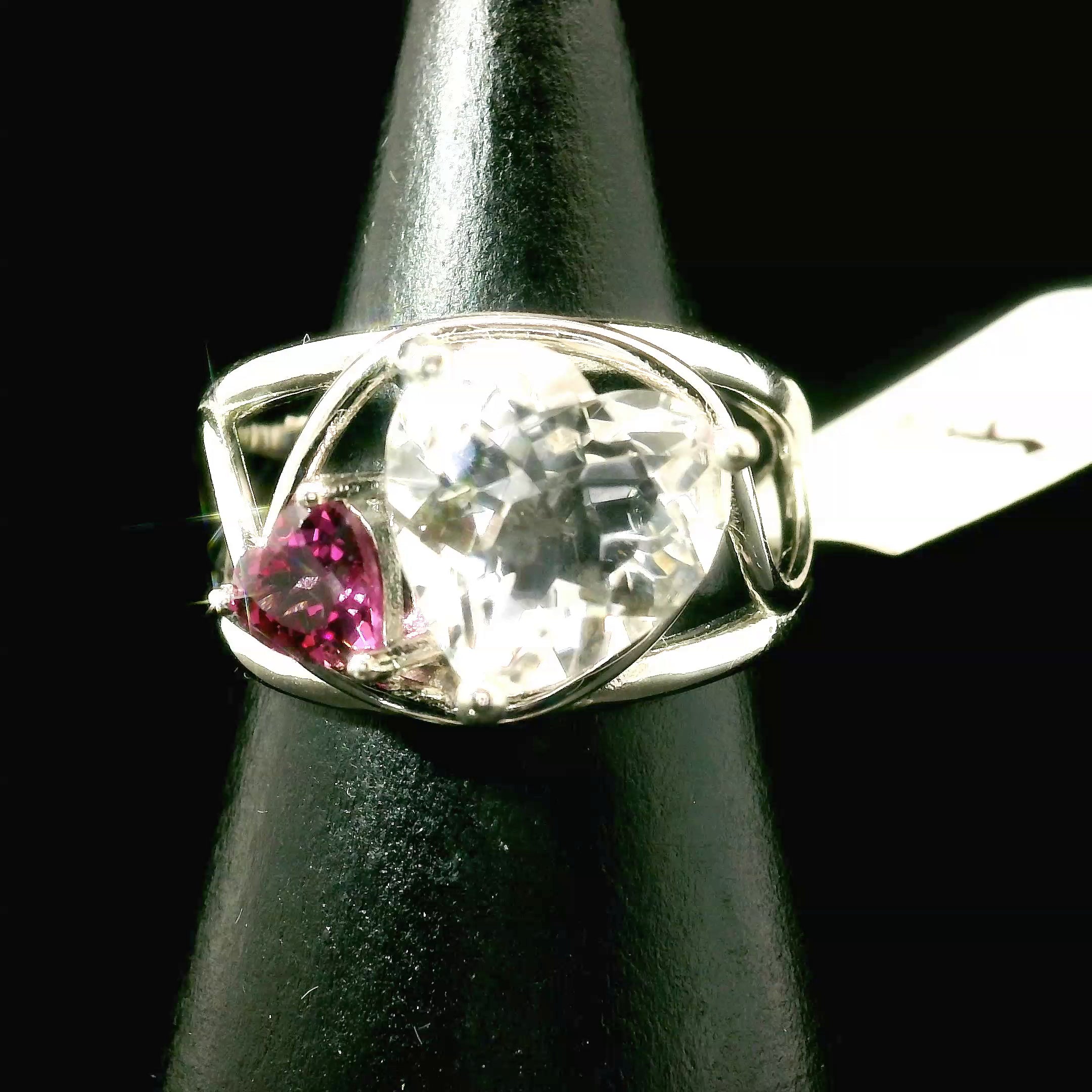Clear Quartz and Pink Tourmaline Heart Cuff Ring .925 Silver for Healing, Intention Setting and Manifesting your Desires
