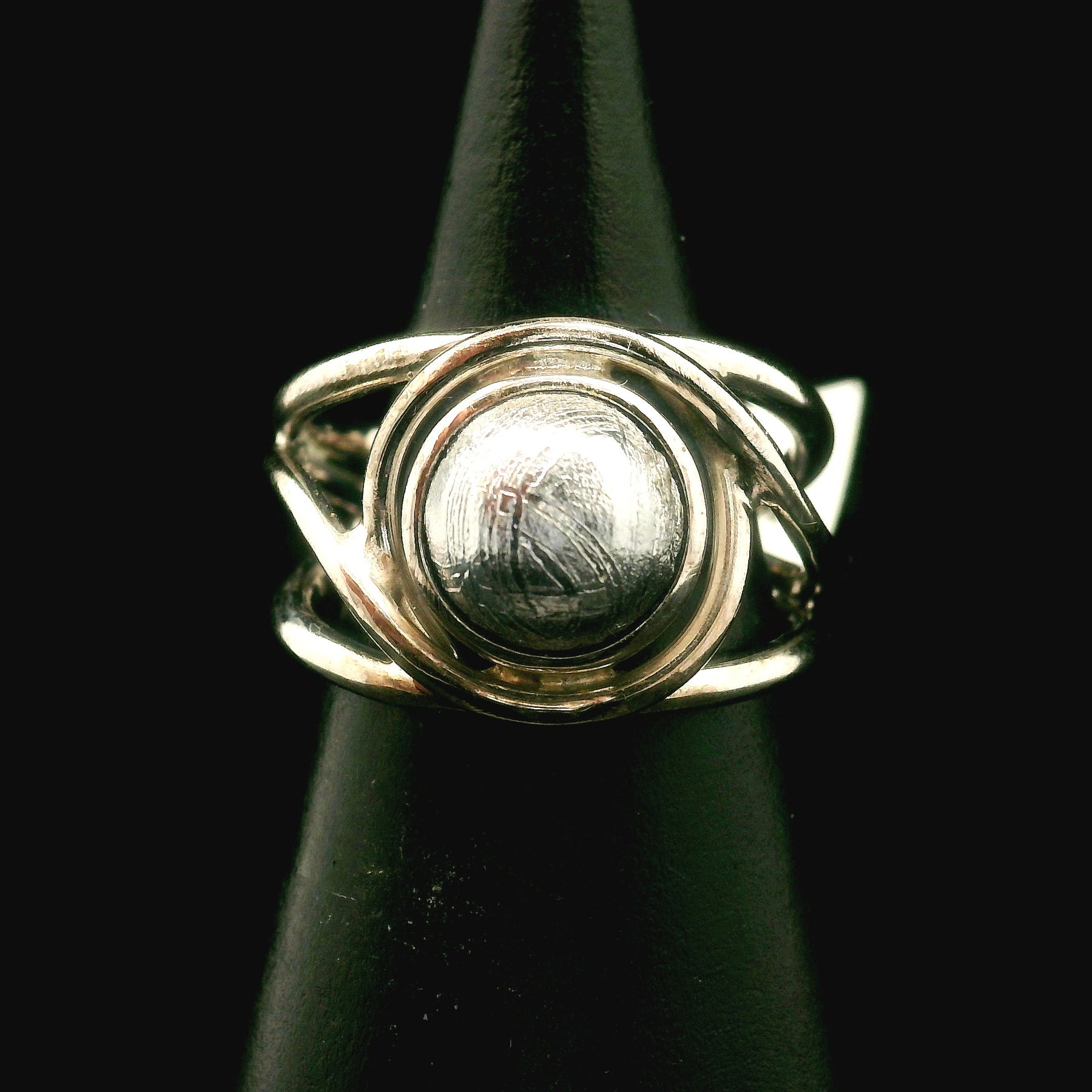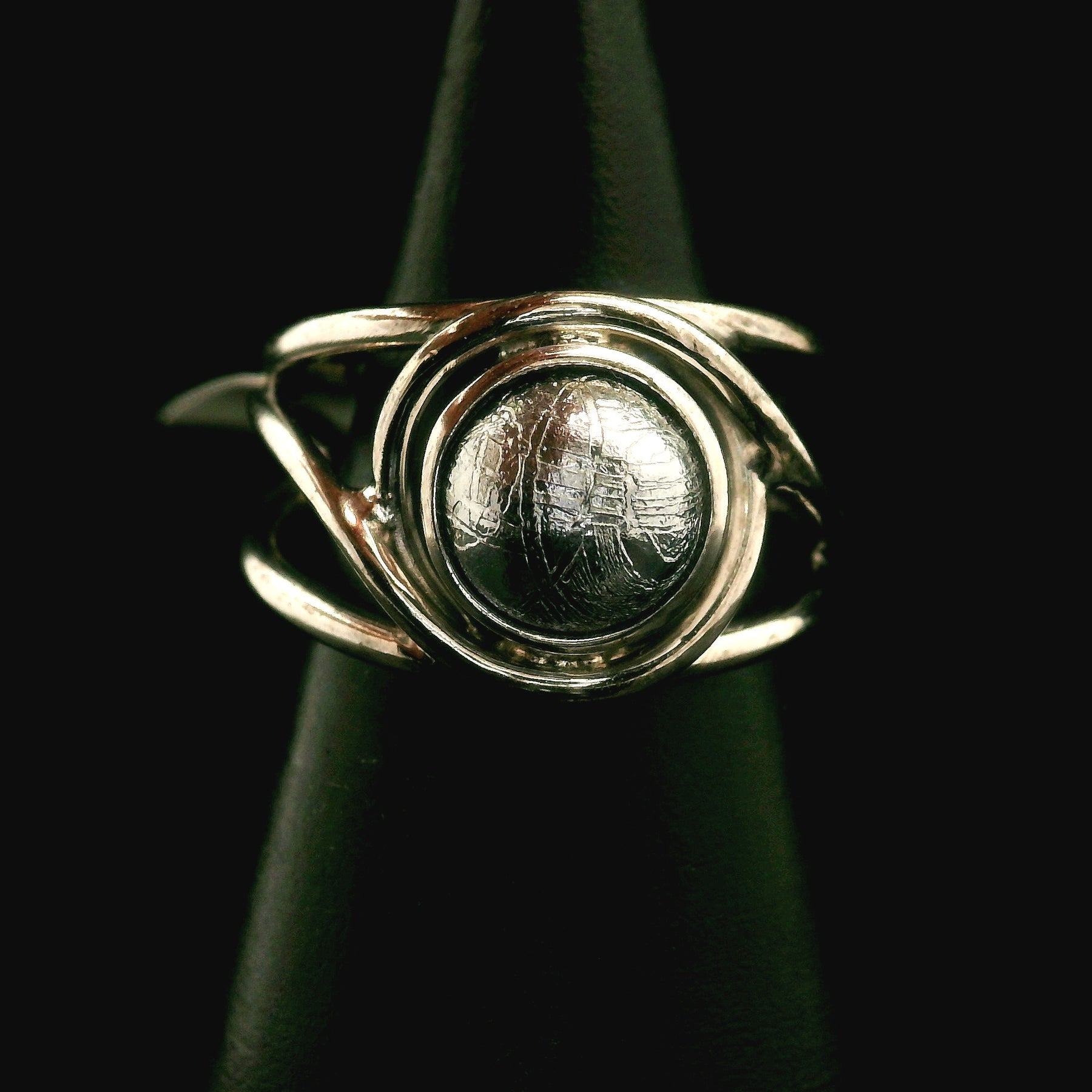 Swedish Muonionalusta Meteorite Cuff Ring Adjustable Ring .925 Silver for Spiritual Awakening and Multidimensional Awareness