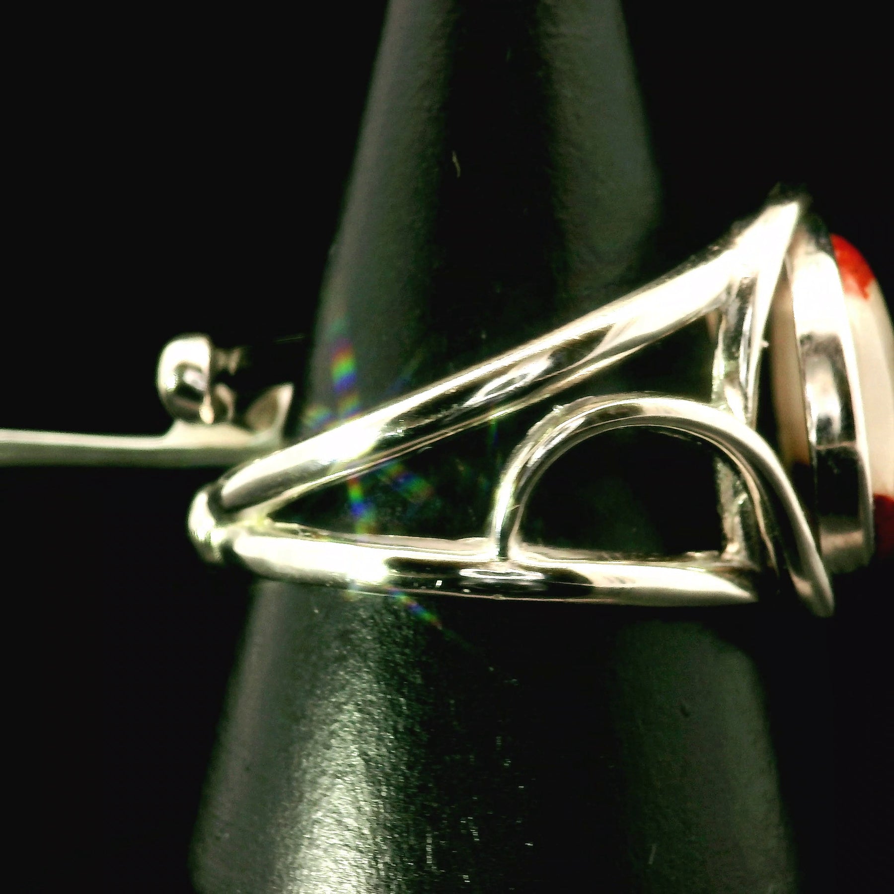 Absolutely enchanting, Red Jasper Cuff Ring in rhodum plated .925 Silver. Adjustable for ring sizes 4-11.
