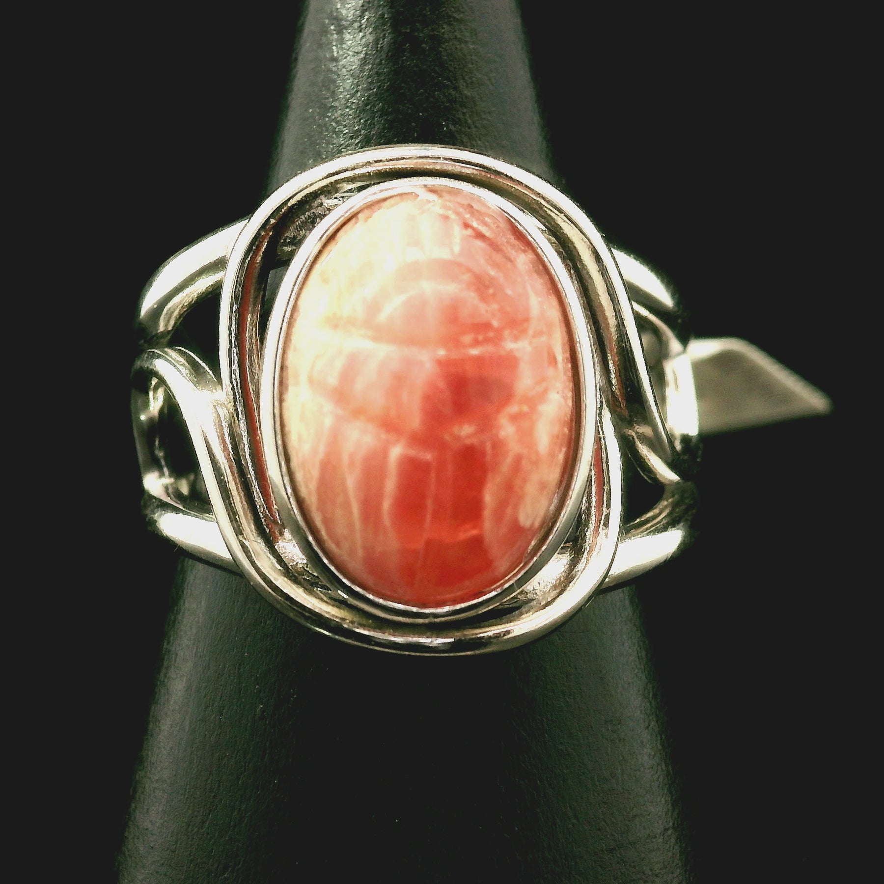 This beautiful, high quality, natural untreated Rhodochrosite was hand picked with intention just for you by Rick and Jamie and set in our best selling, rhodium plated, .925 Sterling Silver adjustable setting.
