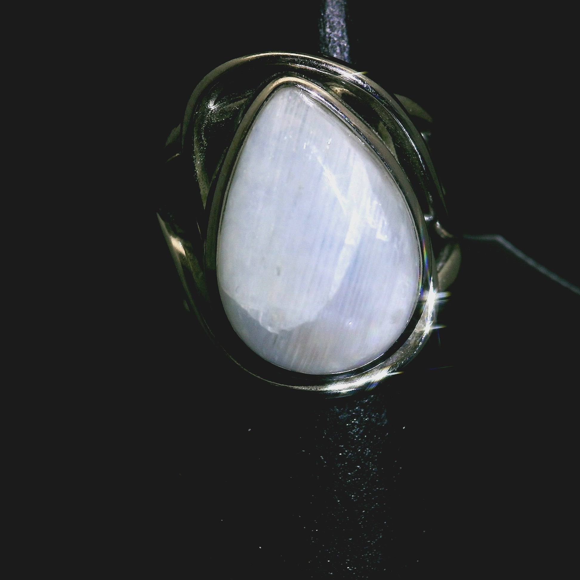 Rainbow Moonstone Cuff Ring .925 Silver for New Beginnings, Protection and Manifestation