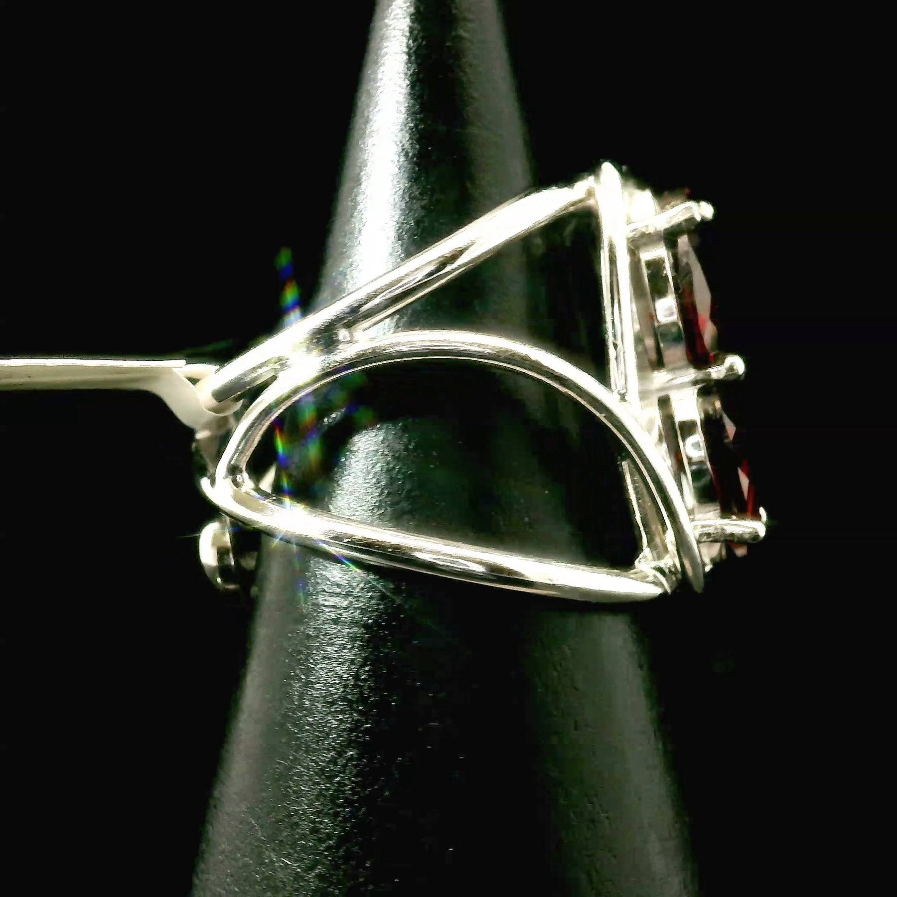 Absolutely gorgeous and high quality, Garnet Cuff Ring in Rhodium Plated, .925 Sterling Silver. Adjustable ring fits sizes 4-11.