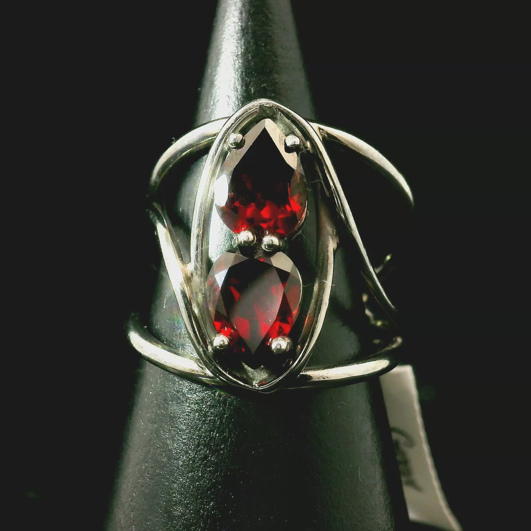 Double Garnet Cuff Ring .925 Silver for Health and Strength