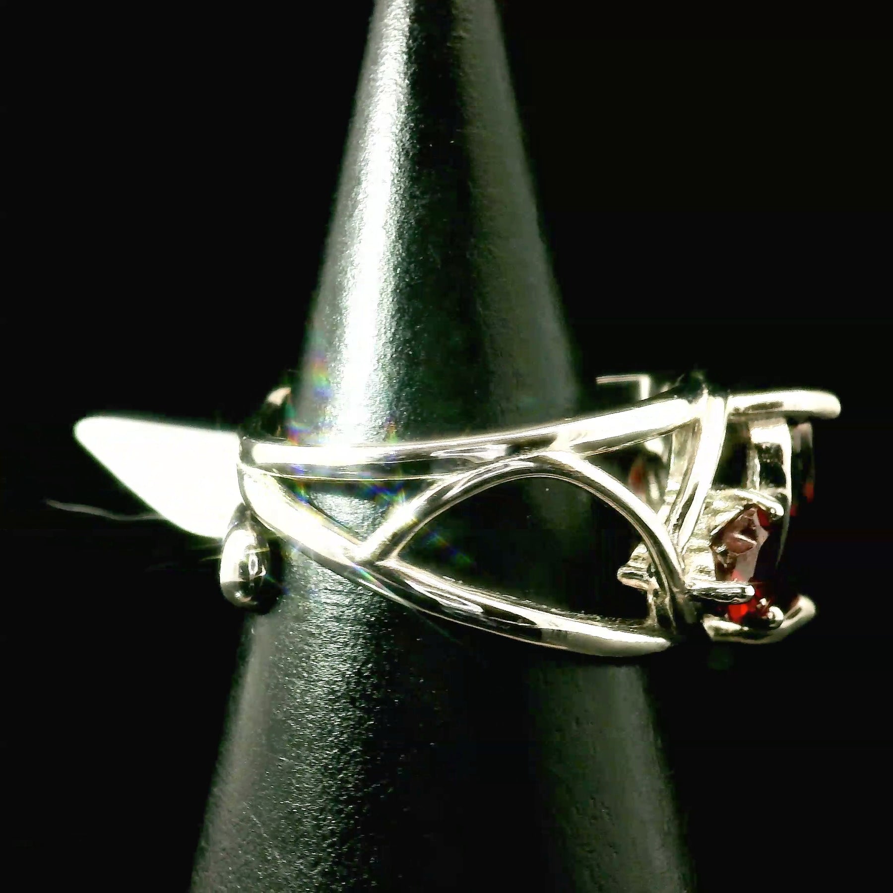 Absolutely gorgeous and high quality, Garnet Cuff Ring in Rhodium Plated, .925 Sterling Silver. Adjustable ring fits sizes 4-11.