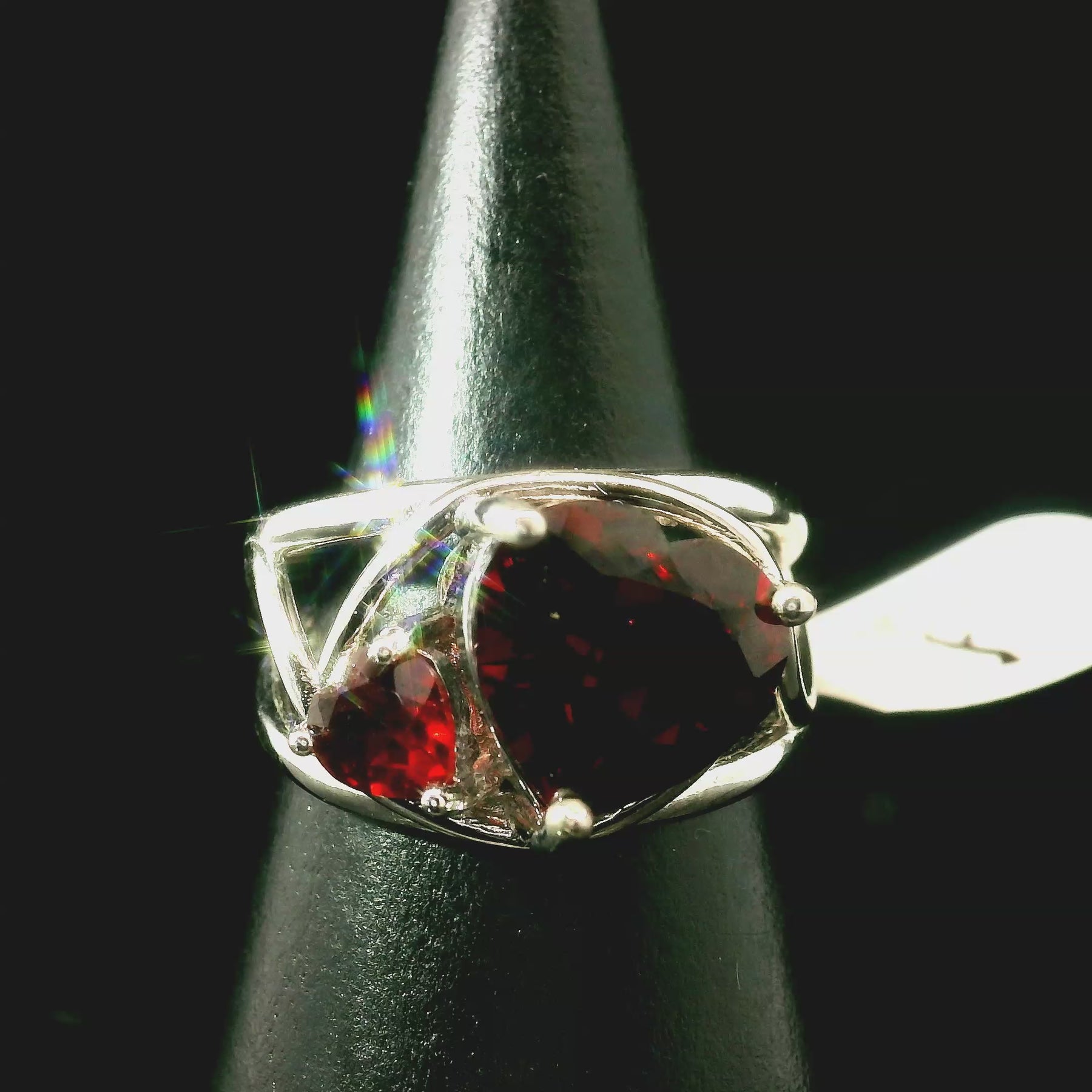 Stunning, high quality Garnet has been hand selected by Rick and Jamie! Set in a tasteful rhodium plated, .925 sterling silver setting, this will be a beautiful heirloom in your collection to enjoy for generations!