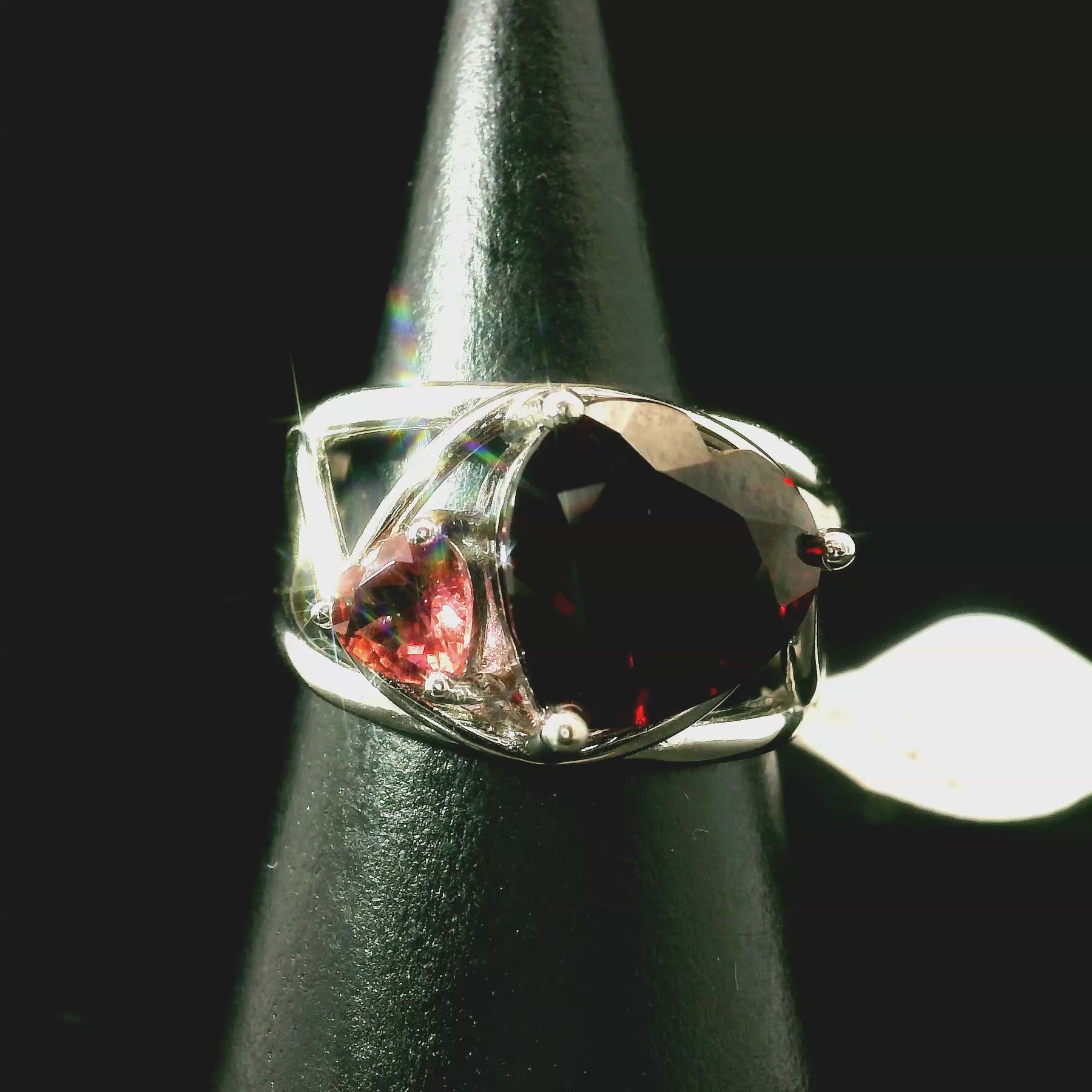 Stunning, high quality Garnet & Pink Tourmaline has been hand selected by Rick and Jamie! Set in a tasteful rhodium plated, .925 sterling silver setting, this will be a beautiful heirloom in your collection to enjoy for generations!