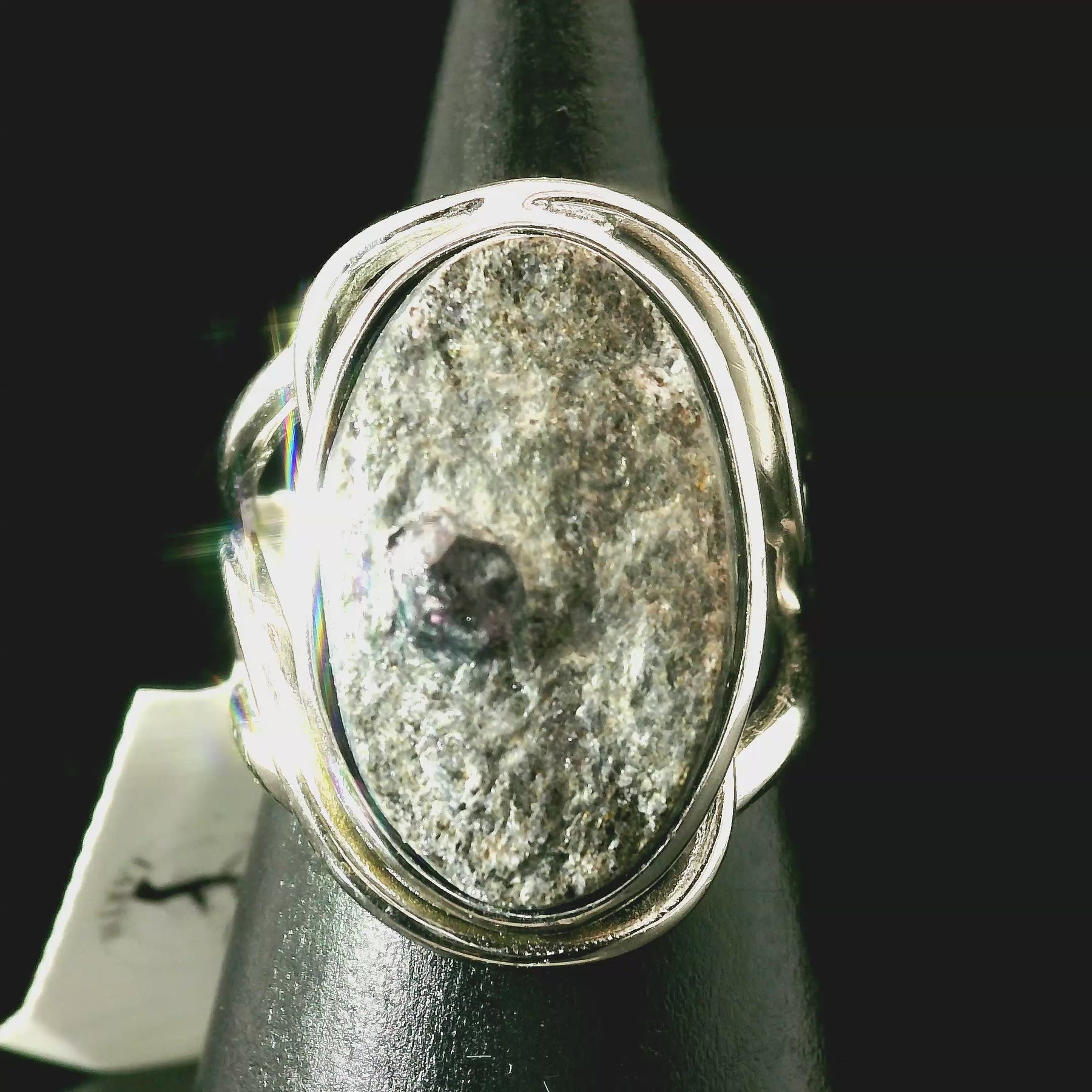 Stunning high quality Garnet in Schist has been hand selected by Rick and Jamie! Set in a tasteful rhodium plated, .925 sterling silver setting, this will be a beautiful heirloom in your collection to enjoy for generations!