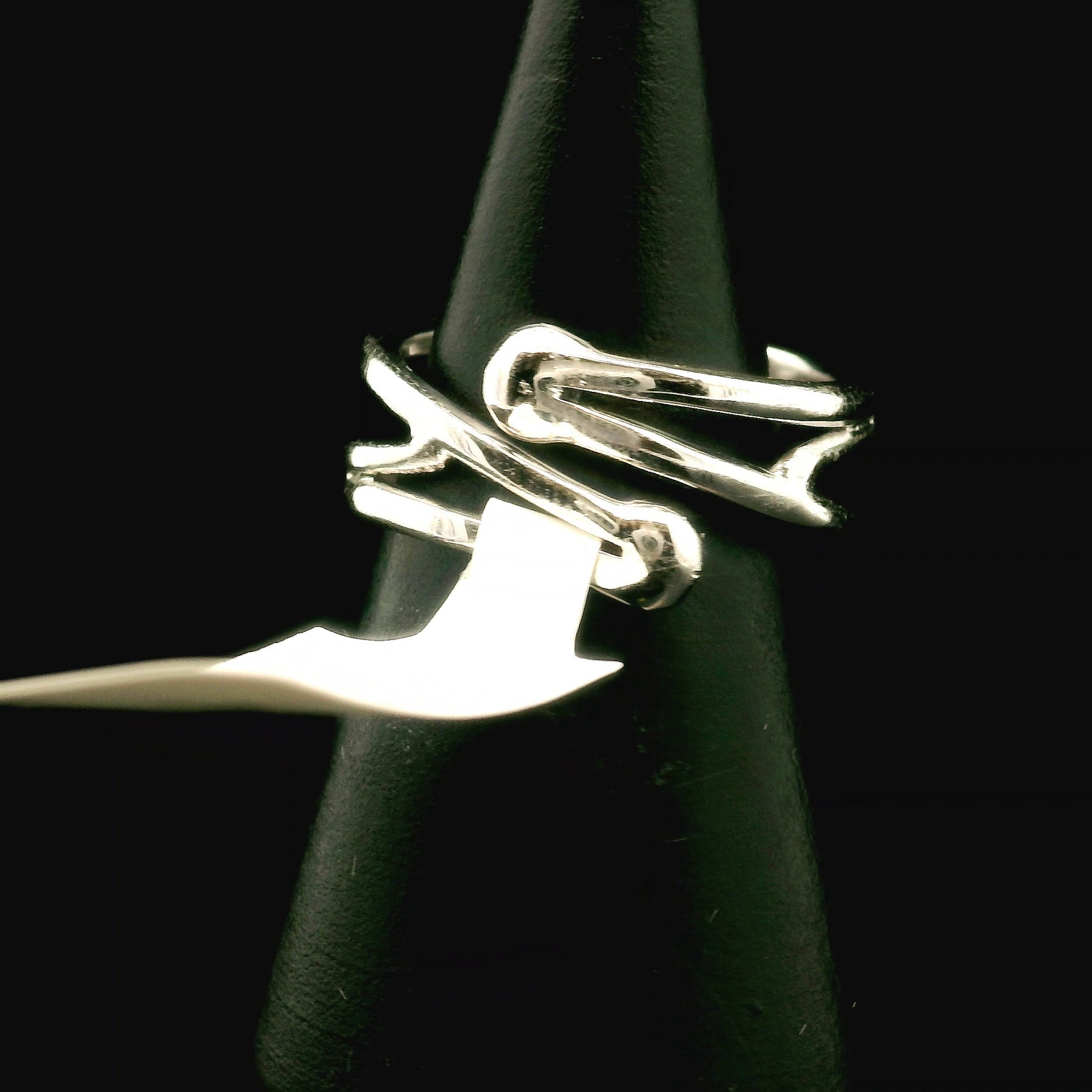 Stunning, high quality Ammonite Midi Cuff Ring in rhodium plated, .925 Sterling Silver. Adjustable ring fits sizes 1-9.