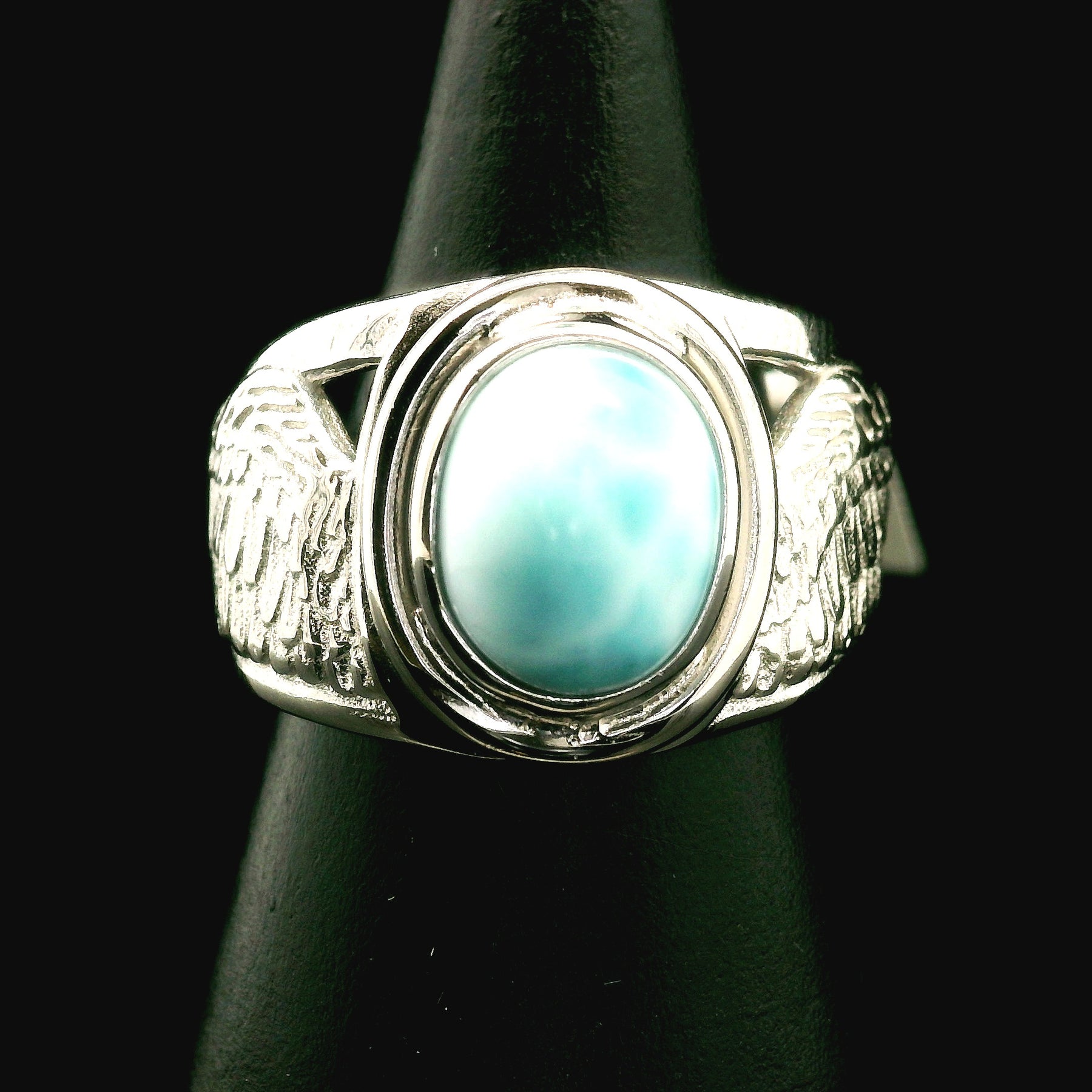 Each stone is hand-selected with intention by Rick and Jamie and set in our best-selling, rhodium plated .925 sterling silver adjustable setting. The open band design allows for a comfortable fit while carrying the energy of peace, upliftment, and protection.