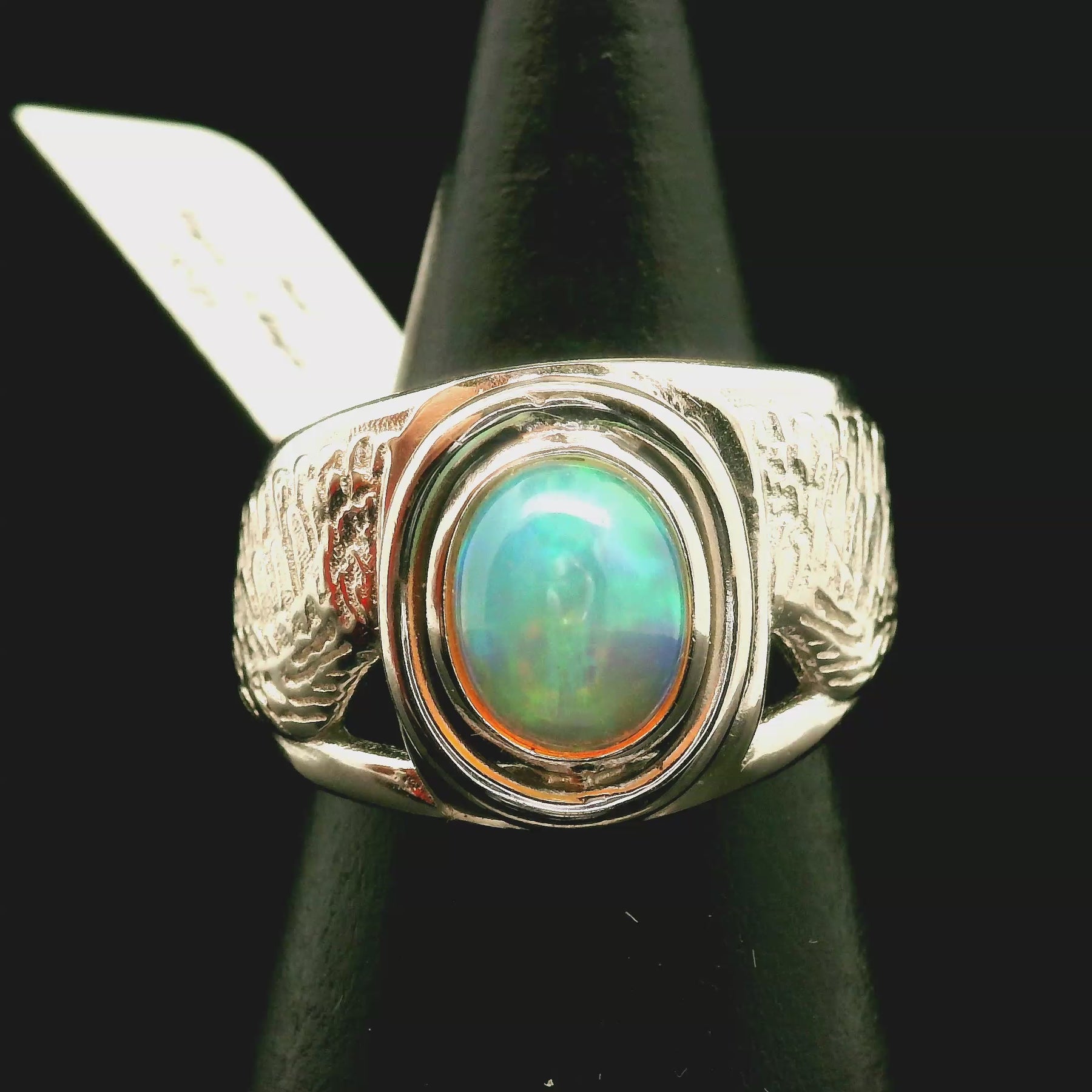Energetically, this ring acts as a gentle guardian. It clears the energy field of worry and heaviness while lifting your vibration into calm and clarity. Wearing it daily invites you to walk with faith, open your heart to guidance, and trust that you are surrounded by love in every moment.