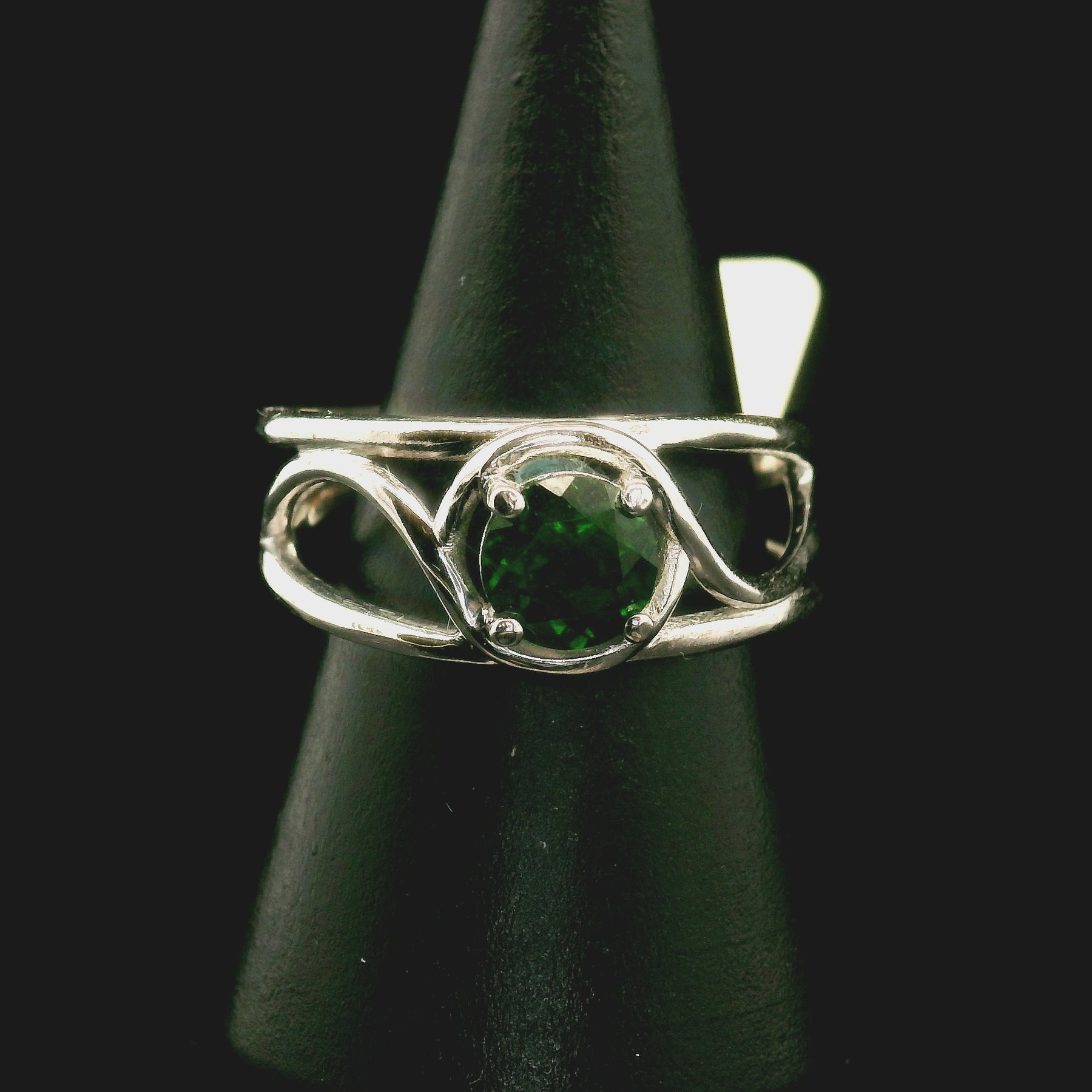 This beautiful, high quality, natural untreated Chrome Diopside was hand picked with intention just for you by Rick and Jamie and set in our best selling, rhodium plated, .925 Sterling Silver adjustable setting.