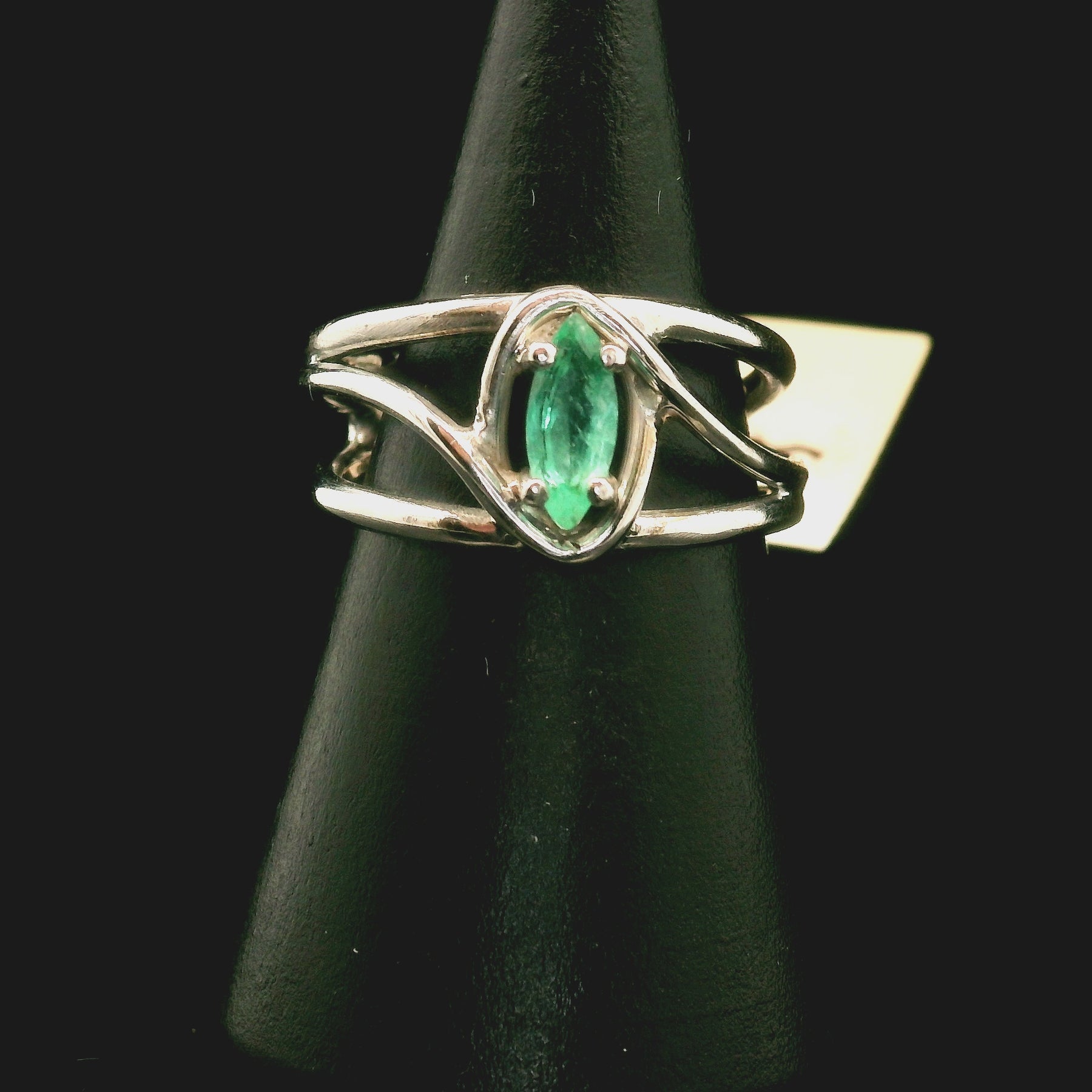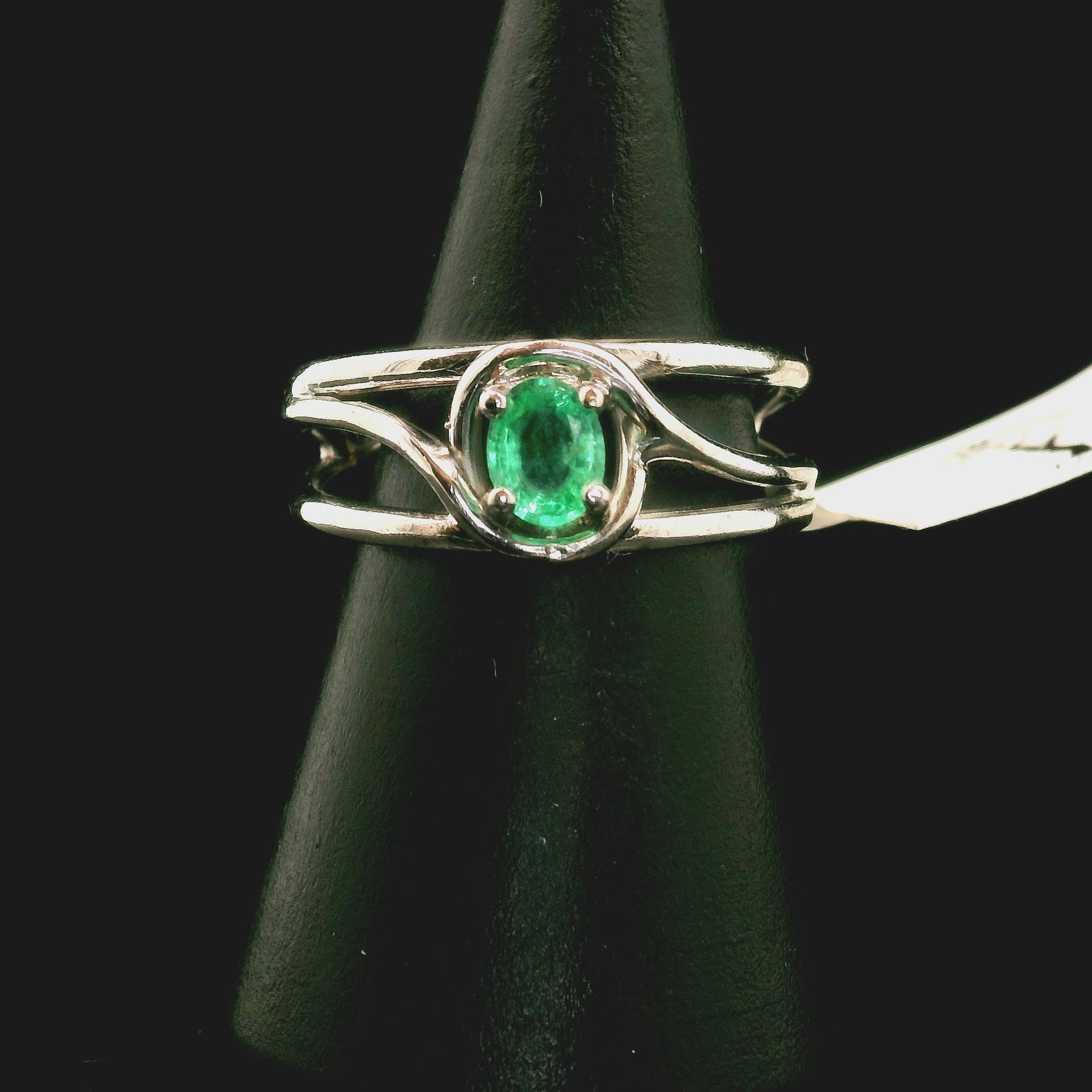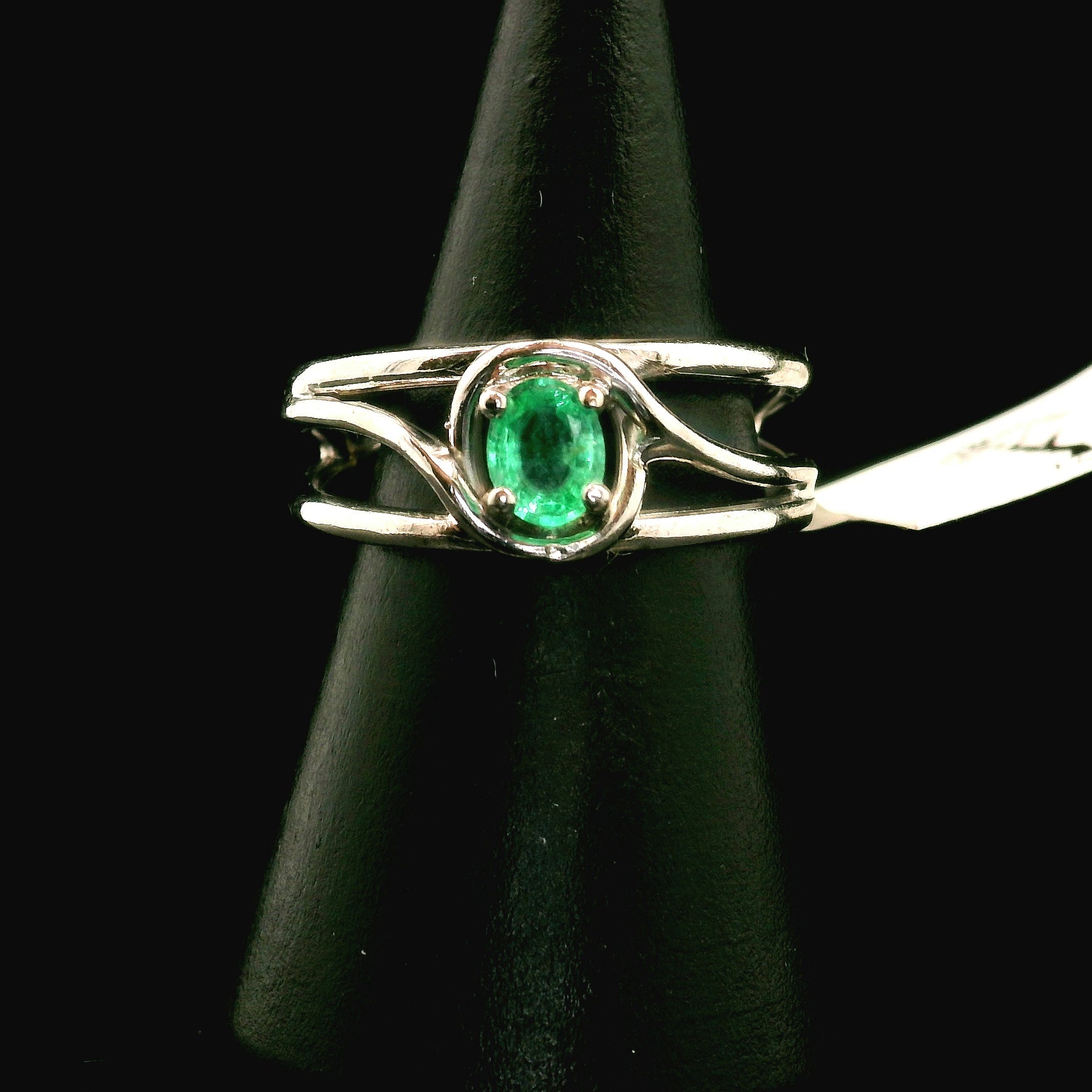 This beautiful, high quality, natural untreated Colombian Emerald was hand picked with intention just for you by Rick and Jamie and set in our best selling, rhodium plated, .925 Sterling Silver adjustable setting.