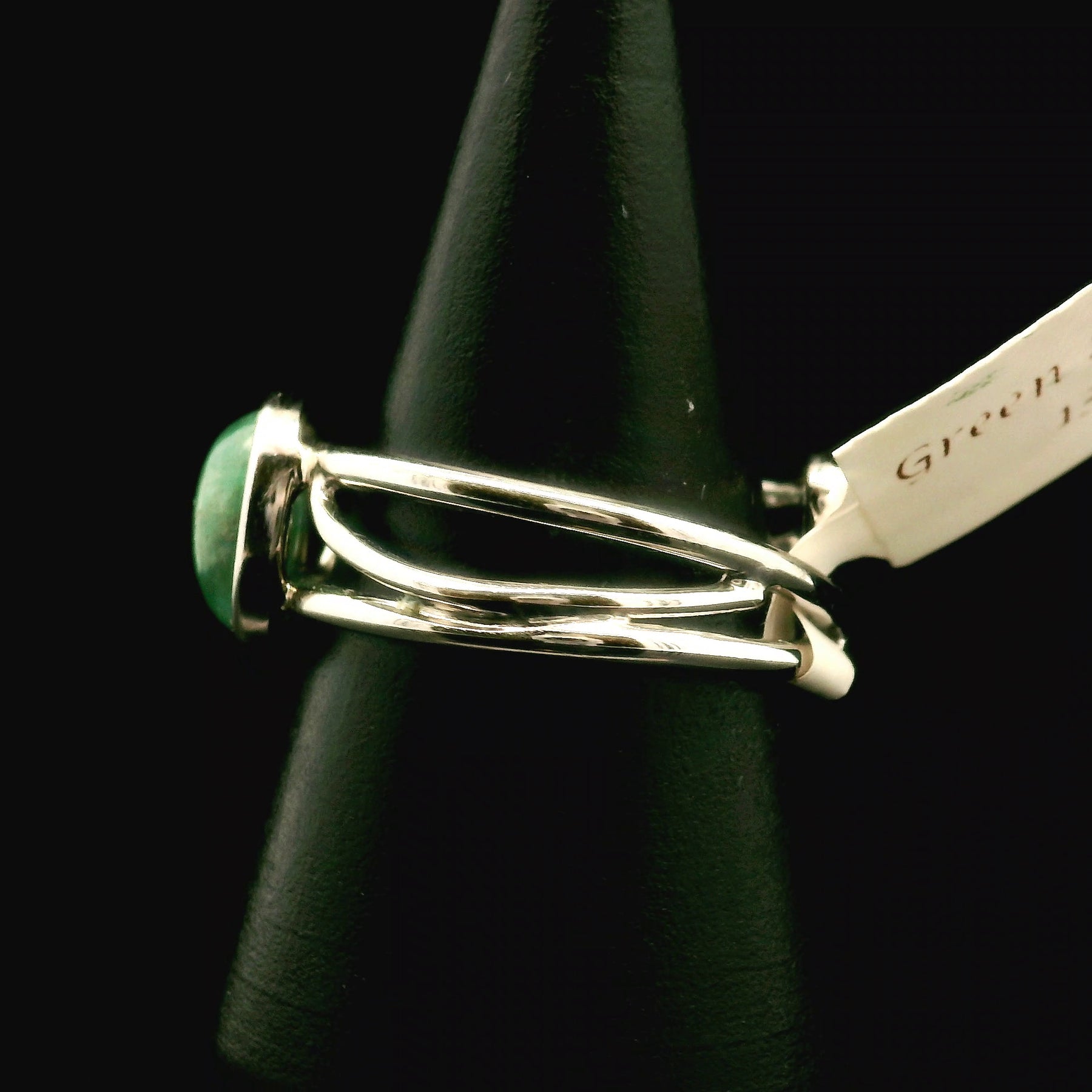 Absolutely gorgeous and high quality, Green Kyanite Cuff Ring in Rhodium Plated, .925 Sterling Silver. Adjustable ring fits sizes 4-11.