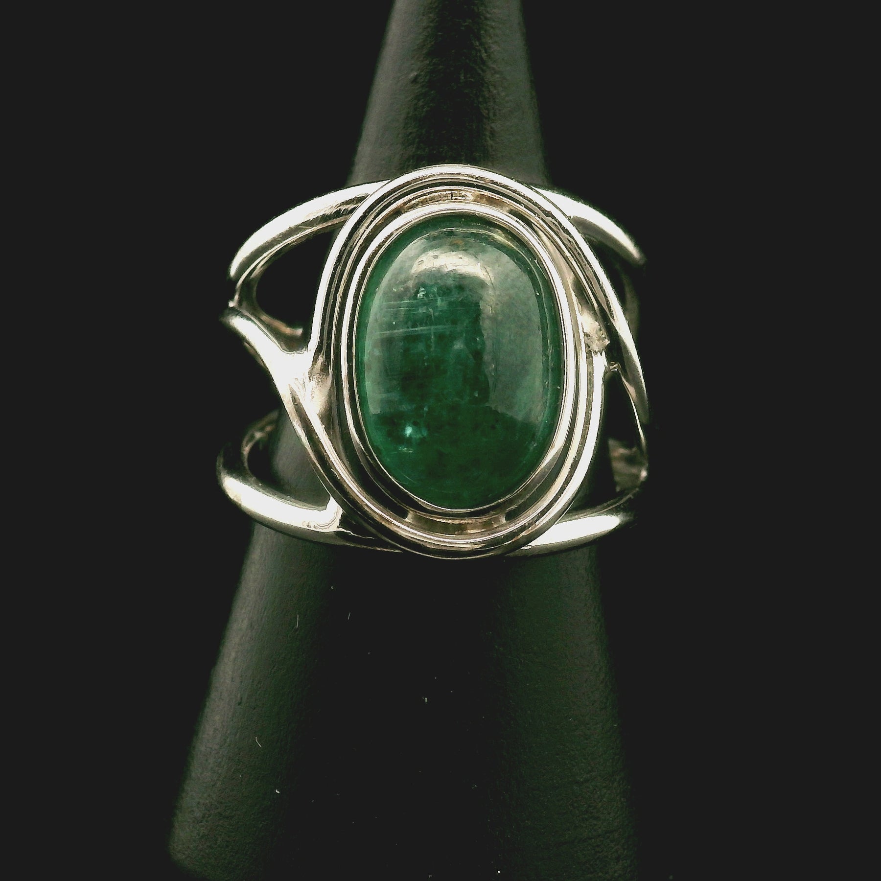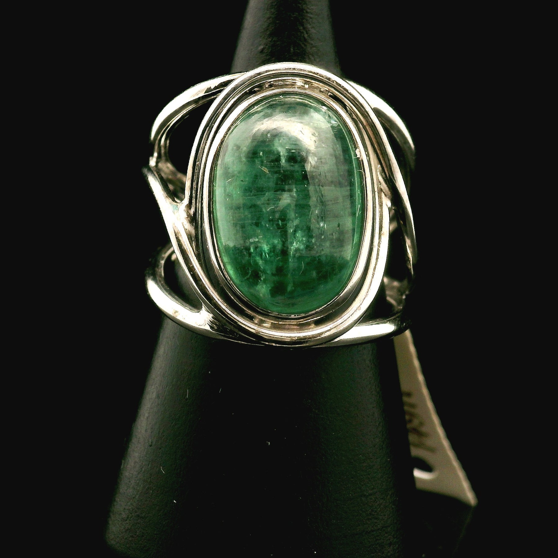 Absolutely gorgeous and high quality, Green Kyanite Cuff Ring in Rhodium Plated, .925 Sterling Silver. Adjustable ring fits sizes 4-11.