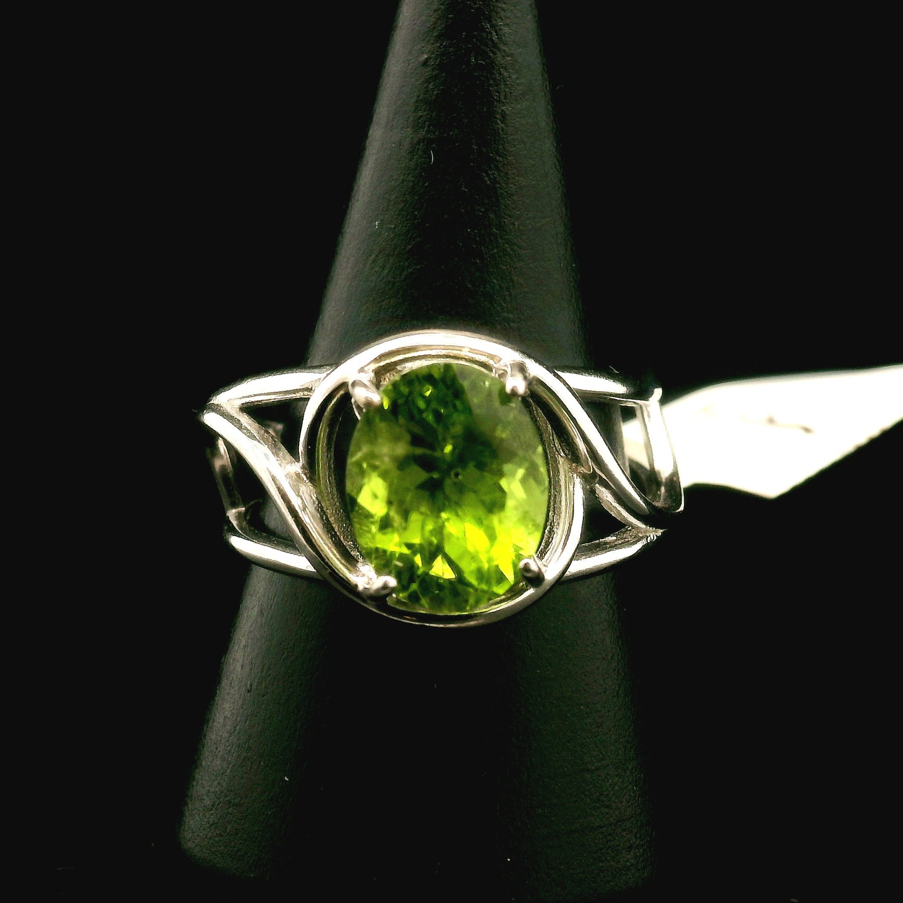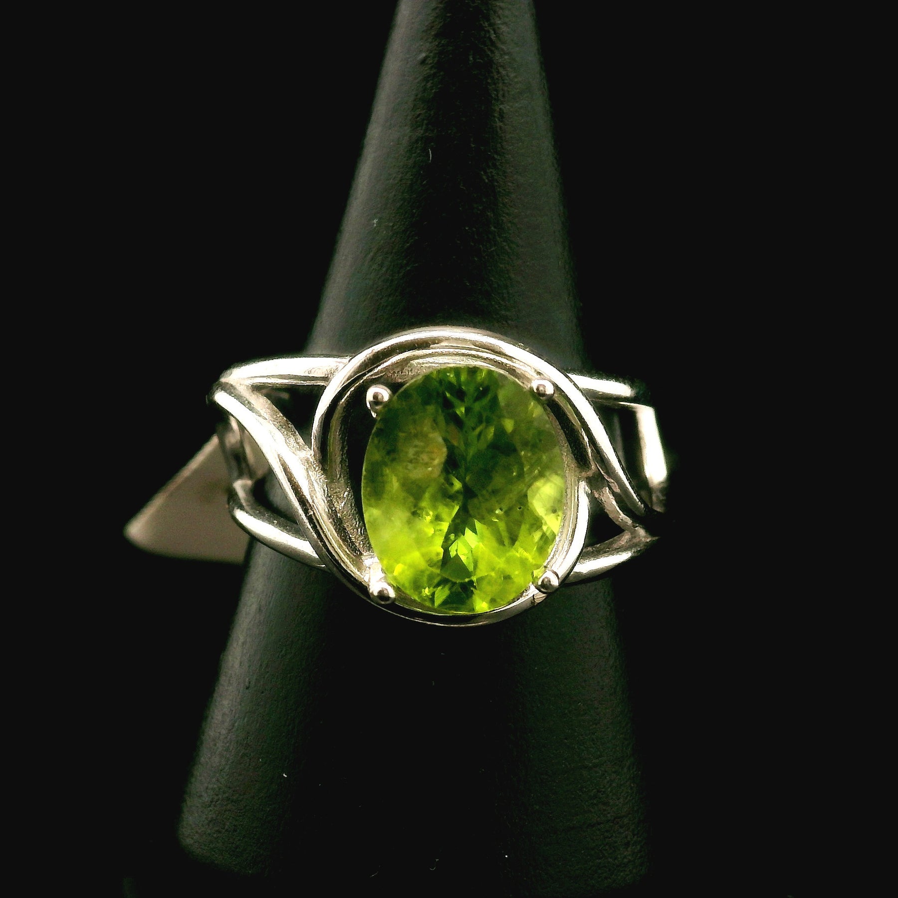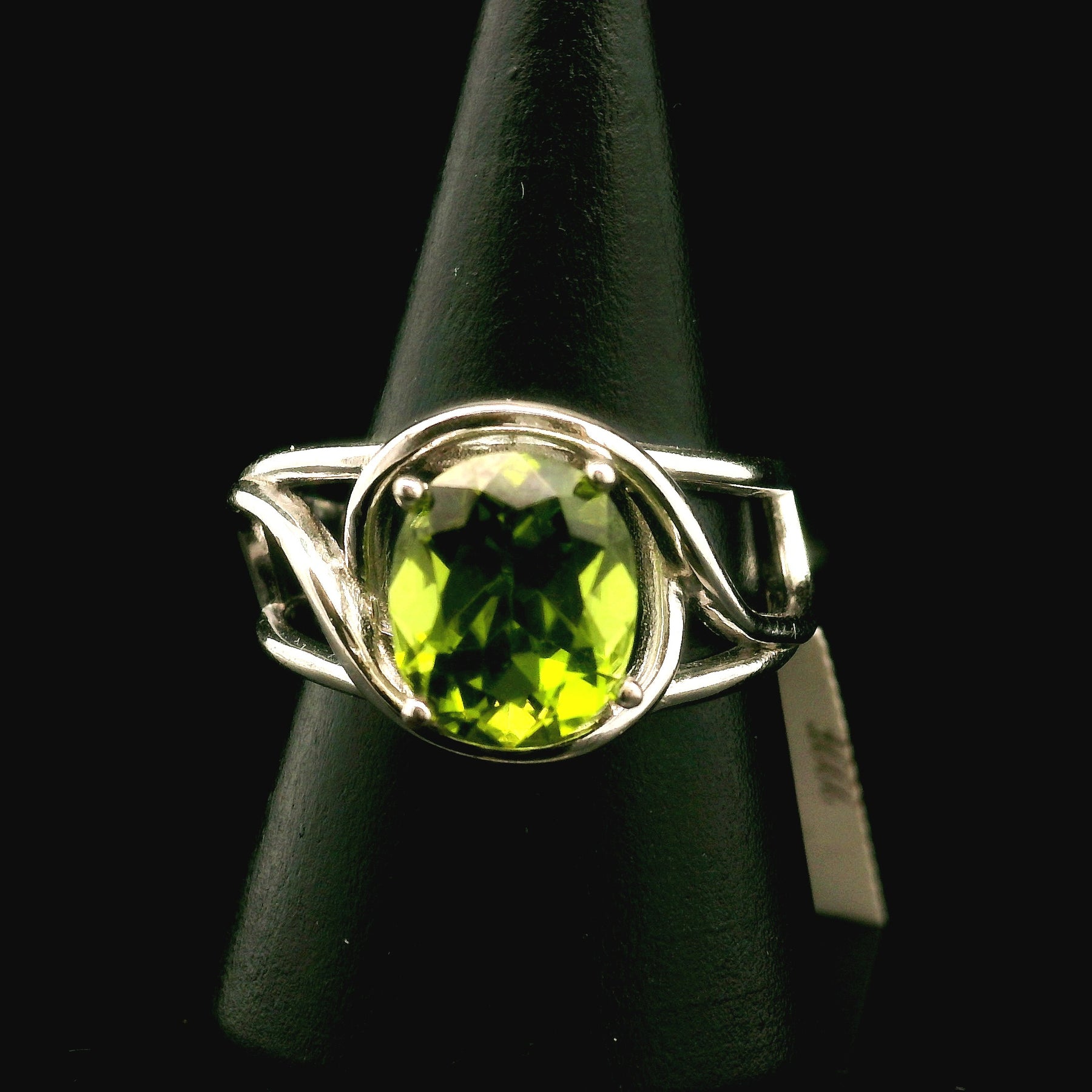 This beautiful, high quality, natural untreated Peridot was hand picked with intention just for you by Rick and Jamie and set in our best selling, rhodium plated, .925 Sterling Silver adjustable setting.