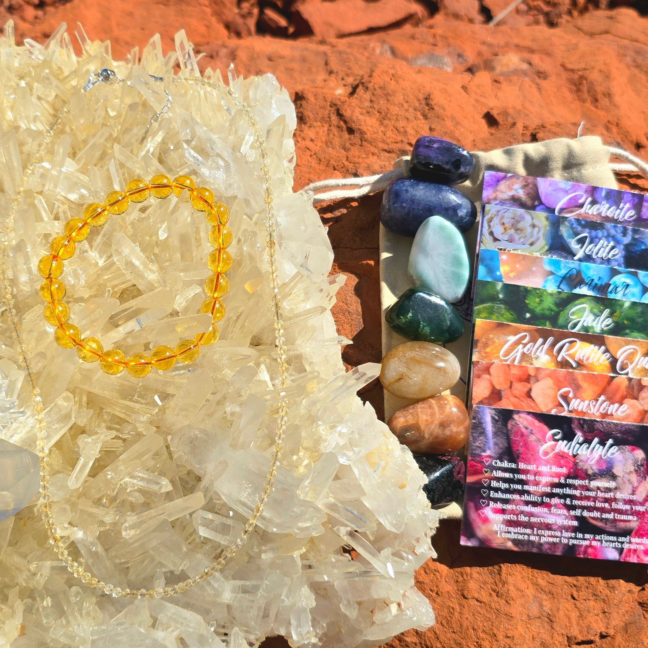 Everyday Magic Holiday Set | Choker Bracelet + Luxury 7-Chakra Stone Set | Citrine Rose Quartz Amethyst Black Tourmaline