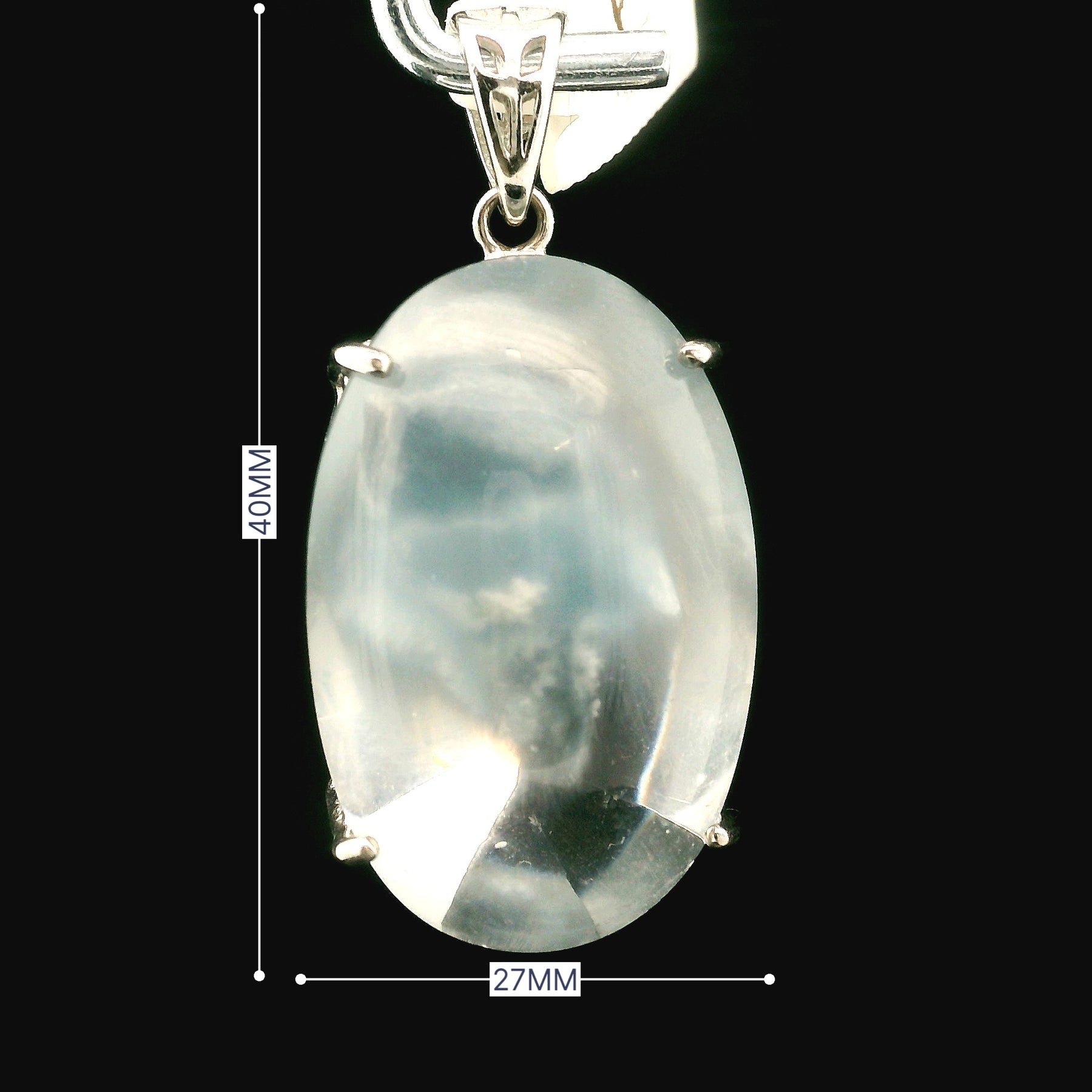Absolutely gorgeous and high quality, Amphibole Quartz Cuff Pendant in Rhodium Plated, .925 Sterling Silver.