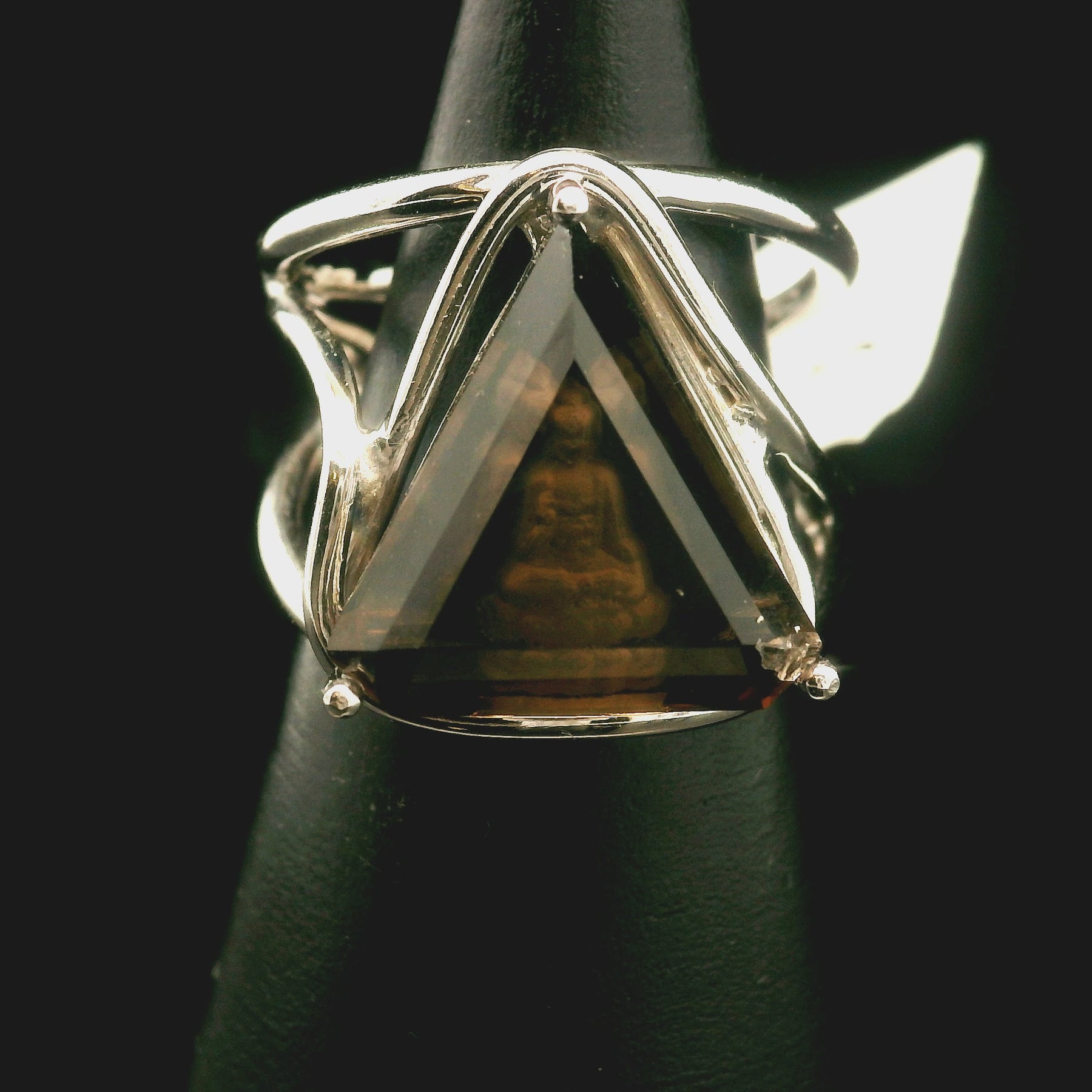 Smoky Quartz Buddha Finger Cuff Adjustable Ring .925 Silver for Energetic Cleansing, Manifestation and Protection