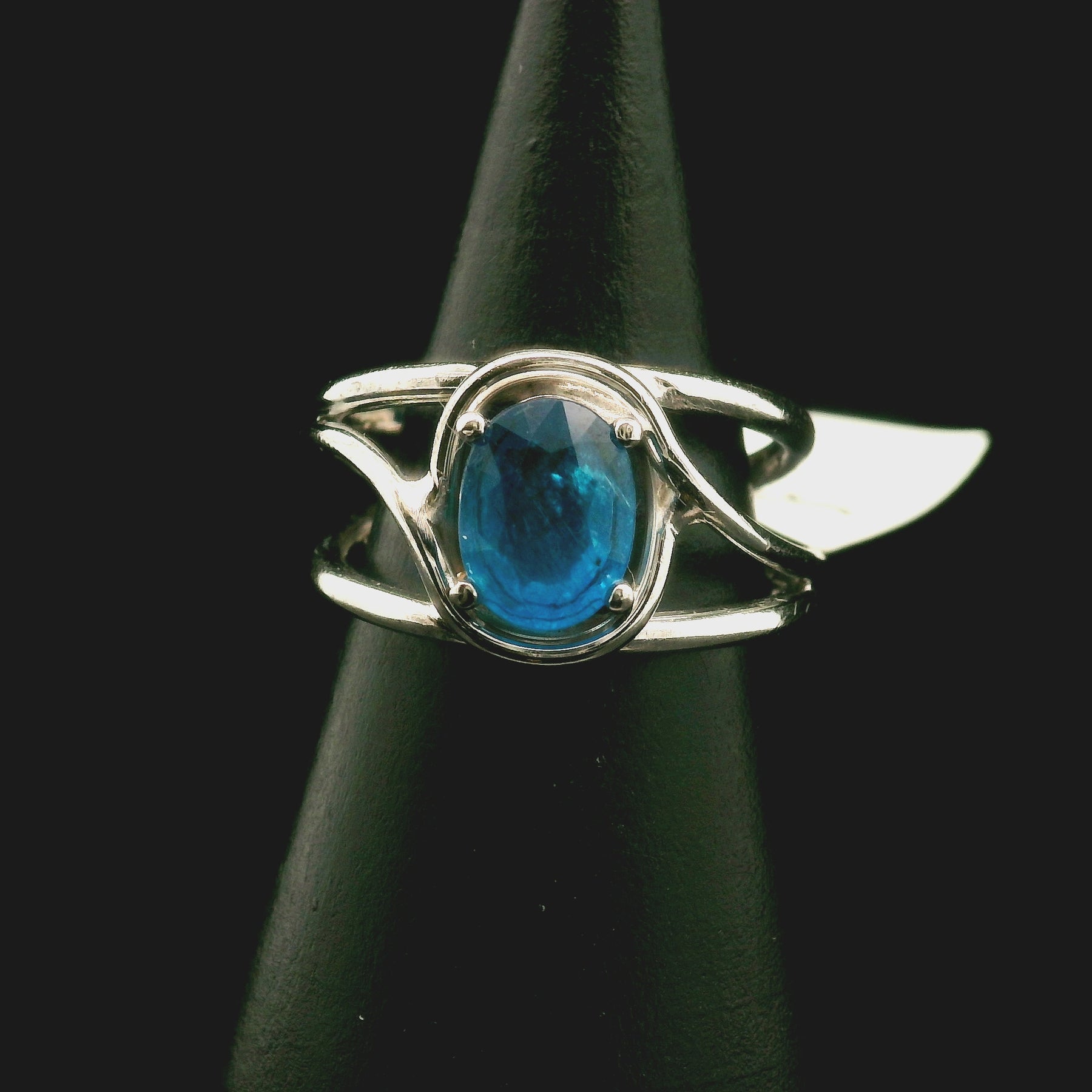 This beautiful, high quality, natural untreated Neon Blue Apatite was hand picked with intention just for you by Rick and Jamie and set in our best selling, rhodium plated, .925 Sterling Silver adjustable setting.