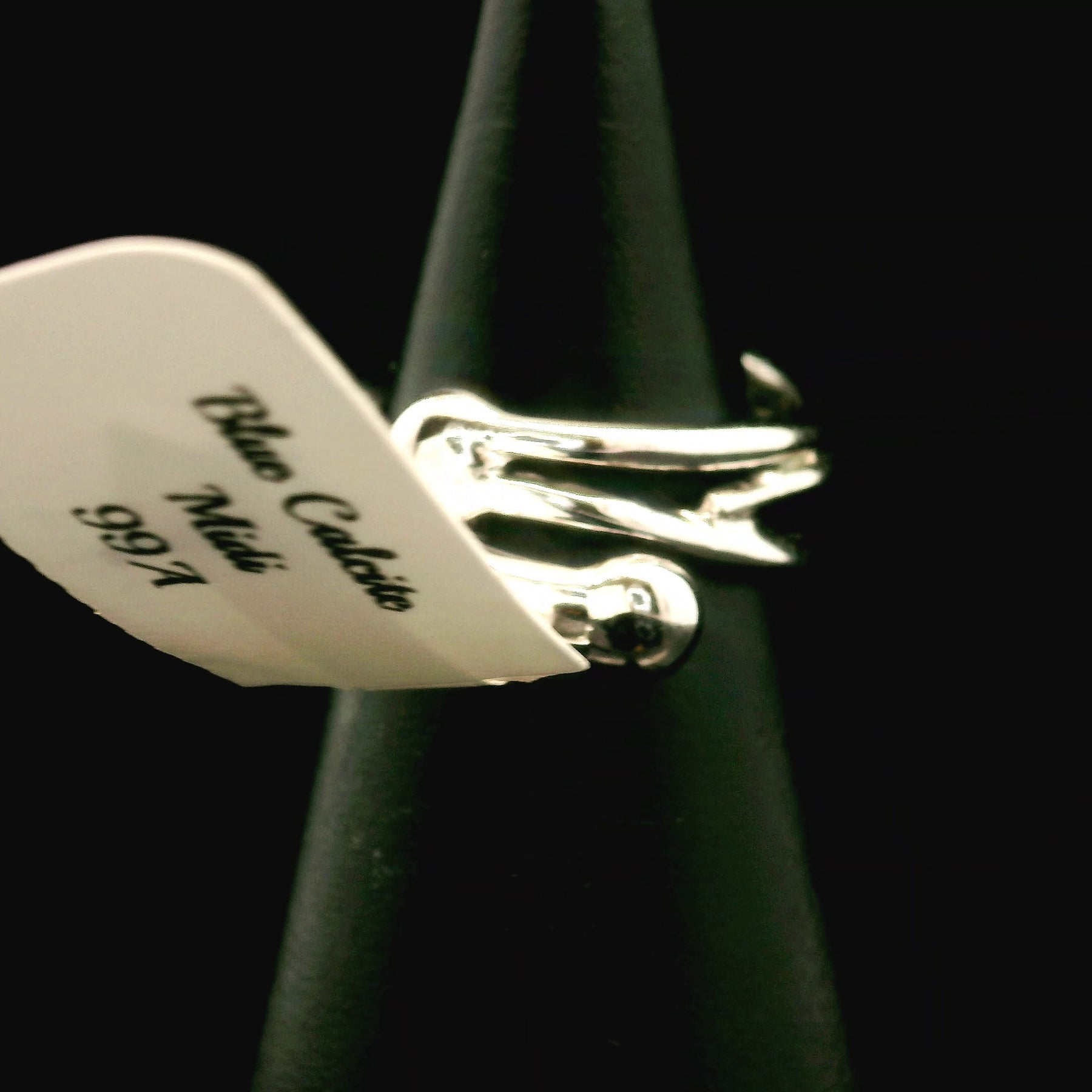 Absolutely enchanting Lemurian Blue Calcite Midi Cuff Ring in rhodium plated, .925 Sterling Silver. Adjustable ring fits sizes 1-9