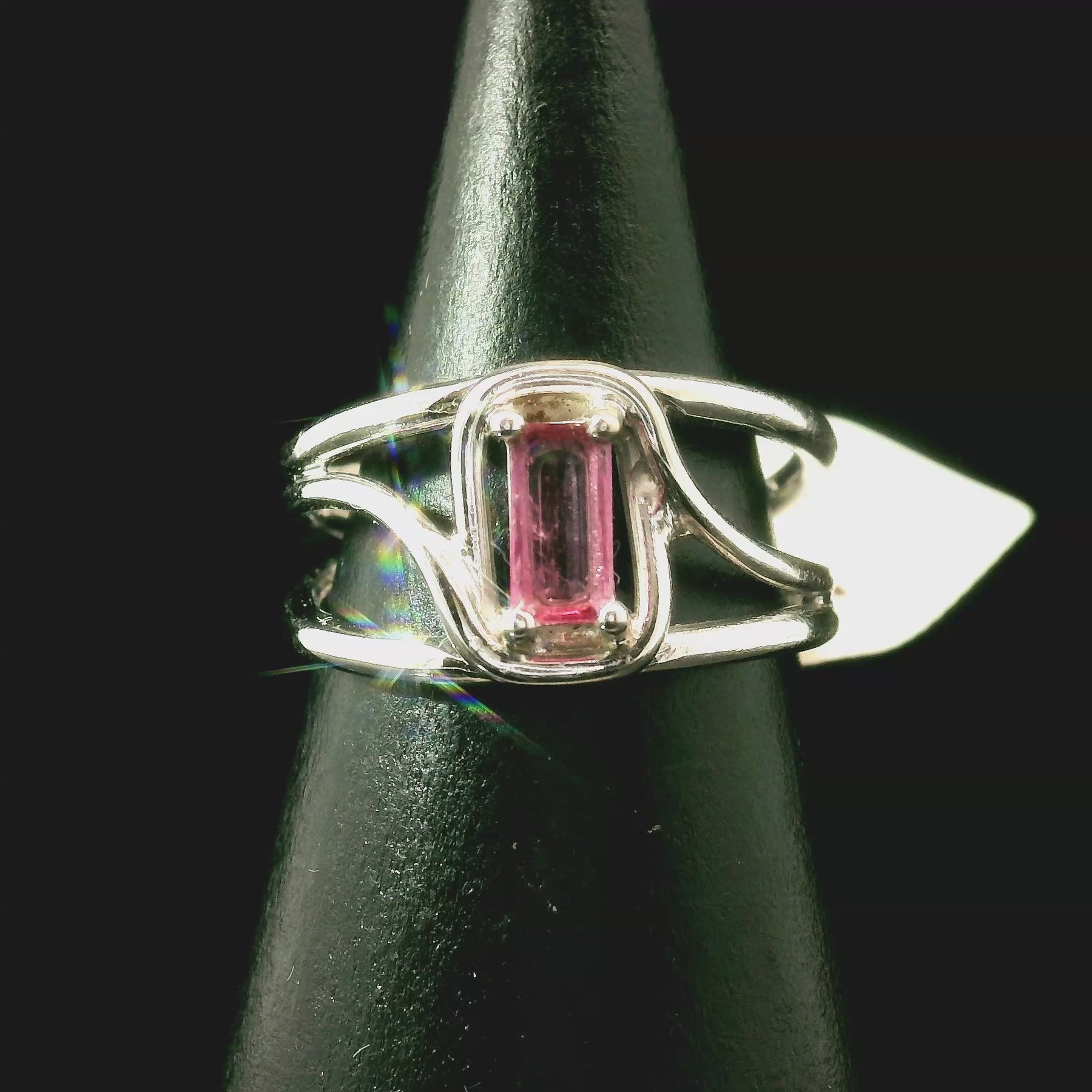 Stunning high quality Pink Tourmaline has been hand selected by Rick and Jamie! Set in a tasteful rhodium plated, .925 sterling silver setting, this will be a beautiful heirloom in your collection to enjoy for generations!