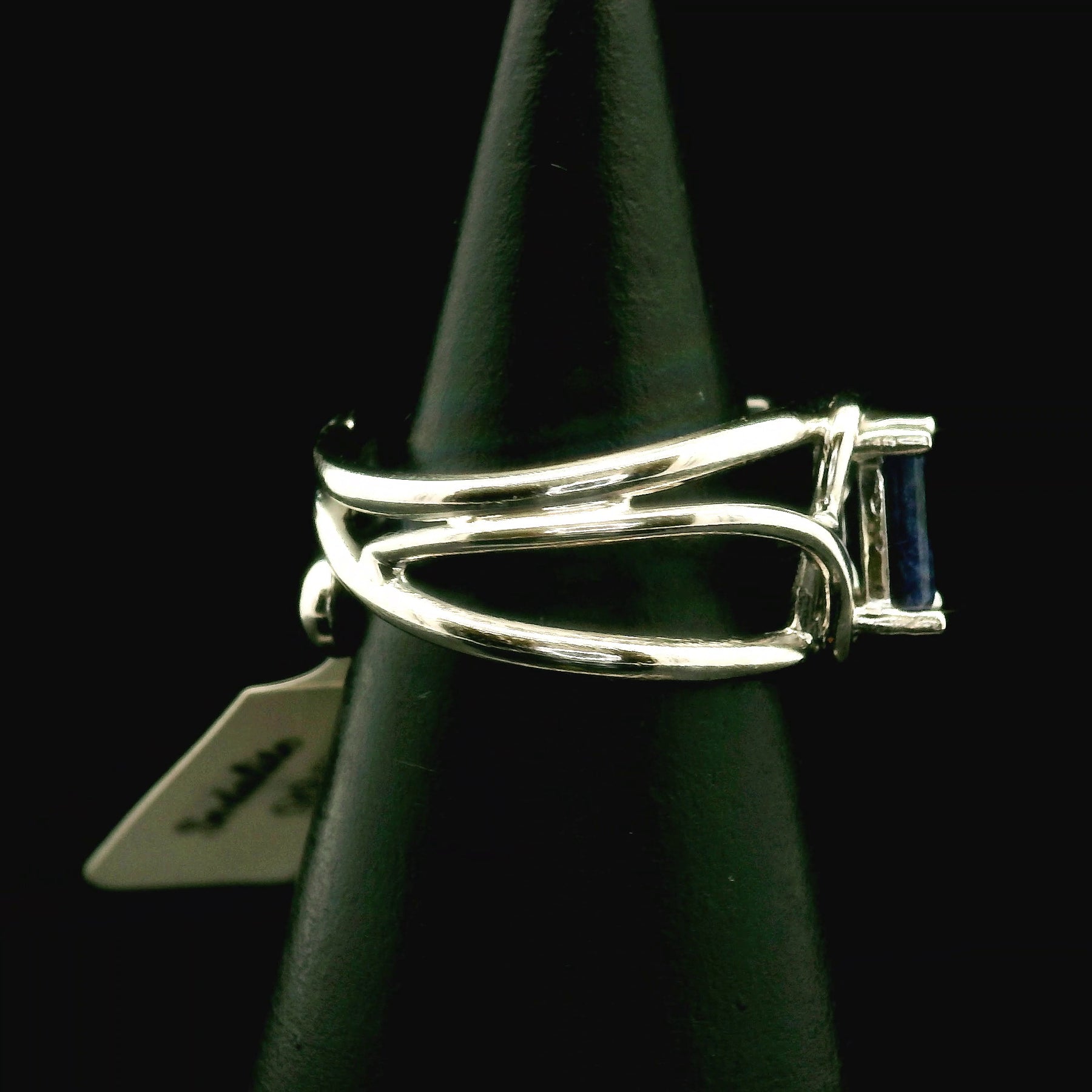 Absolutely enchanting Sodalite Midi Cuff Ring in rhodium plated, .925 Sterling Silver. Adjustable ring fits sizes 1-9.