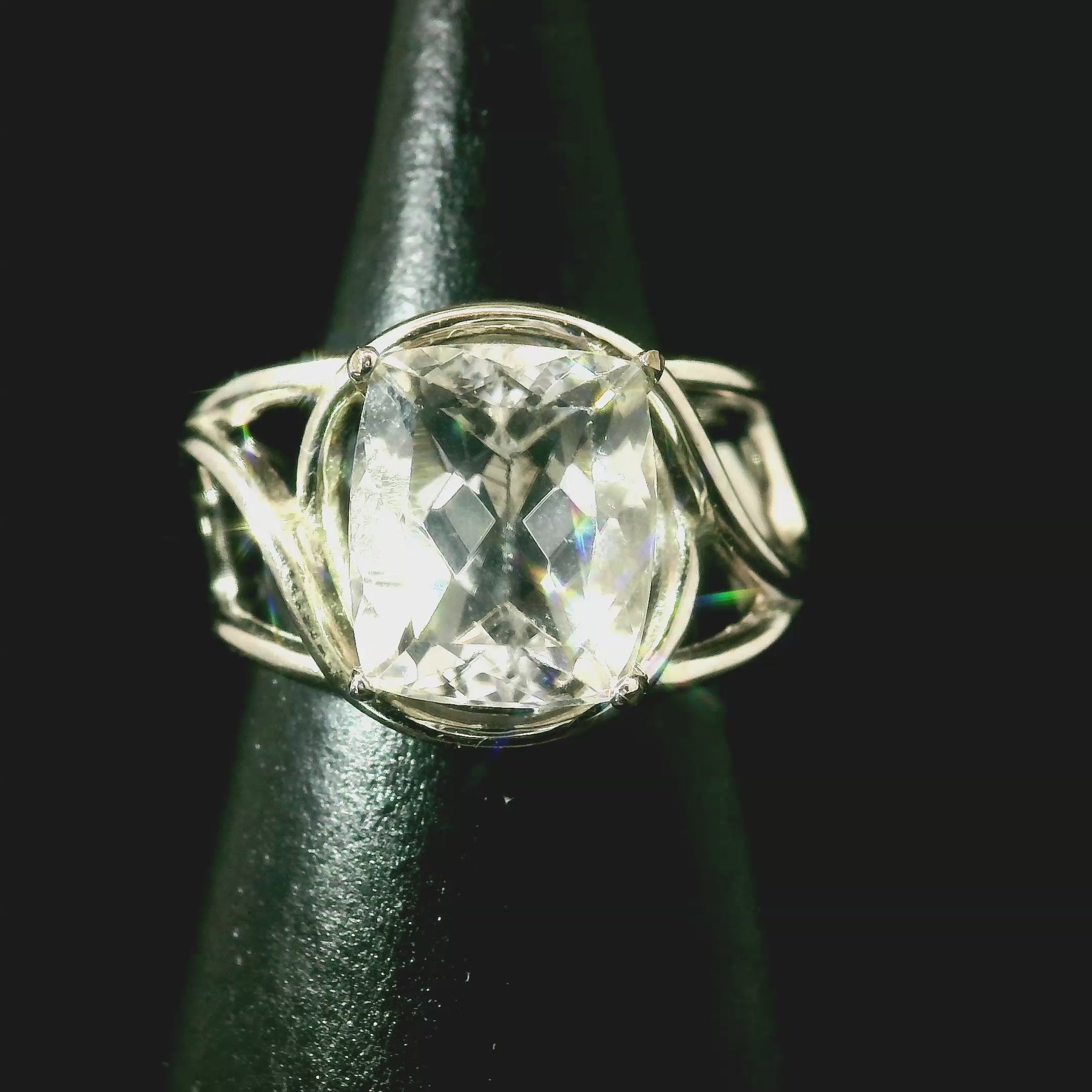 Absolutely incredible Montebrasite Cuff Ring in rhodium-plated .925 Sterling Silver. Adjustable from sizes 4–11.