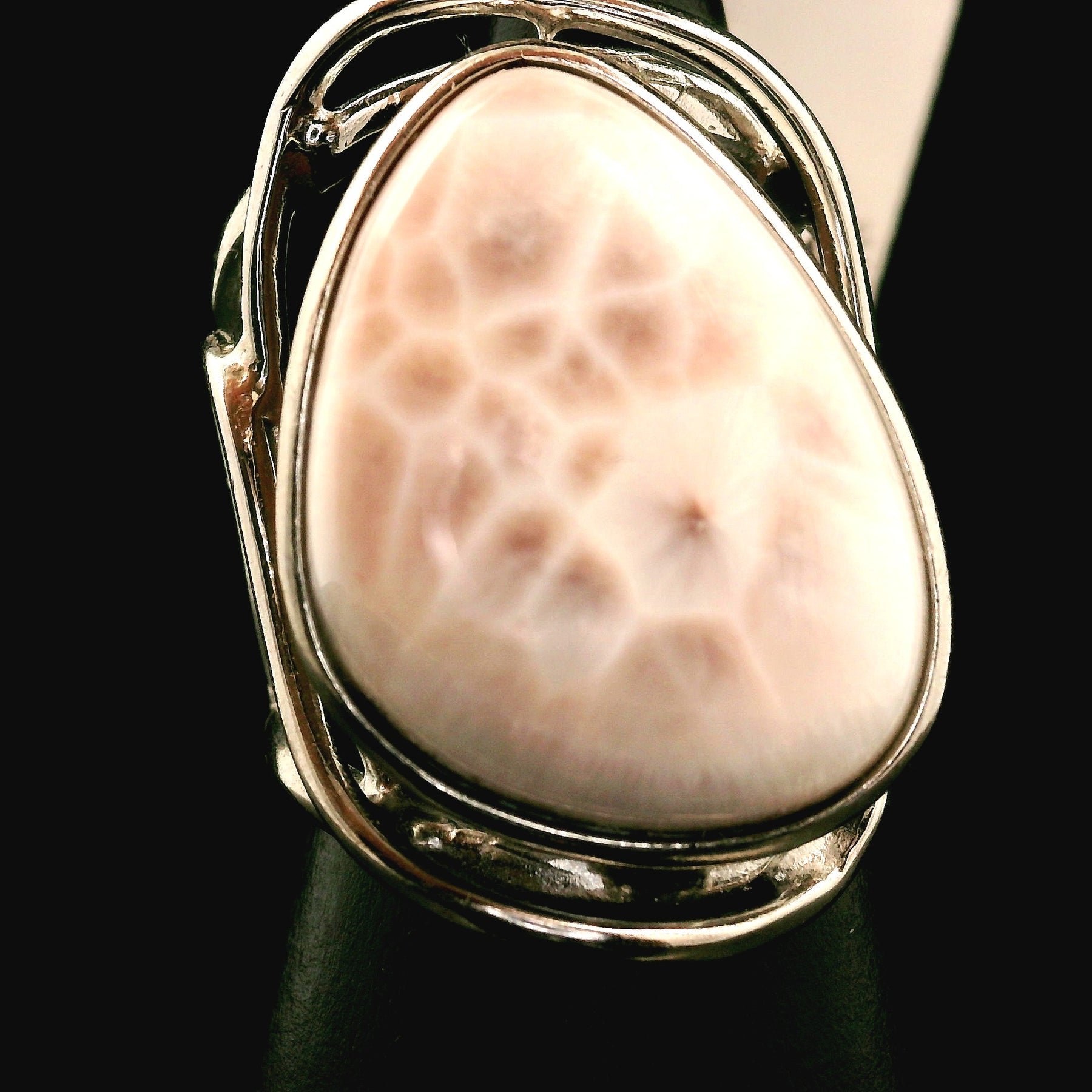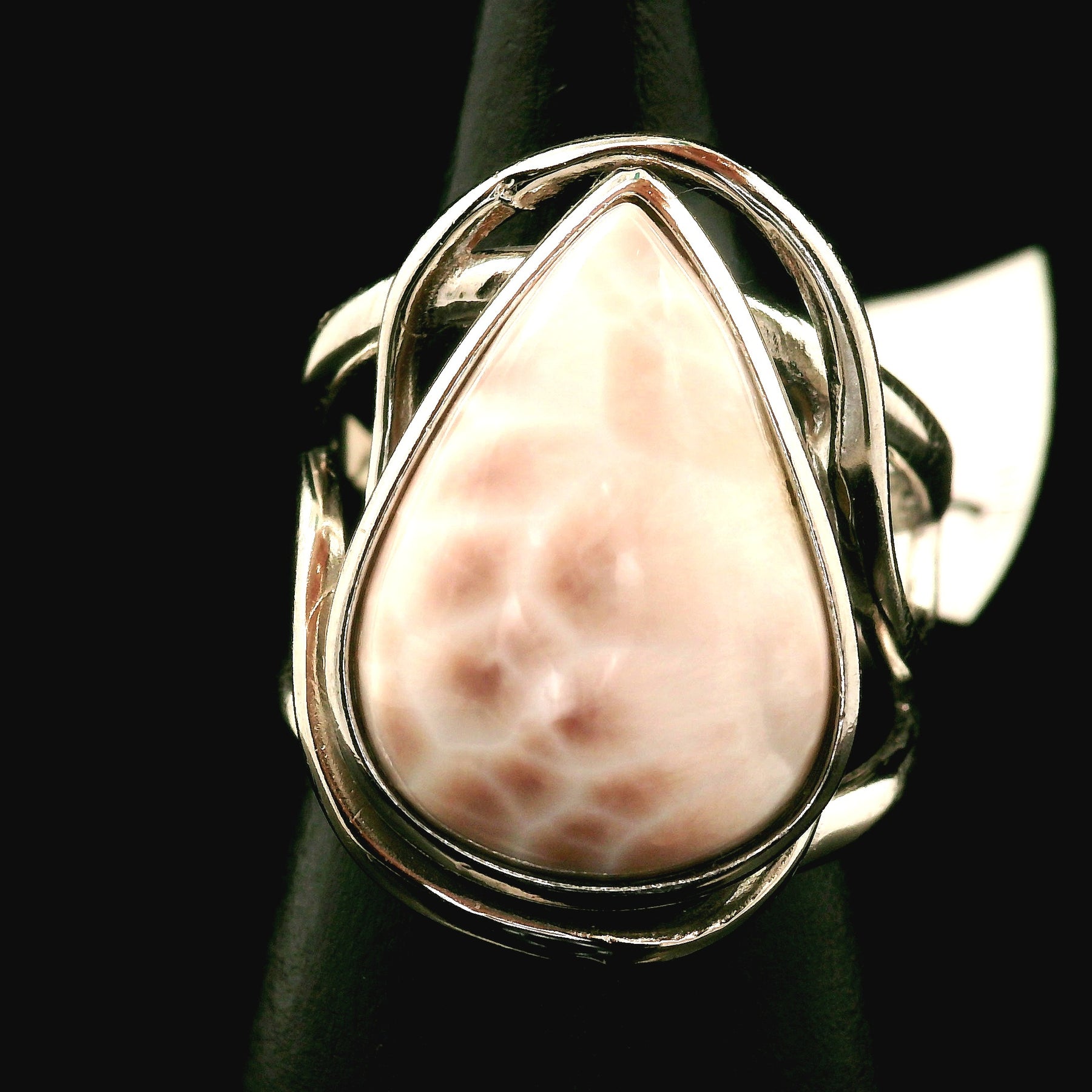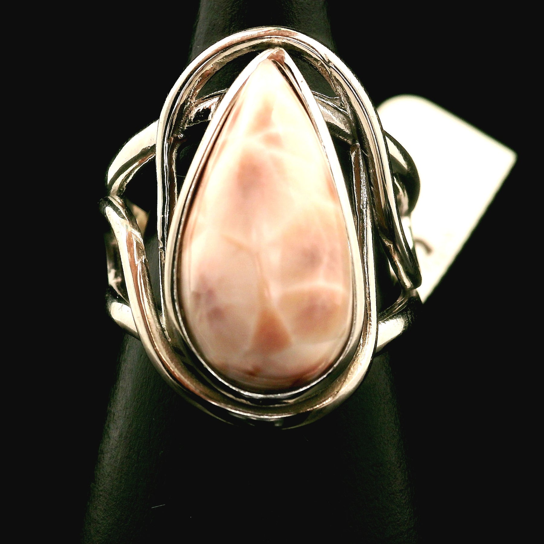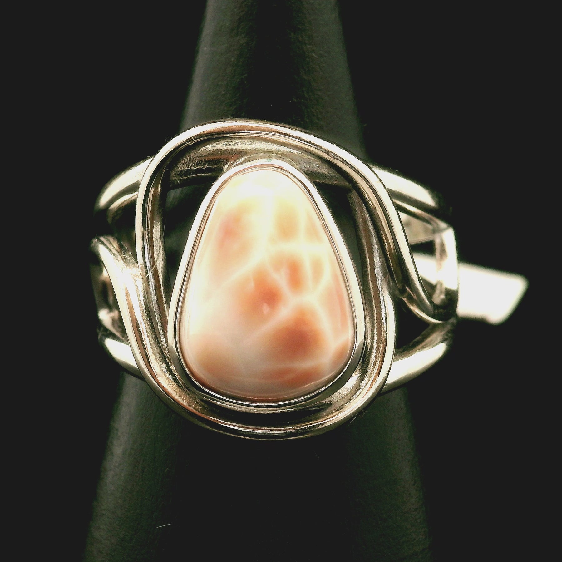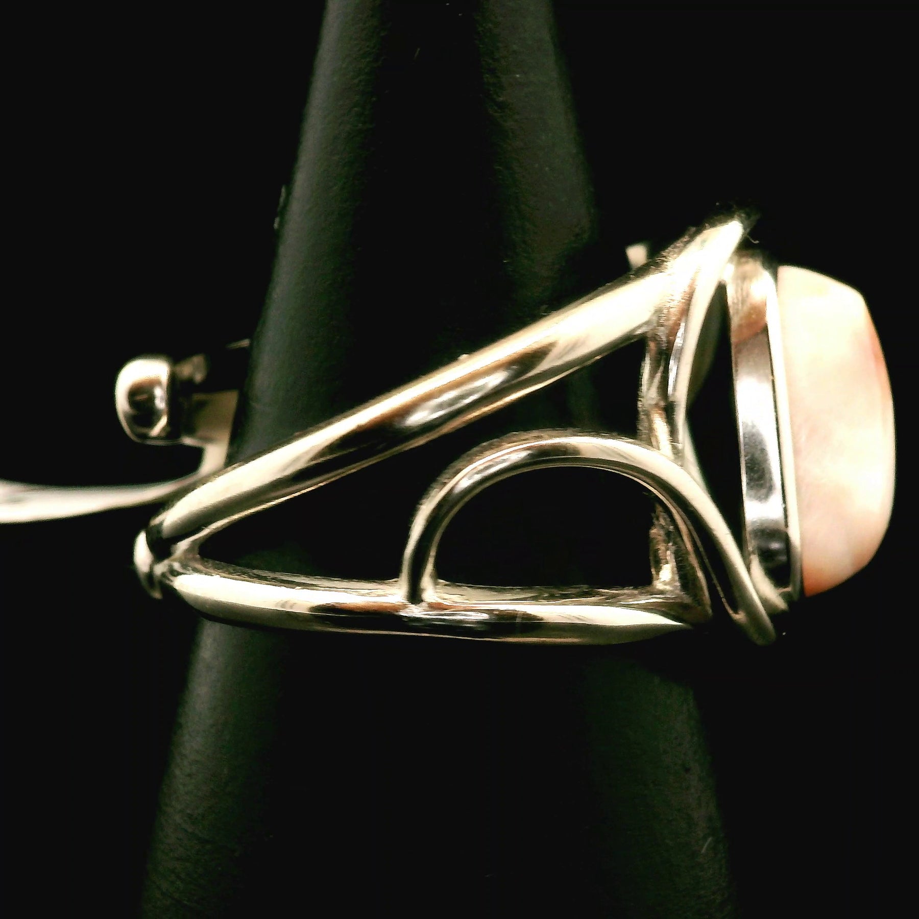 Absolutely gorgeous and high quality, Pink Natrolite Cuff Ring .925 Sterling Silver. Adjustable ring fits sizes 4-11.