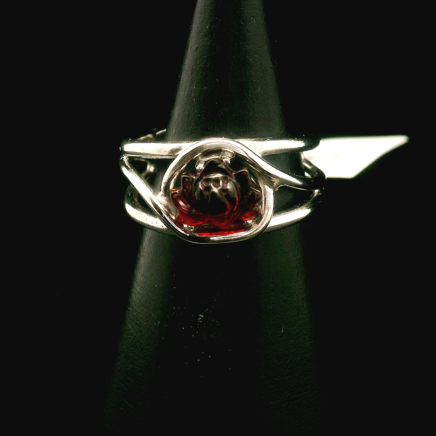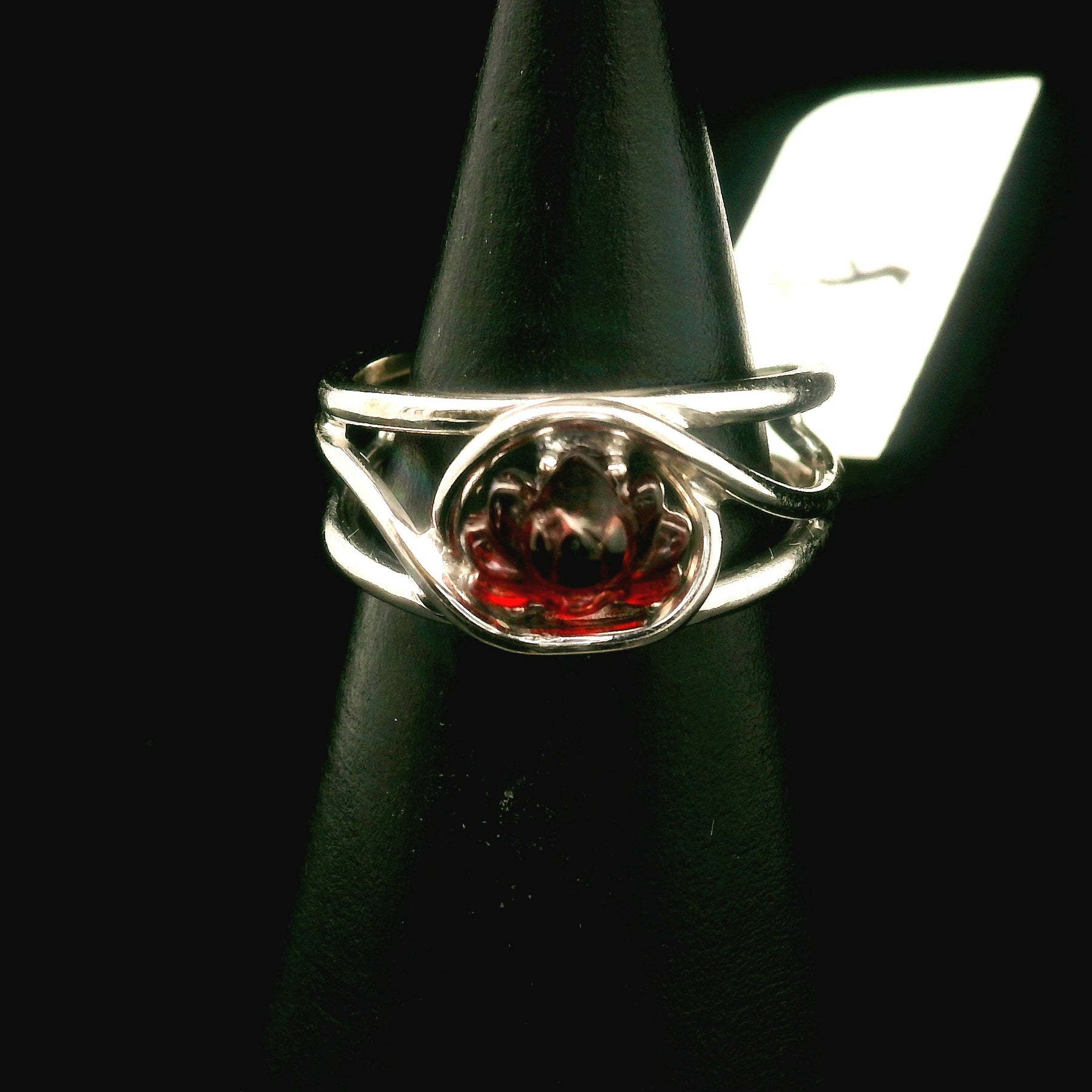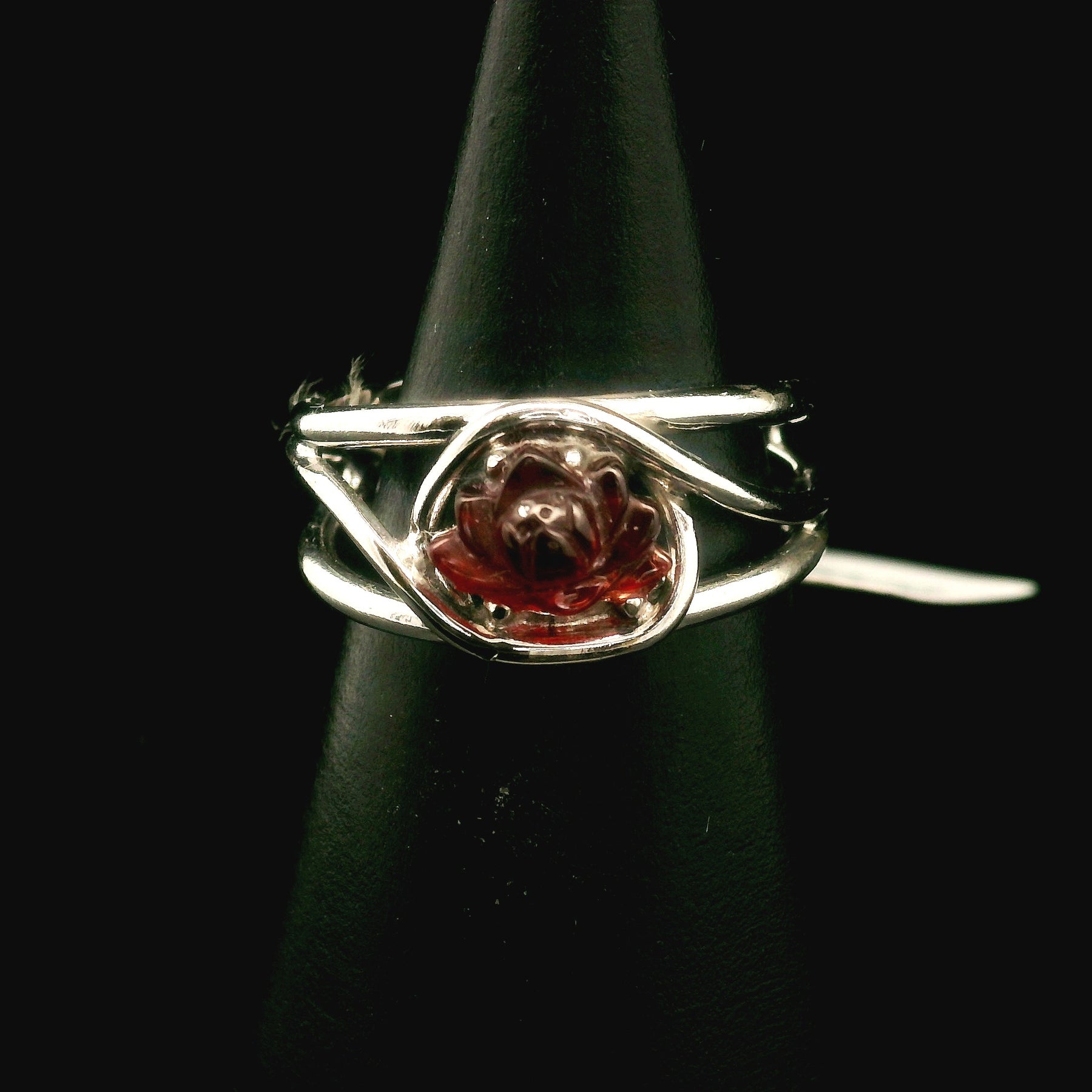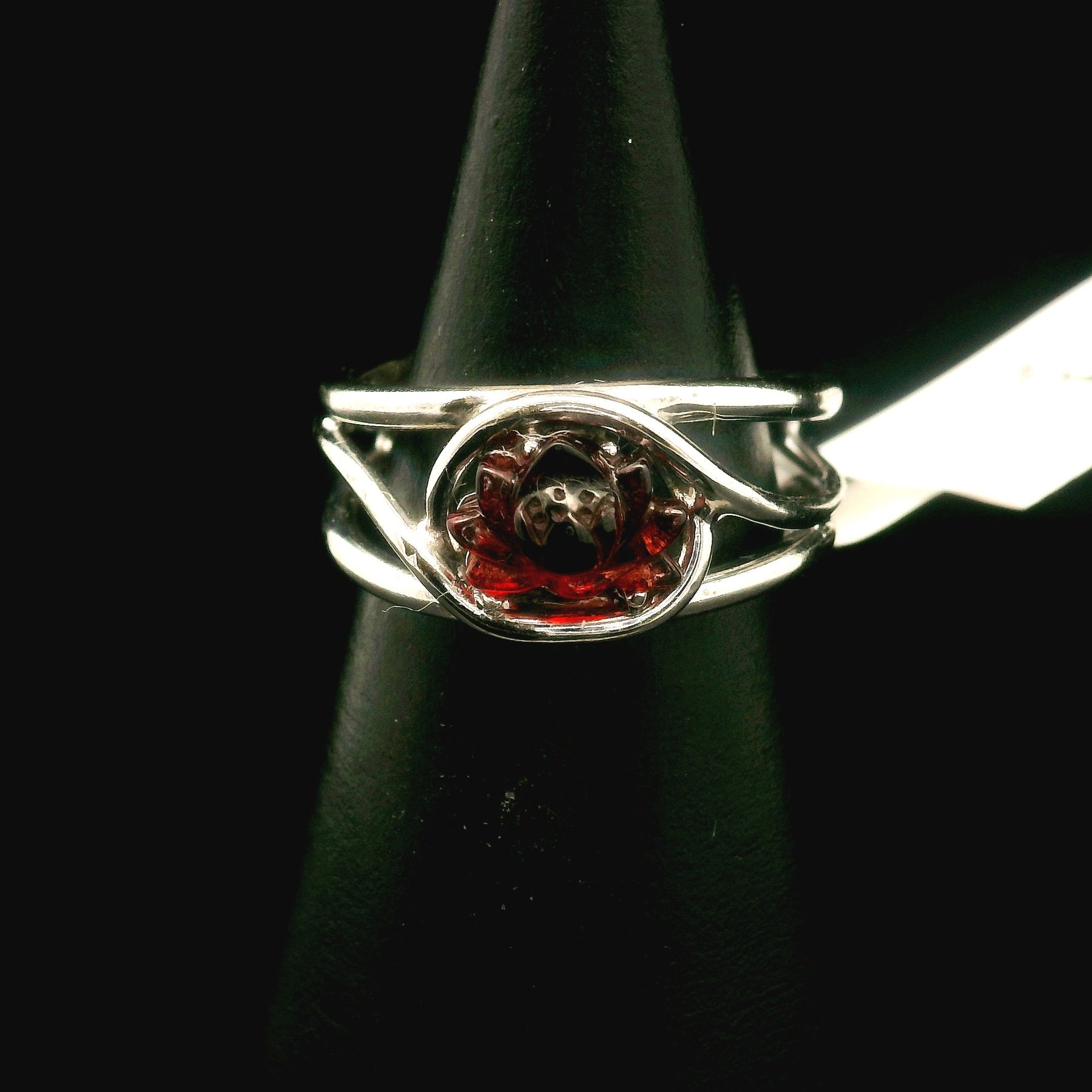 Absolutely gorgeous and high quality, Garnet Lotus Cuff Ring in Rhodium Plated, .925 Sterling Silver. Adjustable ring fits sizes 4-11.