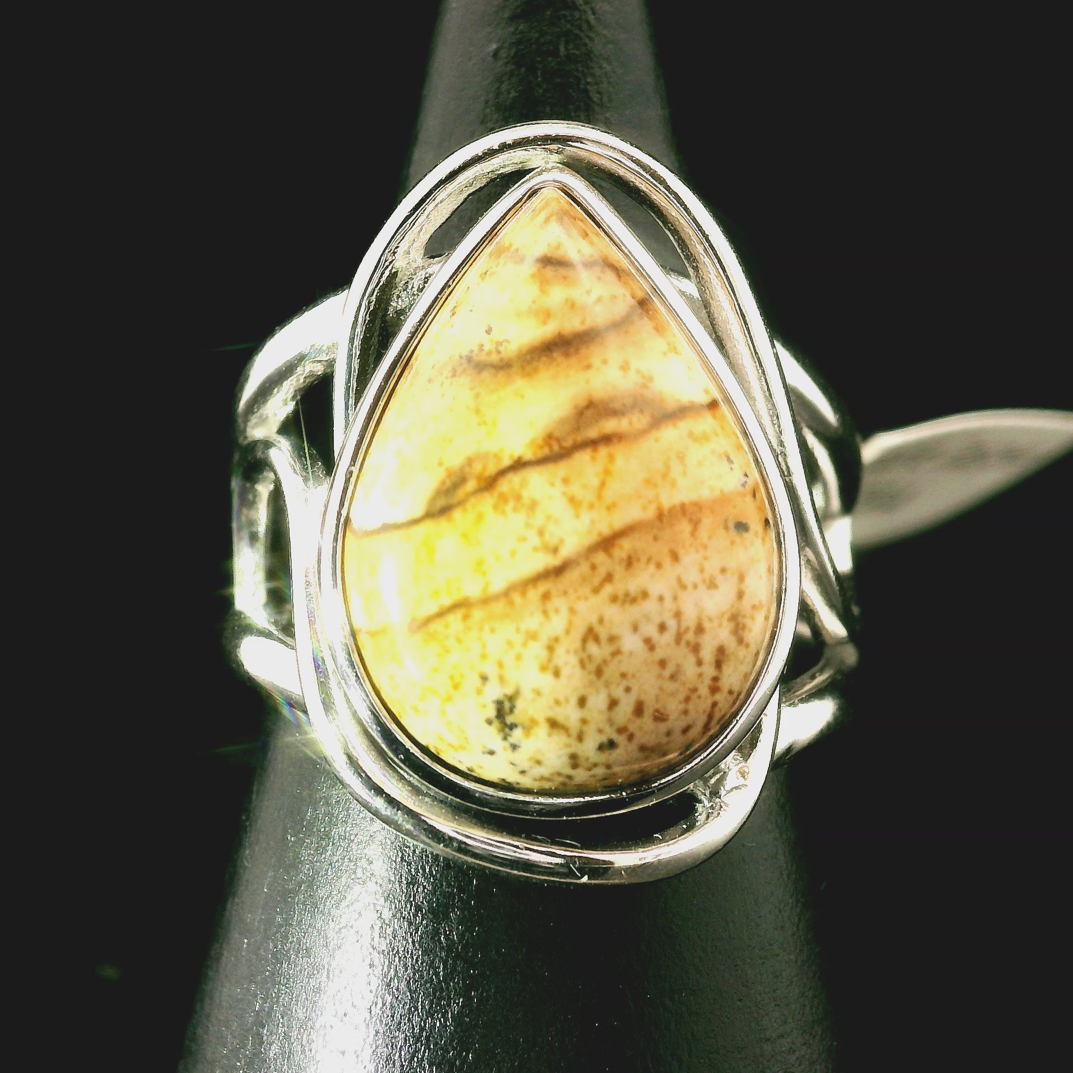 Picture Jasper Cuff Ring 925 Silver for Joy, Love and Empowerment