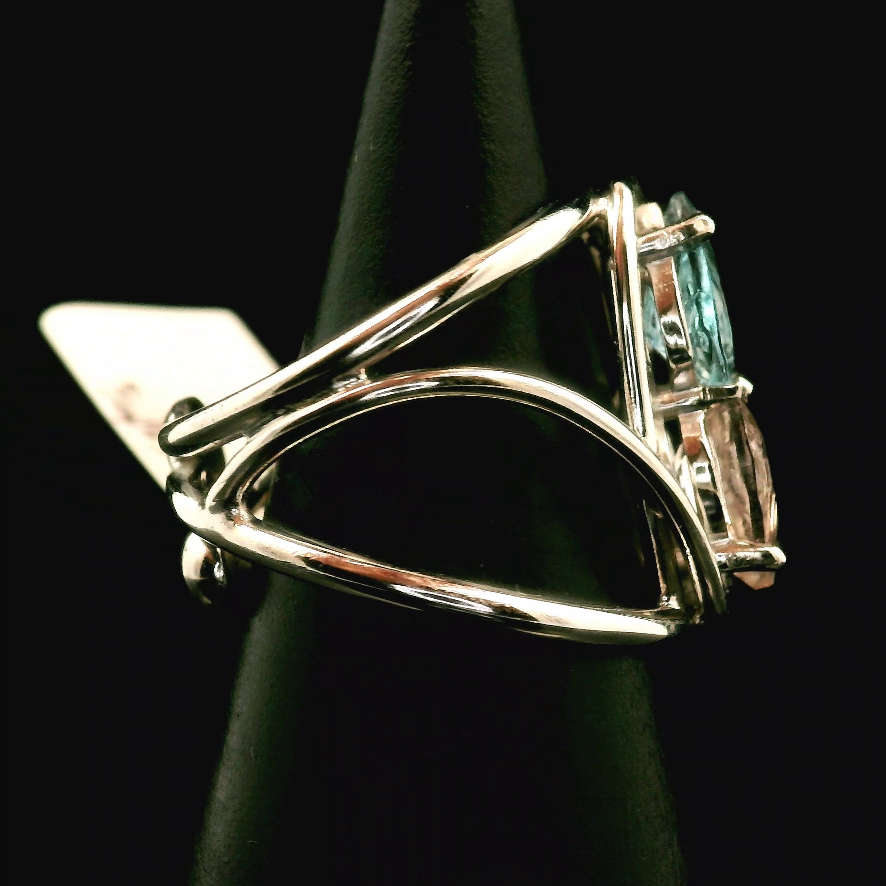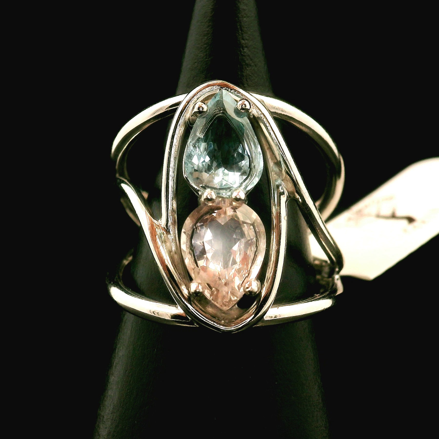 Morganite and Aquamarine Cuff Ring .925 Silver for Abundance of Joy and Love