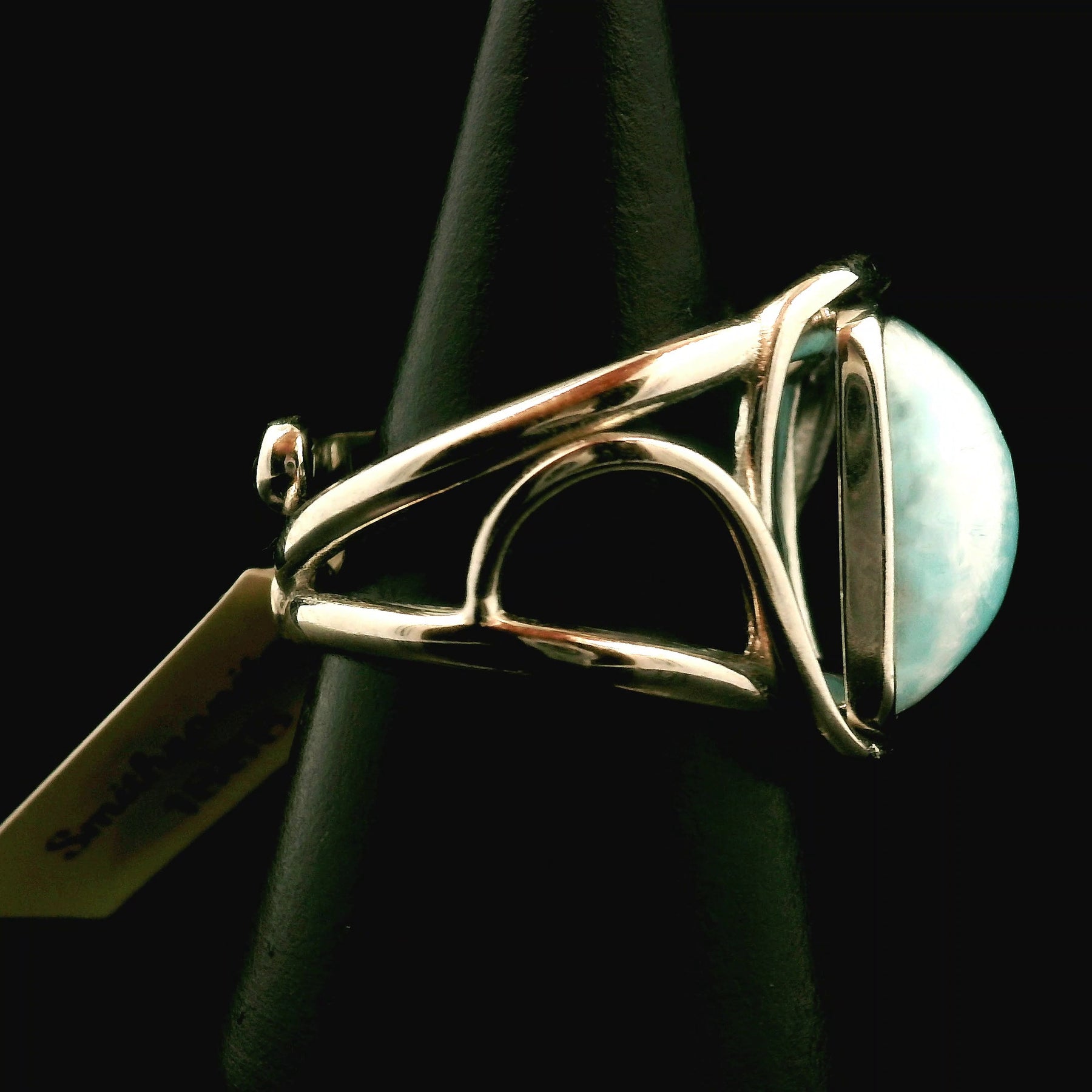 Absolutely incredible Smithsonite Cuff Ring in rhodium-plated .925 Sterling Silver. Adjustable from sizes 4–10.