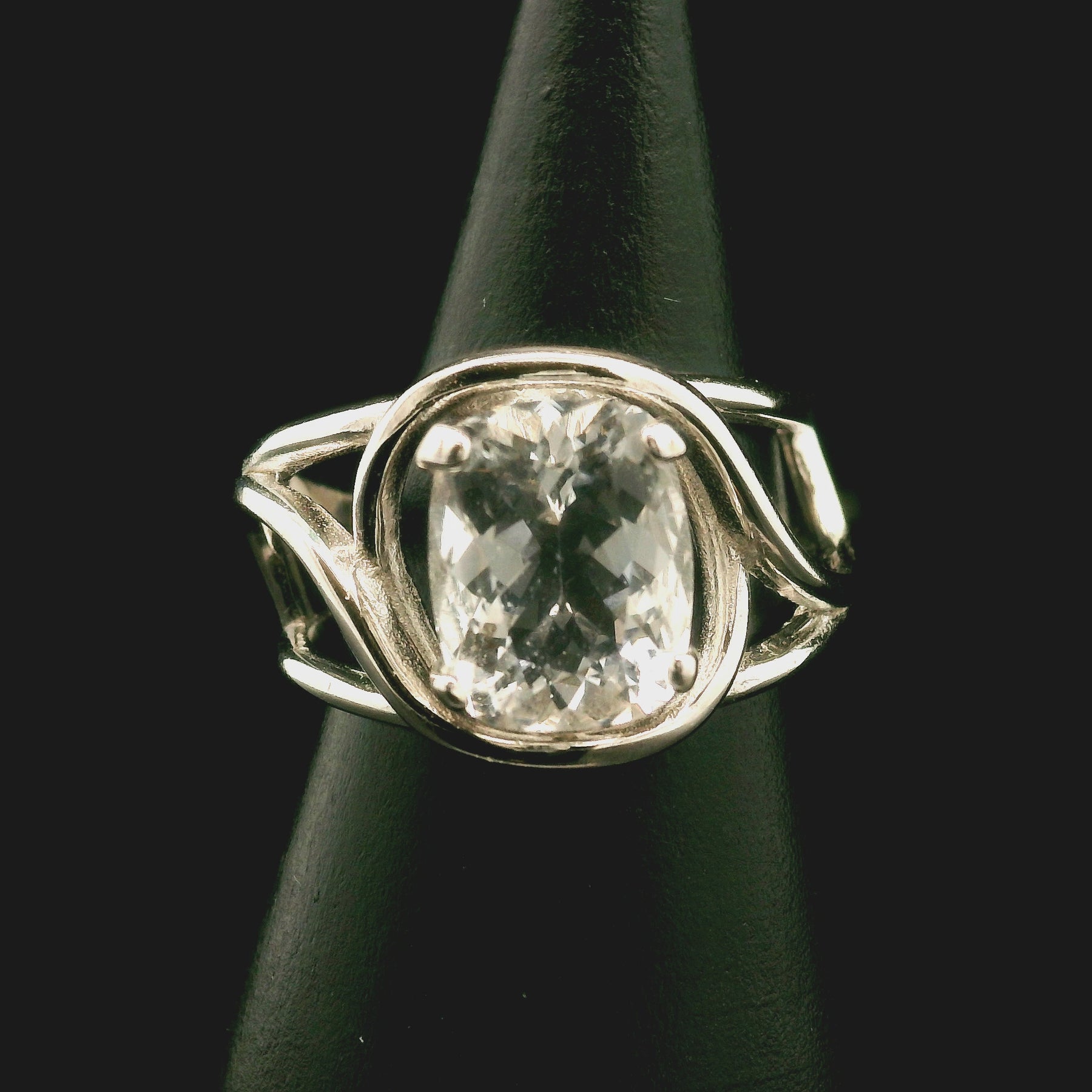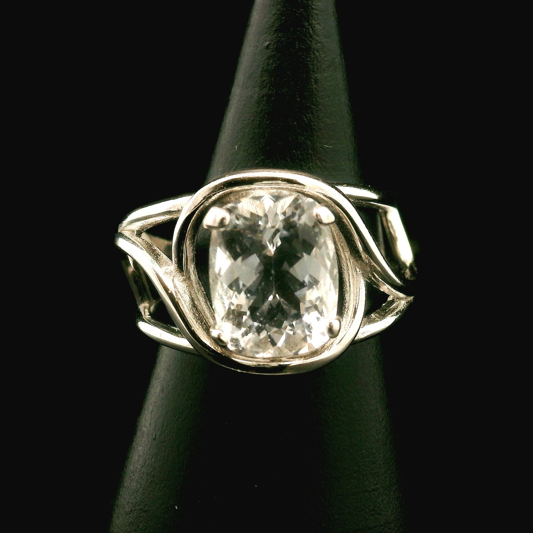 This beautiful, high quality, natural untreated Polucite was hand picked with intention just for you by Rick and Jamie and set in our best selling, rhodium plated, .925 Sterling Silver adjustable setting. This will be a beautiful heirloom in your collection to enjoy for generations!