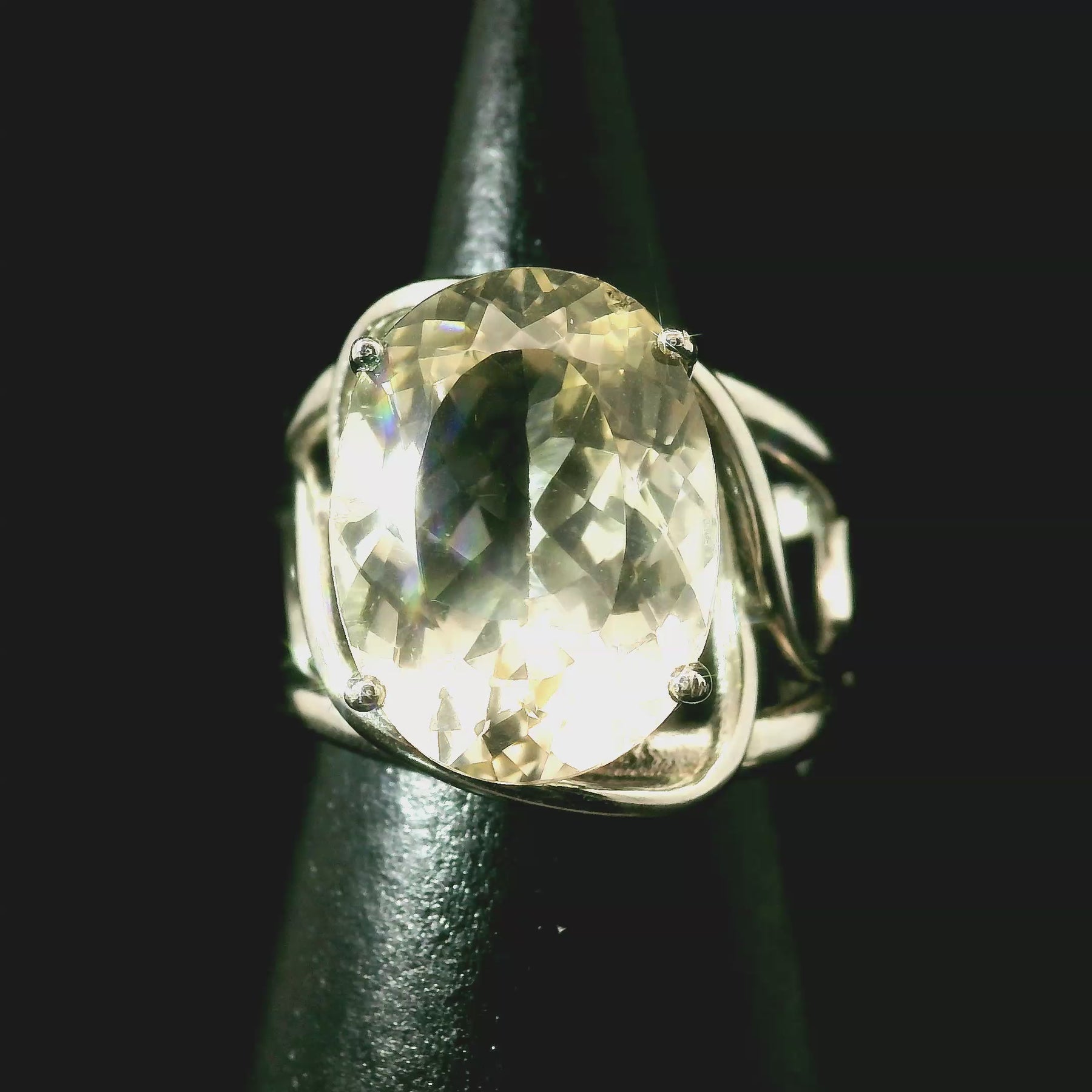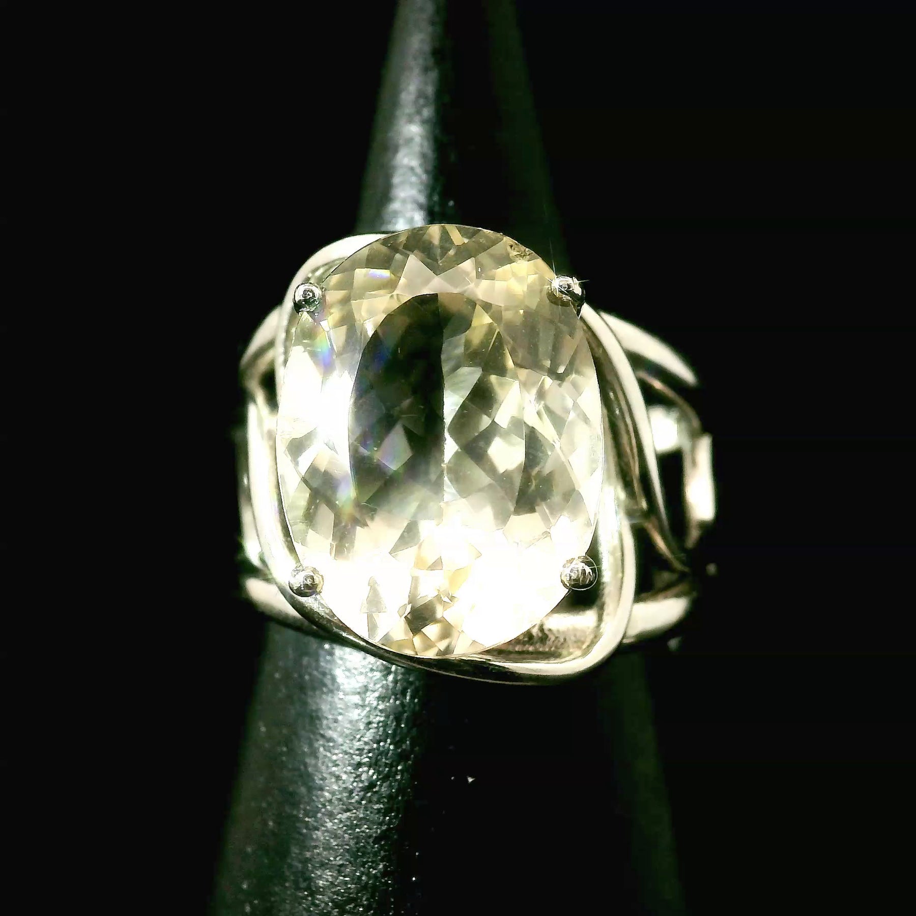 This beautiful, high quality, natural untreated Polucite was hand picked with intention just for you by Rick and Jamie and set in our best selling, rhodium plated, .925 Sterling Silver adjustable setting. This will be a beautiful heirloom in your collection to enjoy for generations!