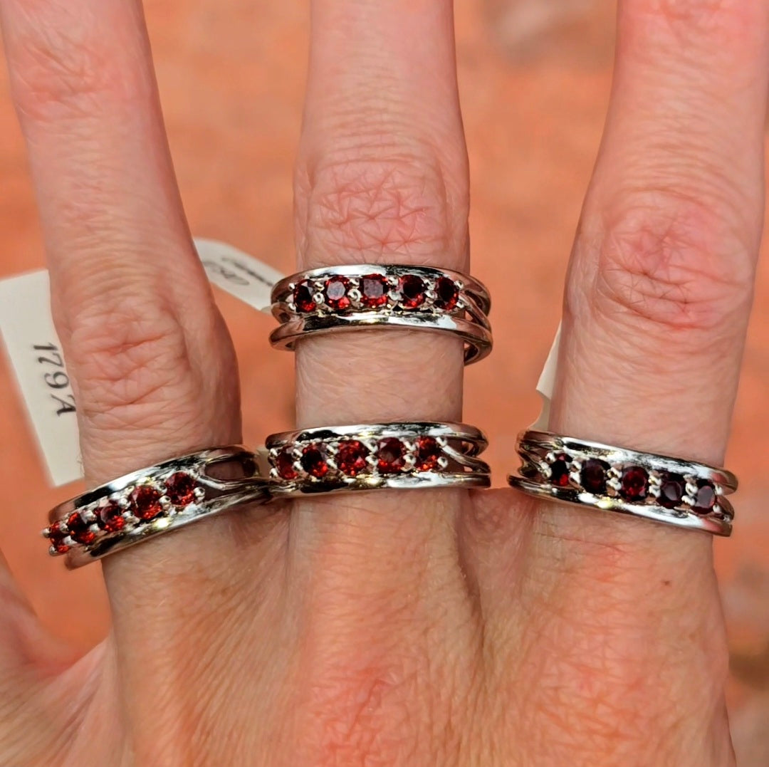 Garnet Stacker Cuff Ring .925 Silver for Health and Strength